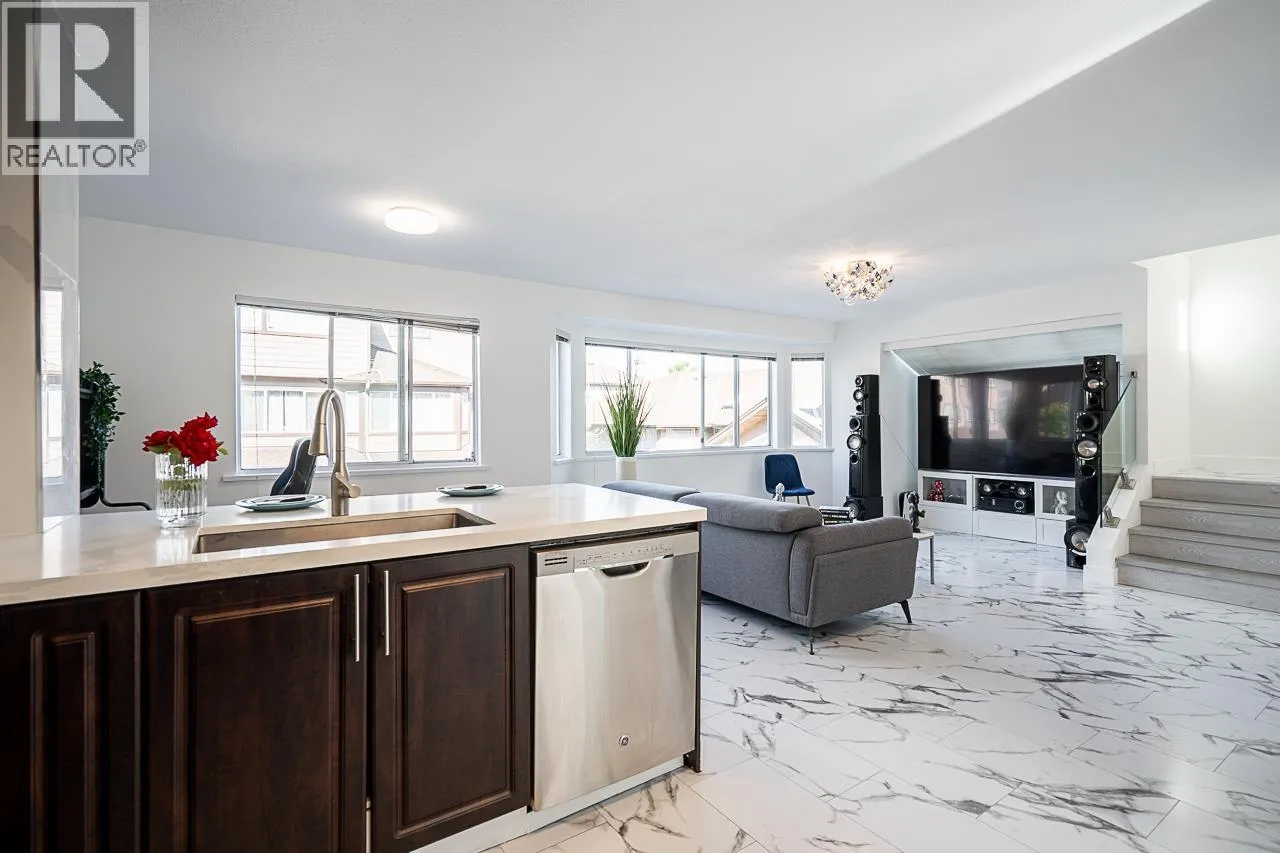 This rare, FULLY RENOVATED, CORNER townhome is move-in ready, offering over 2,000 SF of stylish, functional living. Overlooking peaceful greenspace, you´ll enjoy unmatched privacy and a serene backdrop from your BRAND NEW entertainer´s deck. Inside, the home features new flooring, tile, paint, lighting, sleek aluminum & glass railings, a chef´s kitchen with upgraded cabinetry and counters, plus three renovated bathrooms. The layout includes separate family and living rooms, formal dining, and three large bedrooms. A den off the garage adds flexibility as a home office or guest space, while abundant storage and crawlspace maximize functionality. Ideally located steps to Hamilton Elementary, the Community Centre, and McLean Park, and minutes to Walmart, Starlight Casino, Queensborough Landing, and major commuter routes. The new Costco Business Centre nearby adds even more convenience. A perfect blend of modern style, comfort, and accessibility. OH March 7th & 8th 2-4pm (id:27476)