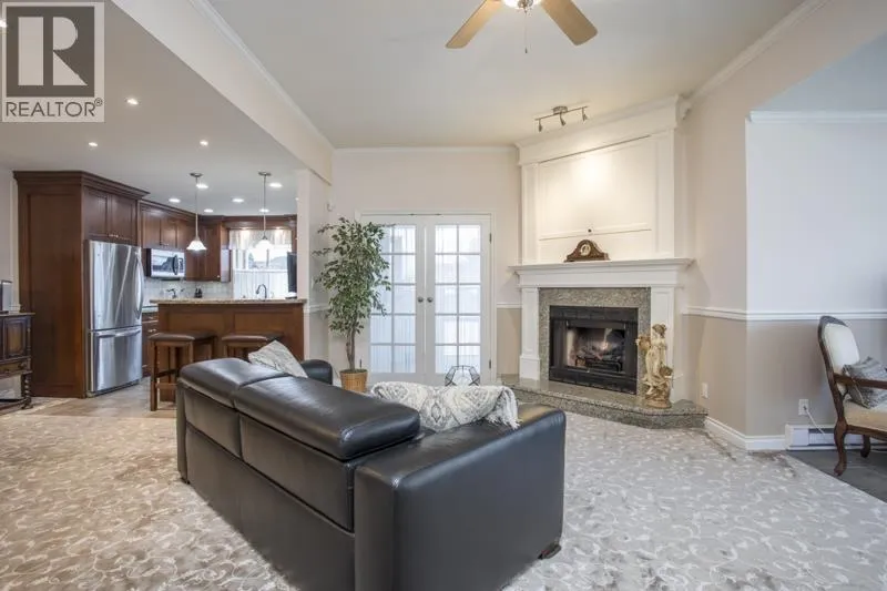NEWPORT TERRACE-unique and SPACIOUS, stacked townhome with stairs leading to ONE LEVEL living in a lovely and bright 2 bedroom plus SOLARIUM, 2 bathroom unit with amazing CENTRAL LOCATION. Great room concept with updated carpet in the living/dining/family room area, opening onto the kitchen with newer stainless appliances and stone counters. Laundry room with amazing built in storage plus drop down ladder to additional storage area. 2 underground side-by-side parking spots. Well maintained, pet-friendly complex with caretaker, updated asphalt roof (2020), paint (2022). Heatpump AC plus electric baseboard heat. Over 1400 sq ft, feels like a rancher! Close to Richmond Centre, Canada Line, Minoru Park and much more. A must see! (id:27476)