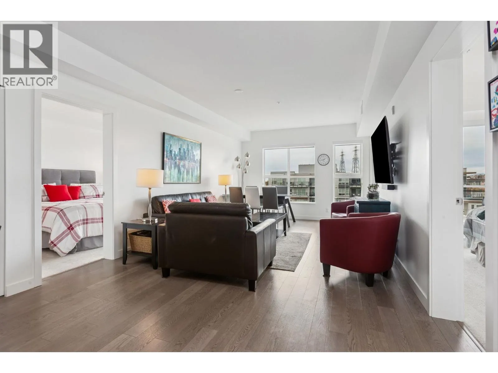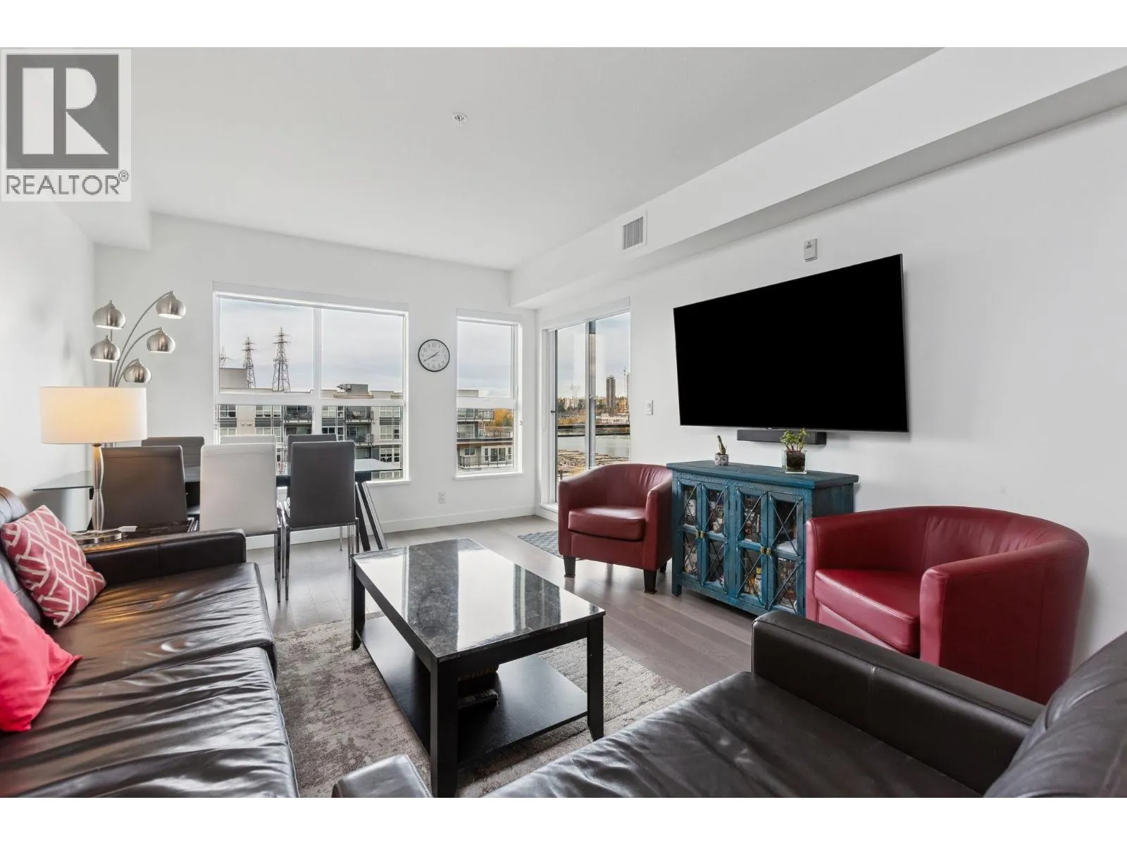 Penthouse living with incredible Fraser River, mountain & city skyline views! This bright west-facing 2 bed & den (or 3rd bed), 2 bath unit offers two private balconies perfect for enjoying incredible sunsets and river views. The open concept living & dining areas feature expansive windows and abundant natural light, while the versatile den with custom built-ins adds storage & flexibility. Modern kitchen with premium finishes, well-separated bedrooms and spacious primary suite with ensuite. Resort-style amenities include indoor pool, hot tub, fitness centre & party room. Located in a sought-after master-planned community with 5+ acres of parkland & dyke trails. Steps to Bridgeport SkyTrain, Costco, YVR & quick access to Vancouver. (id:27476)