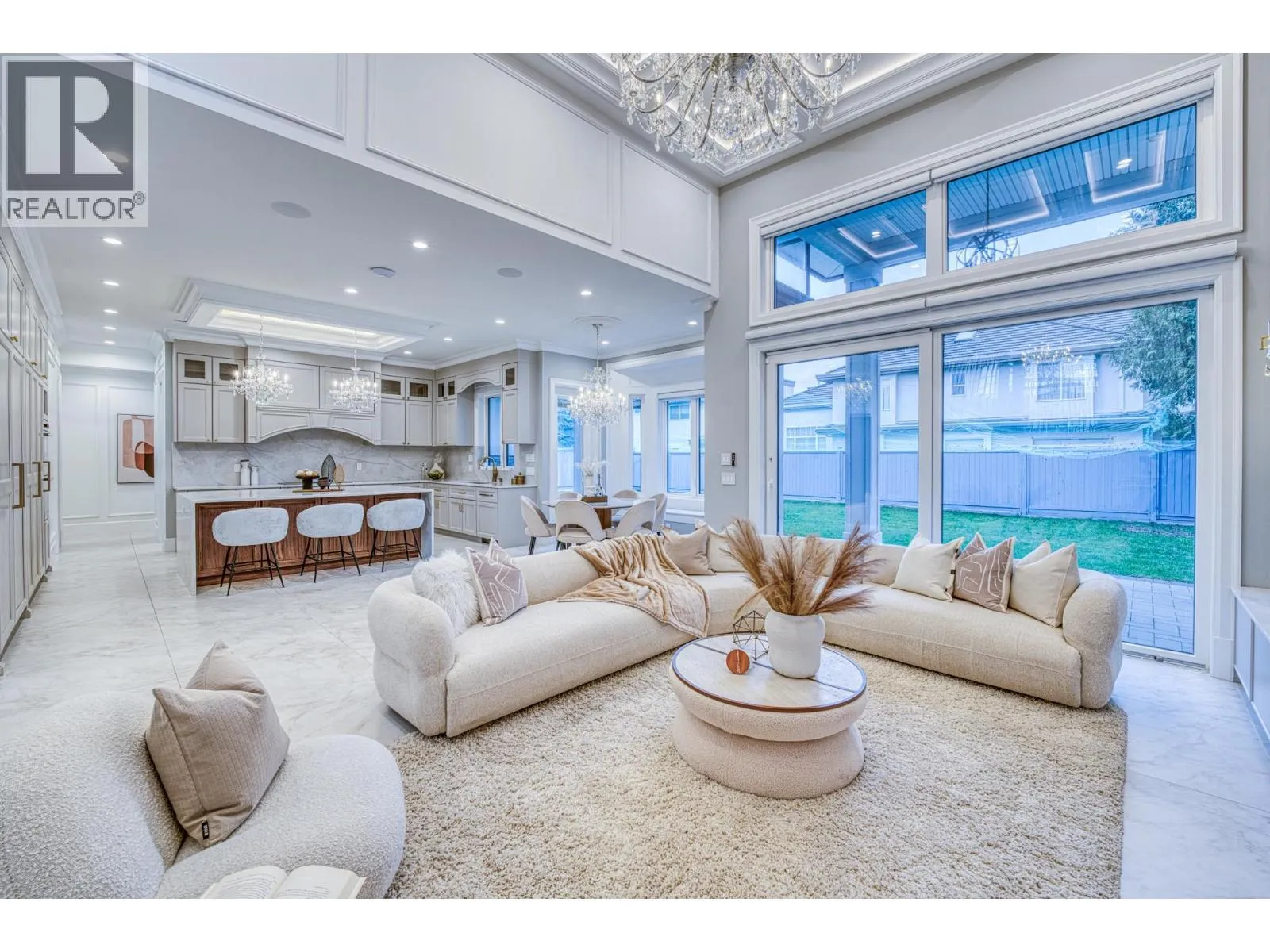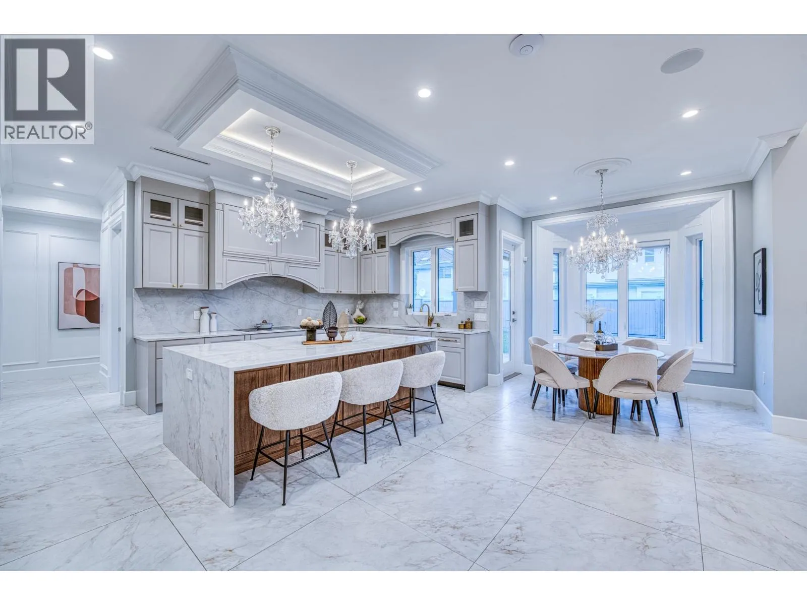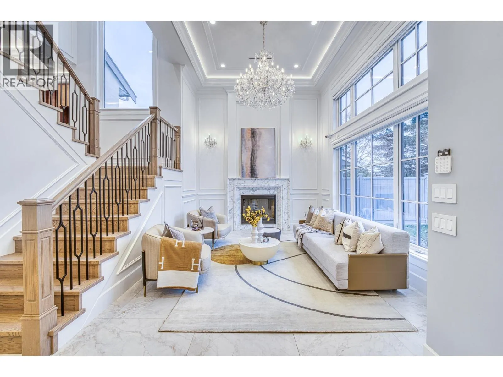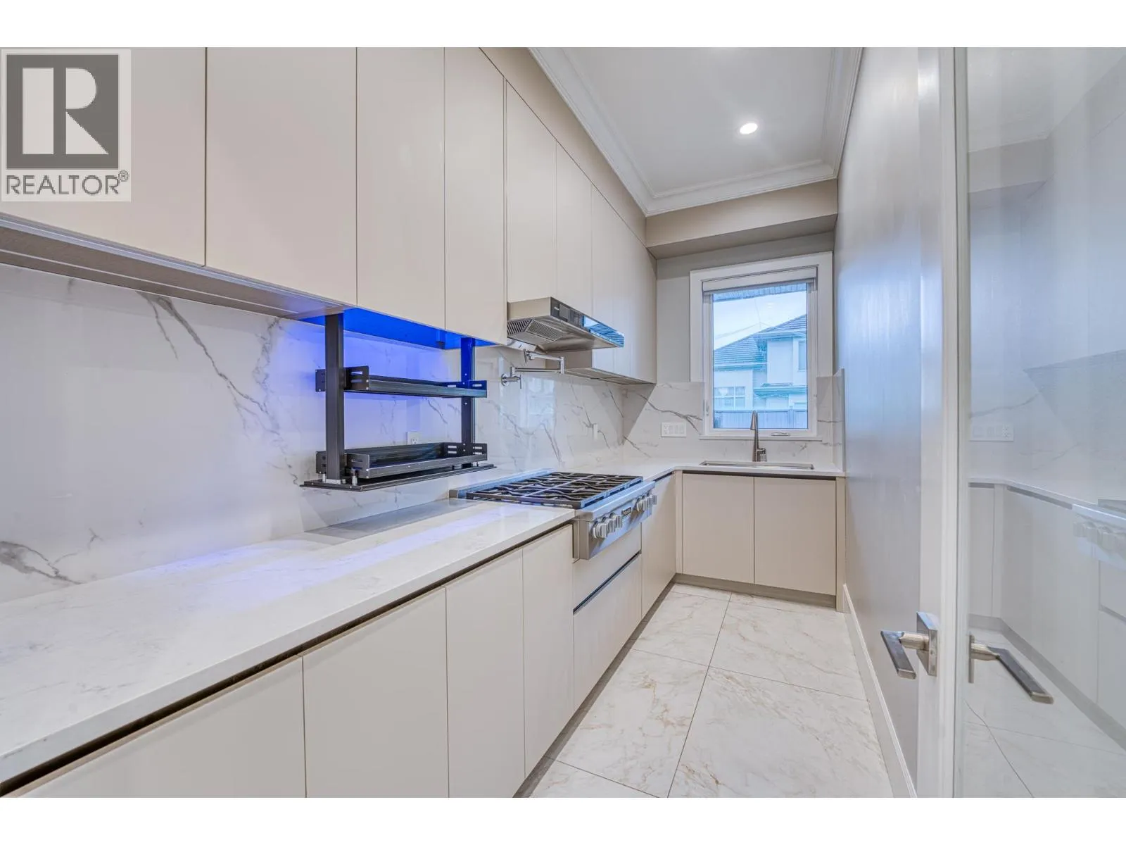 Stunning one-year-old custom luxury home with premium finishes throughout. Features 7 bathrooms, soaring ceilings, curved architectural details, and European tilt-and-turn windows with a dramatic 10-ft sliding door bringing abundant natural light. Gourmet kitchen with German-brand cabinetry, full Miele appliance package, quartz waterfall island, wine cooler, and spice kitchen. Kohler faucets and sinks throughout. Powder room and primary ensuite showcase Cosentino Italian marble vanities. Rare in Richmond, the main floor includes a large flex room with full bath, ideal for elderly living or a media room. Advanced smart home system controls lights, switches, motorized blinds, and ceiling speakers throughout the home. Radiant heating, HRV, and private balcony complete this exceptional home. Open Houses: Apr 5, 2-4pm. (id:27476)