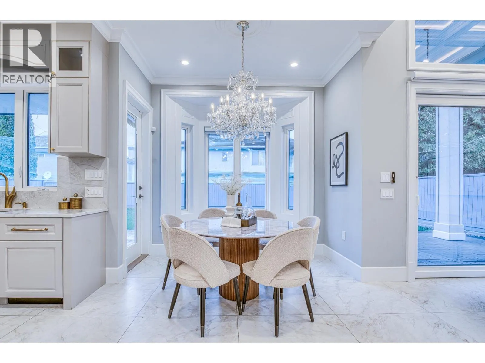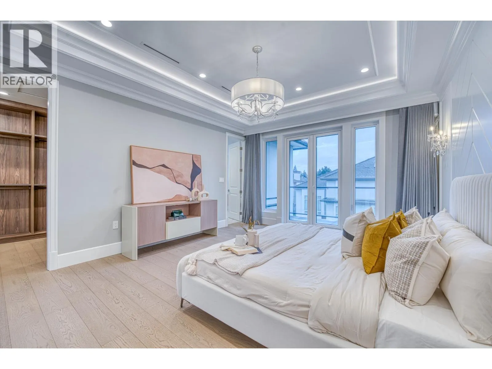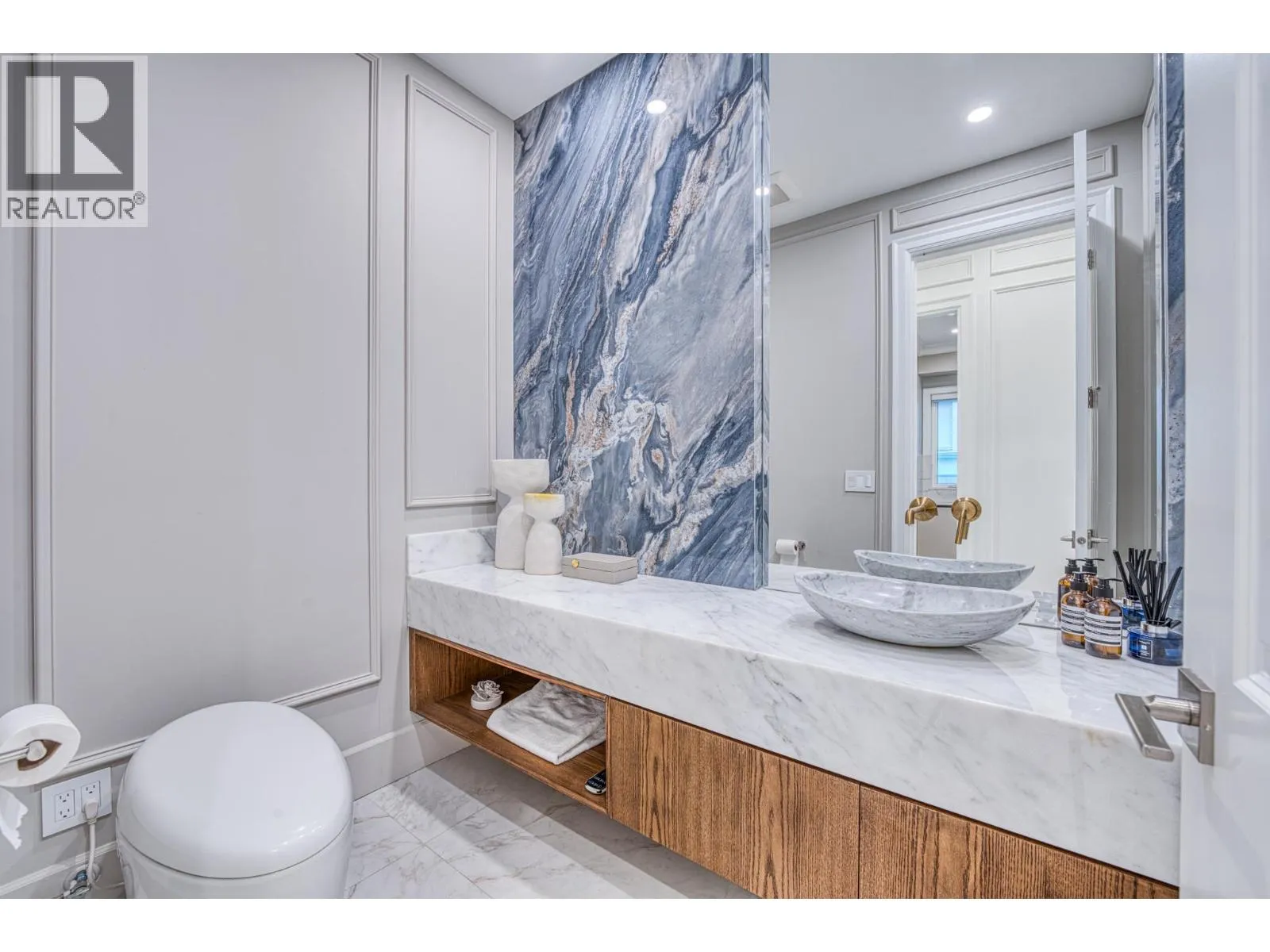 Stunning one-year-old custom luxury home with premium finishes throughout. Features 7 bathrooms, soaring ceilings, curved architectural details, and European tilt-and-turn windows with a dramatic 10-ft sliding door bringing abundant natural light. Gourmet kitchen with German-brand cabinetry, full Miele appliance package, quartz waterfall island, wine cooler, and spice kitchen. Kohler faucets and sinks throughout. Powder room and primary ensuite showcase Cosentino Italian marble vanities. Rare in Richmond, the main floor includes a large flex room with full bath, ideal for elderly living or a media room. Advanced smart home system controls lights, switches, motorized blinds, and ceiling speakers throughout the home. Radiant heating, HRV, and private balcony complete this exceptional home. Open Houses: Apr 5, 2-4pm. (id:27476)