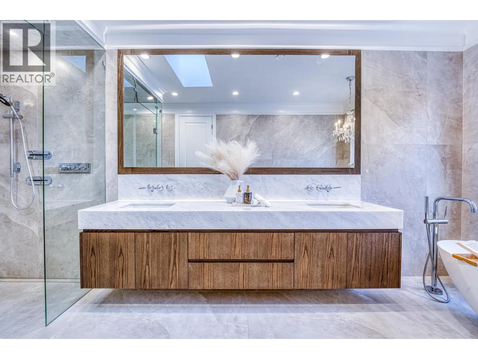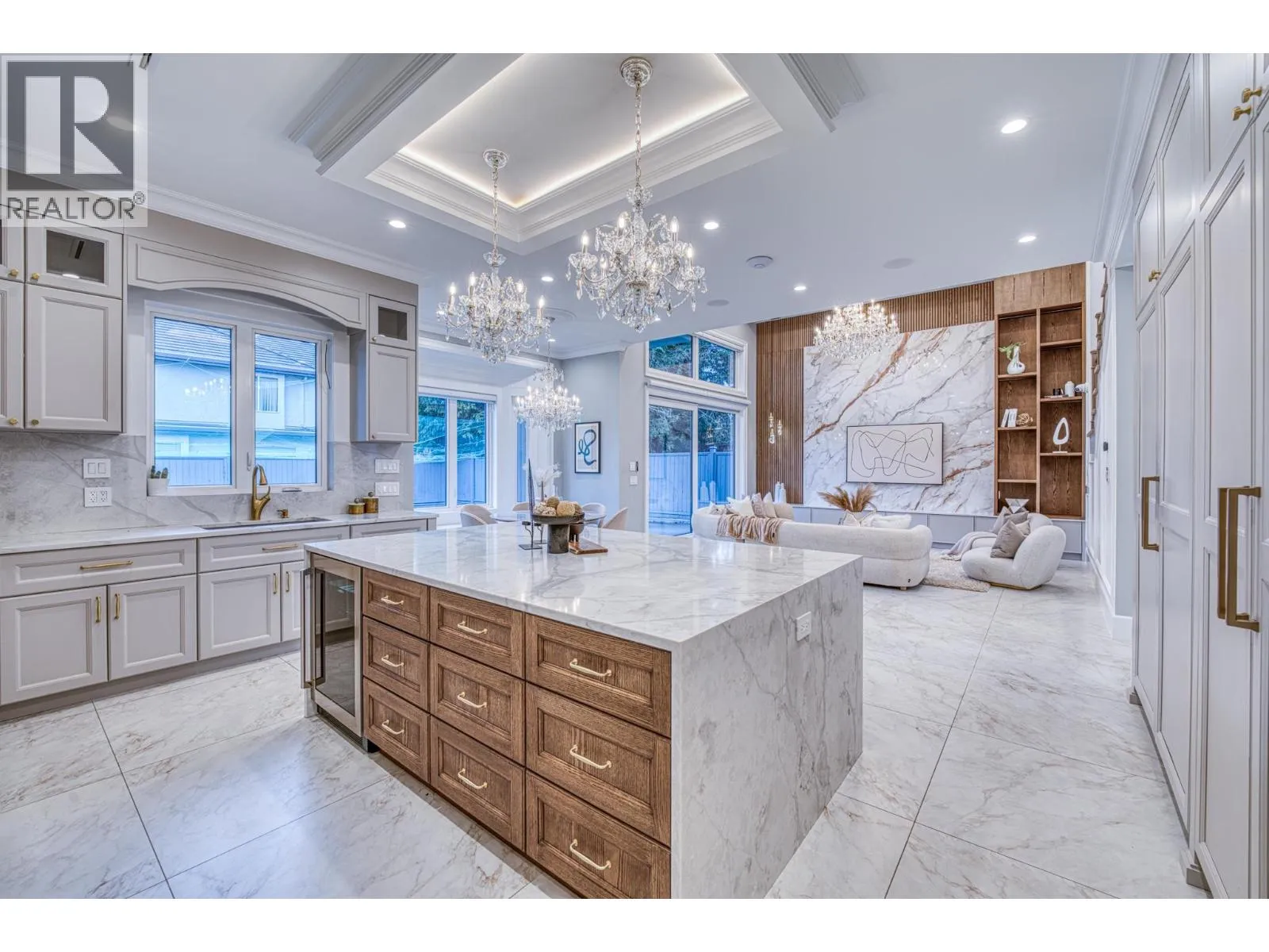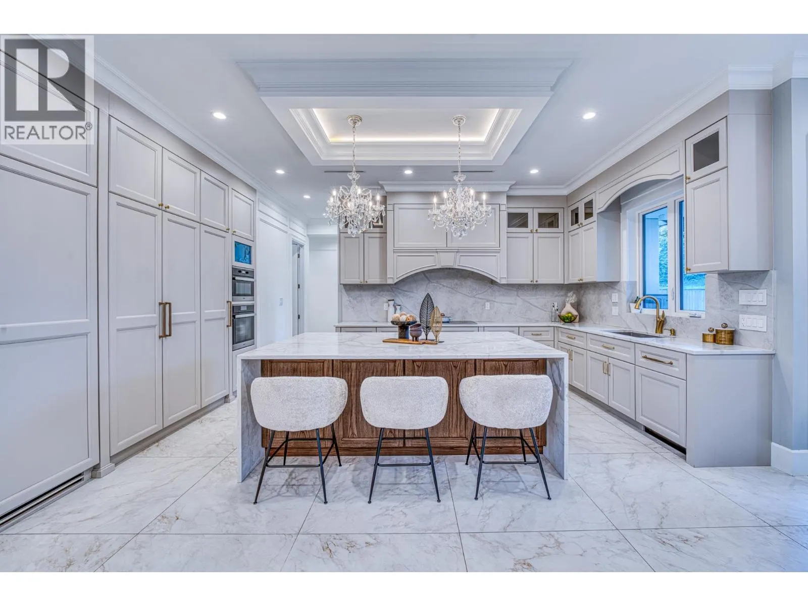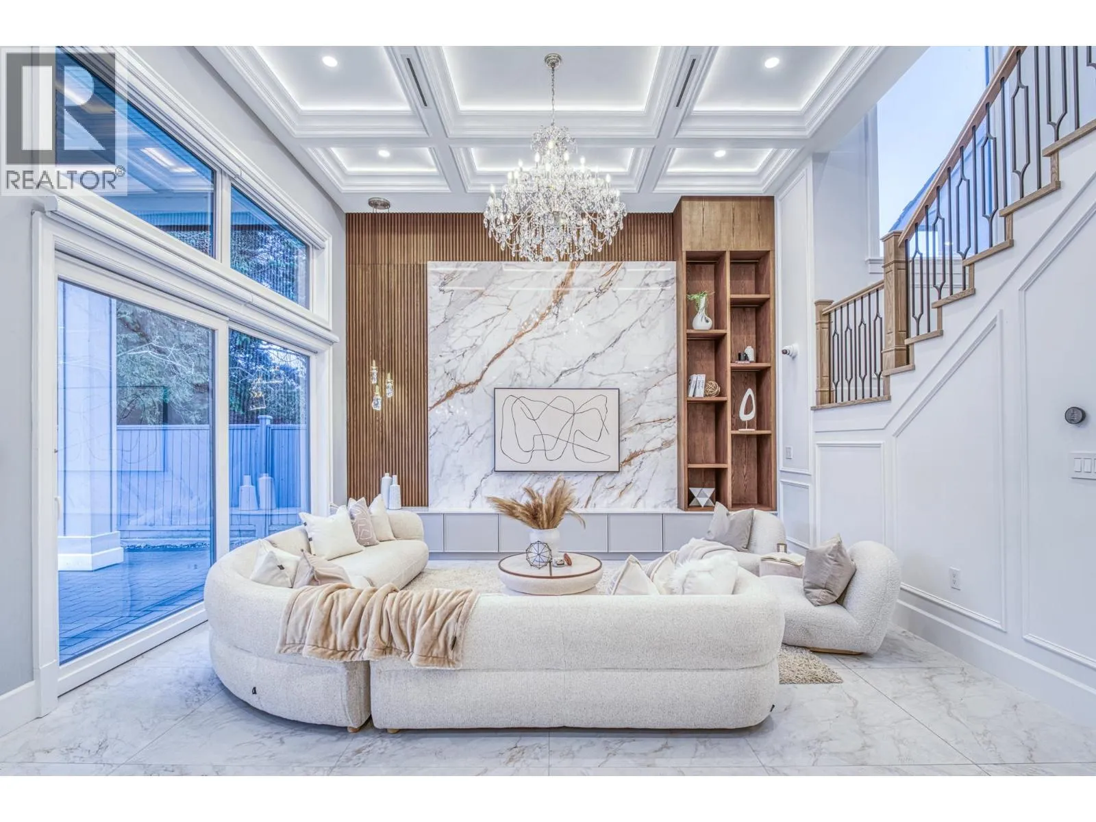 Stunning one-year-old custom luxury home with premium finishes throughout. Features 7 bathrooms, soaring ceilings, curved architectural details, and European tilt-and-turn windows with a dramatic 10-ft sliding door bringing abundant natural light. Gourmet kitchen with German-brand cabinetry, full Miele appliance package, quartz waterfall island, wine cooler, and spice kitchen. Kohler faucets and sinks throughout. Powder room and primary ensuite showcase Cosentino Italian marble vanities. Rare in Richmond, the main floor includes a large flex room with full bath, ideal for elderly living or a media room. Advanced smart home system controls lights, switches, motorized blinds, and ceiling speakers throughout the home. Radiant heating, HRV, and private balcony complete this exceptional home. Open Houses: Apr 5, 2-4pm. (id:27476)