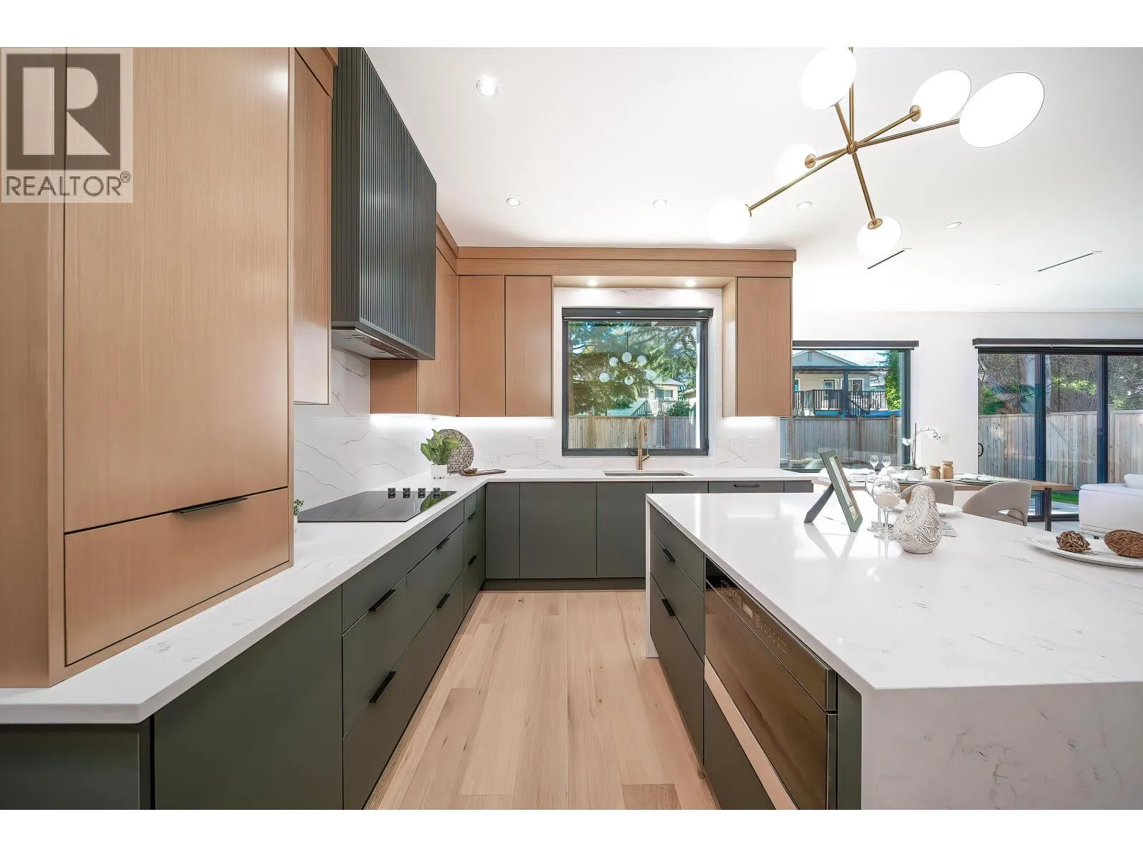 This brand-new 5-bedroom, 5-bathroom luxury home in Steveston features a bright open-concept layout with soaring high ceilings, a gourmet kitchen and a wok kitchen equipped with premium appliances, and spacious living and dining areas perfect for entertaining. Upstairs offers 4 generously sized bedrooms, including a stunning primary suite with a spa-inspired ensuite and ample closet space. Downstairs come with a private in-law suite with a separate entrance, ideal for extended family or guests or even a home office. Quality craftsmanship is showcased throughout with custom millwork, designer finishes, and a double garage with epoxy floor. Walking distance to highly ranked McMath Secondary and Westwind Elementary, as well as parks, shops, and Steveston Village. (id:27476)