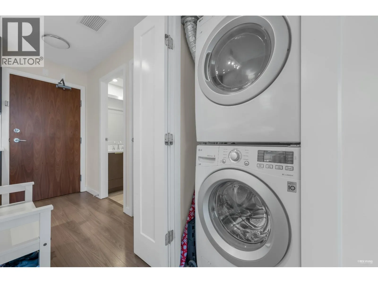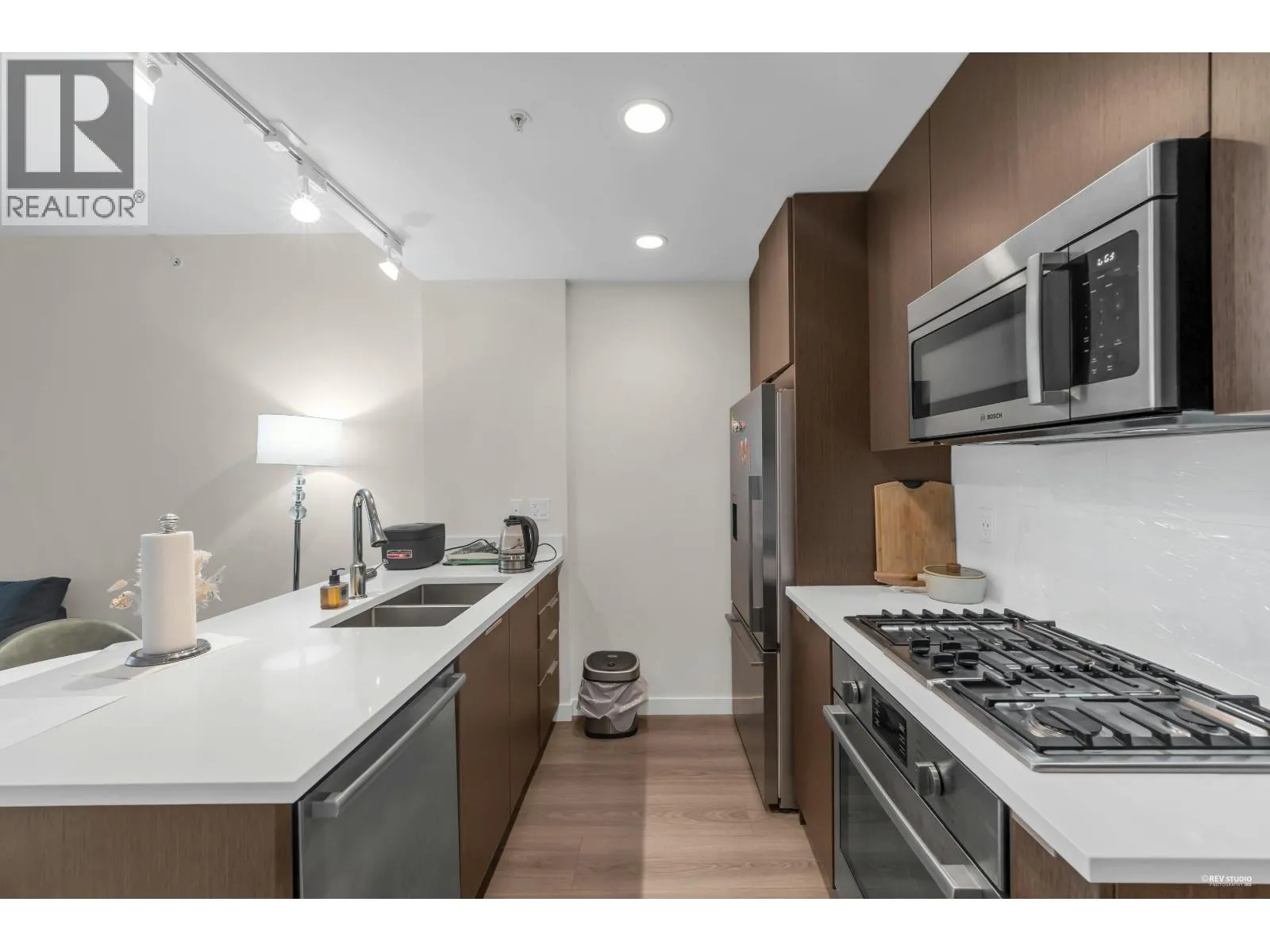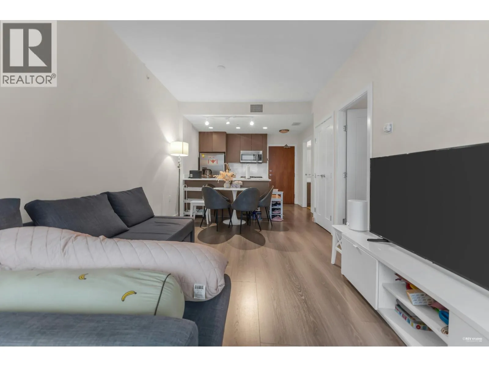 This well-designed 1 bedroom home offers an open-concept layout with 9 ft ceilings, laminate flooring, and full air conditioning. The modern kitchen features quality stainless steel appliances and sleek finishes, flowing seamlessly into the living area. Enjoy a bright east-facing balcony with open views, plus a walk-through closet to a semi-ensuite bathroom. One parking stall included. Residents enjoy resort-style amenities including an indoor pool, hot tub, gym, sports courts, sauna, lounge, and outdoor spaces. Unbeatable central location steps to shopping, dining, buses, and Capstan Way SkyTrain, with easy access to Vancouver and Hwy 99. (id:27476)