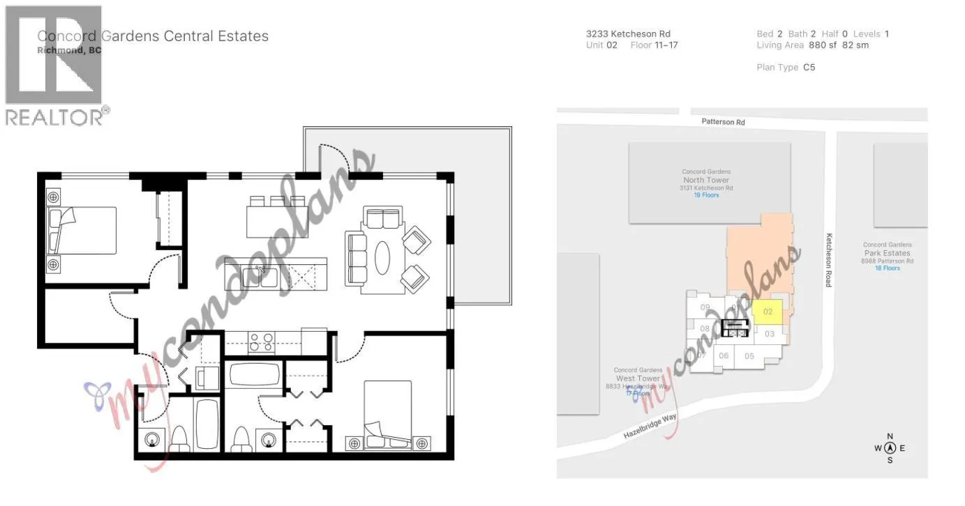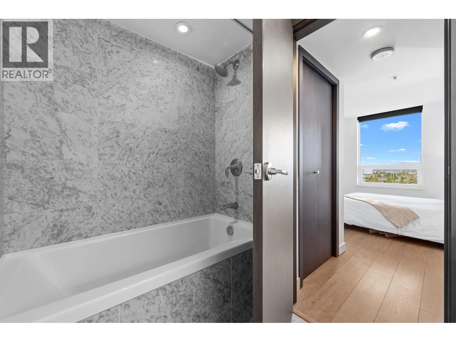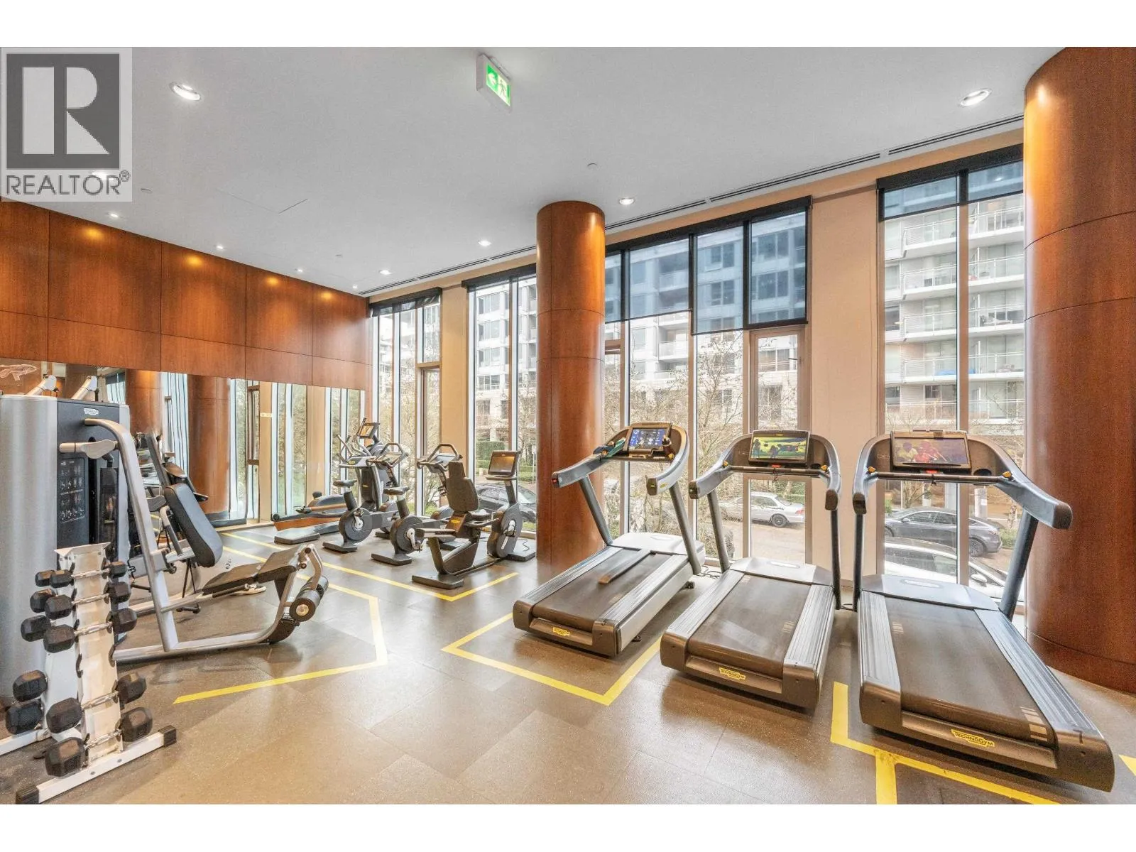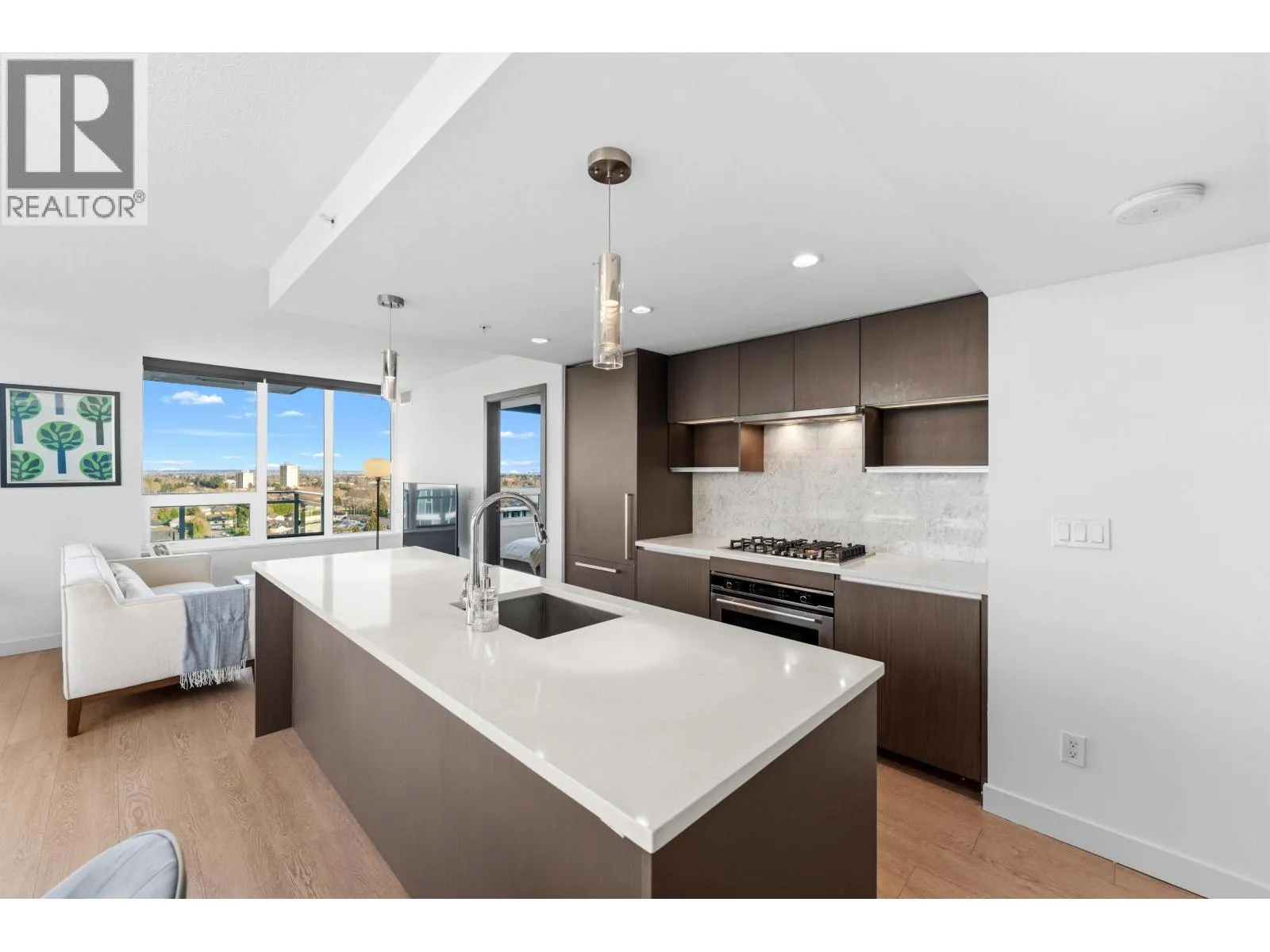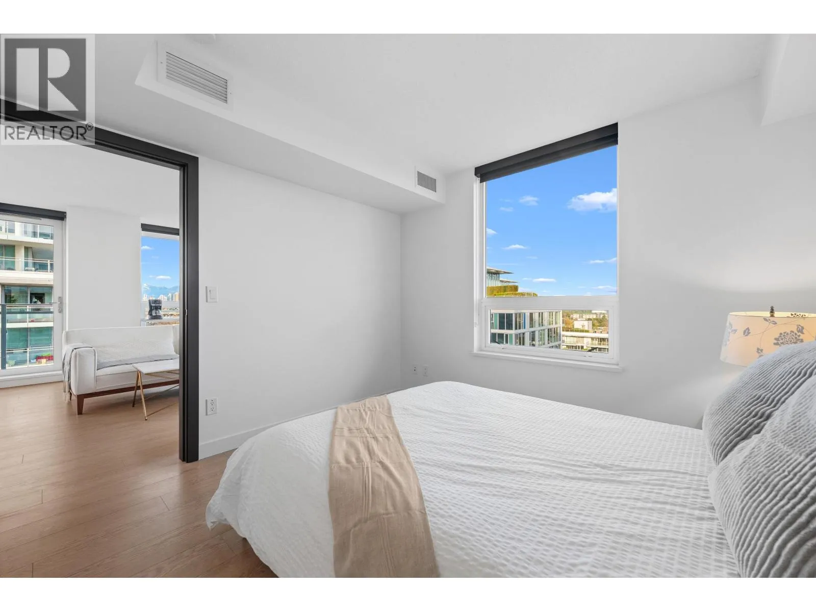 This air-conditioned 17th-floor corner residence at Concord Gardens features a bright 2-bedroom + den, 2-bathroom layout with fresh 2026 paint. Large floor-to-ceiling windows flood the home with natural light and showcase wide city views. The open living area features modern wide-plank flooring and leads to a private balcony. The gourmet kitchen includes a large island with stone countertops and premium integrated appliances. The versatile den provides a dedicated space for a home office or extra storage. Residents have access to the Diamond Club, which offers an indoor pool and fitness center. Located in Capstan Village, you are steps away from the SkyTrain, shopping, and dining. Open House: Apr5(Sun) 2-4PM. (id:27476)