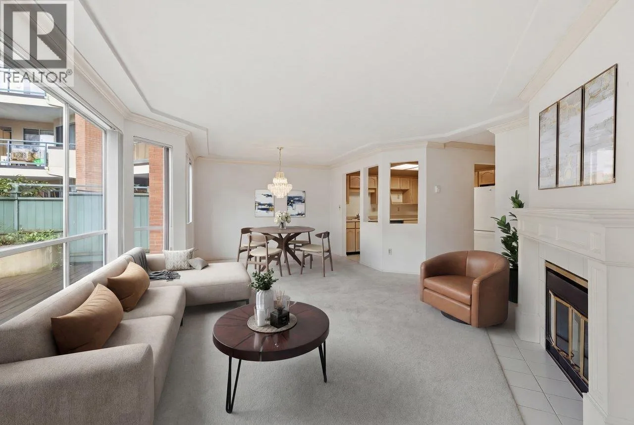 Spacious & full of potential, this large 2 bdrm, 2 bath home offers an exceptional opportunity to create the space of your dreams. The generous floorplan feats. expansive living & dining areas, cozy gas fireplace, & large windows that fill the home w/natural light. The kitchen includes a convenient eat-in area, ideal for casual meals or future redesign possibilities. Enjoy the outdoors from the massive West facing 500sqft deck, on the quiet side of the building facing the courtyard, perfect for relaxing in the afternoon sun. Thoughtfully designed w/abundant in-suite storage, separate storage locker, & rare bonus of 2 side-by-side parking. Quiet, private, & ideally located with fantastic walkability to Lansdowne Mall, T&T, KPU, & transit. A chance to make this home truly yours. Pets welcome! (id:27476)