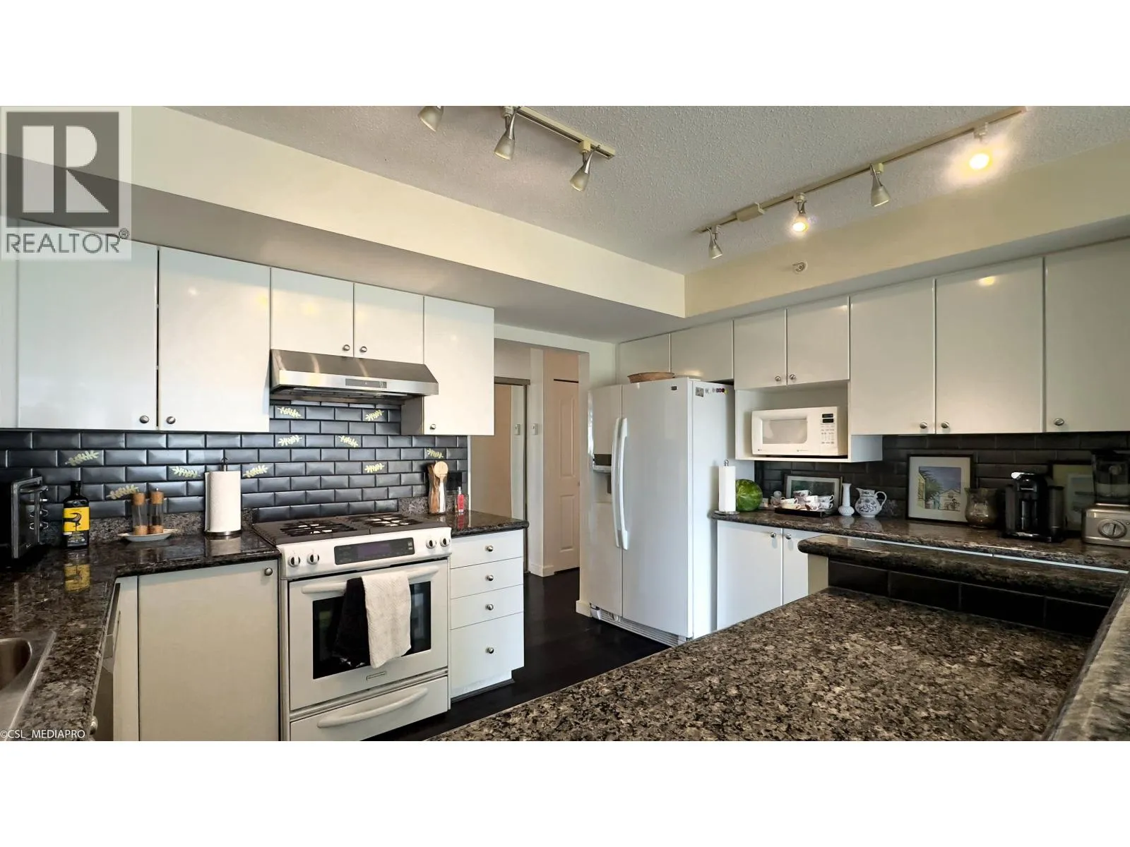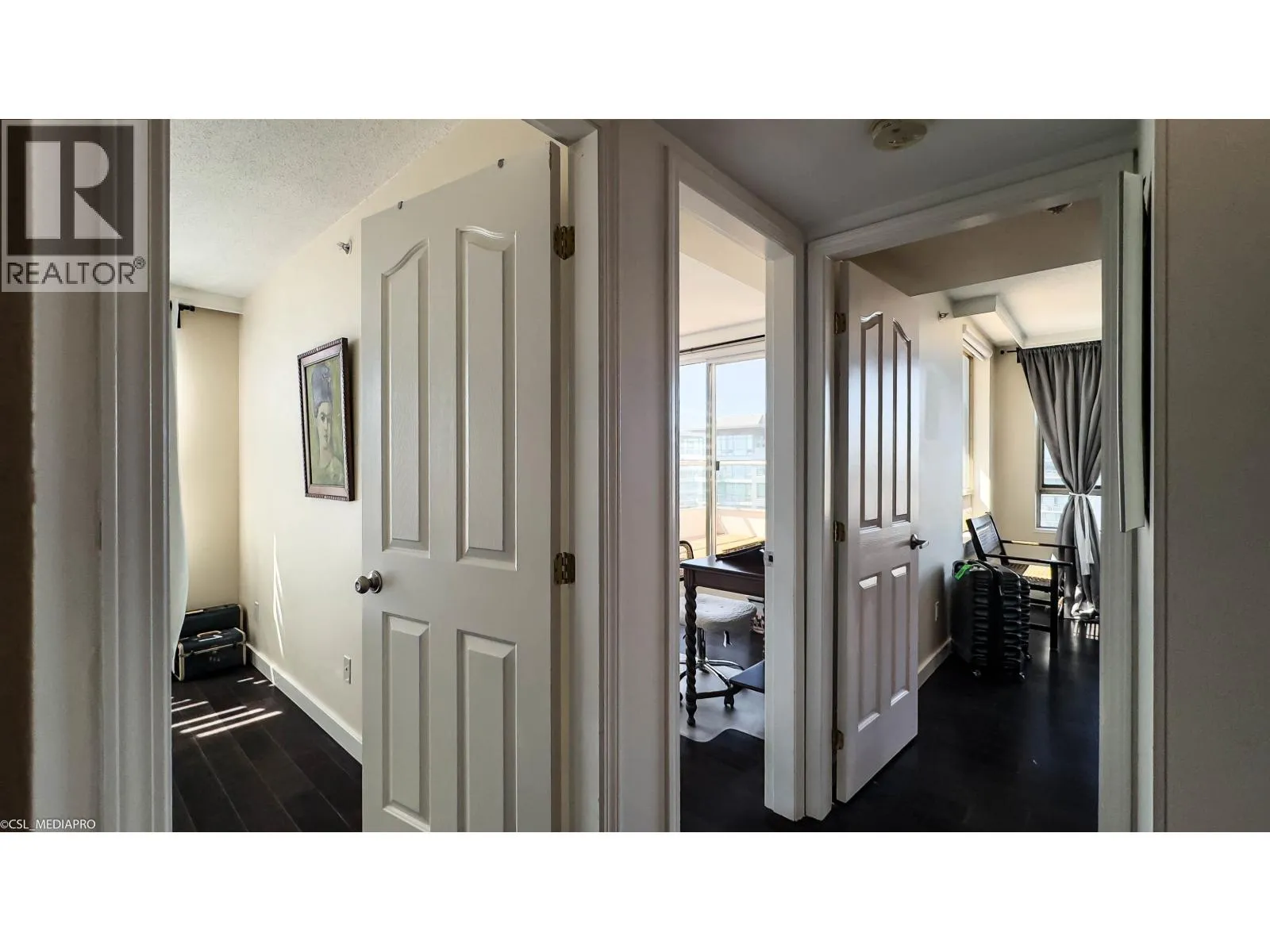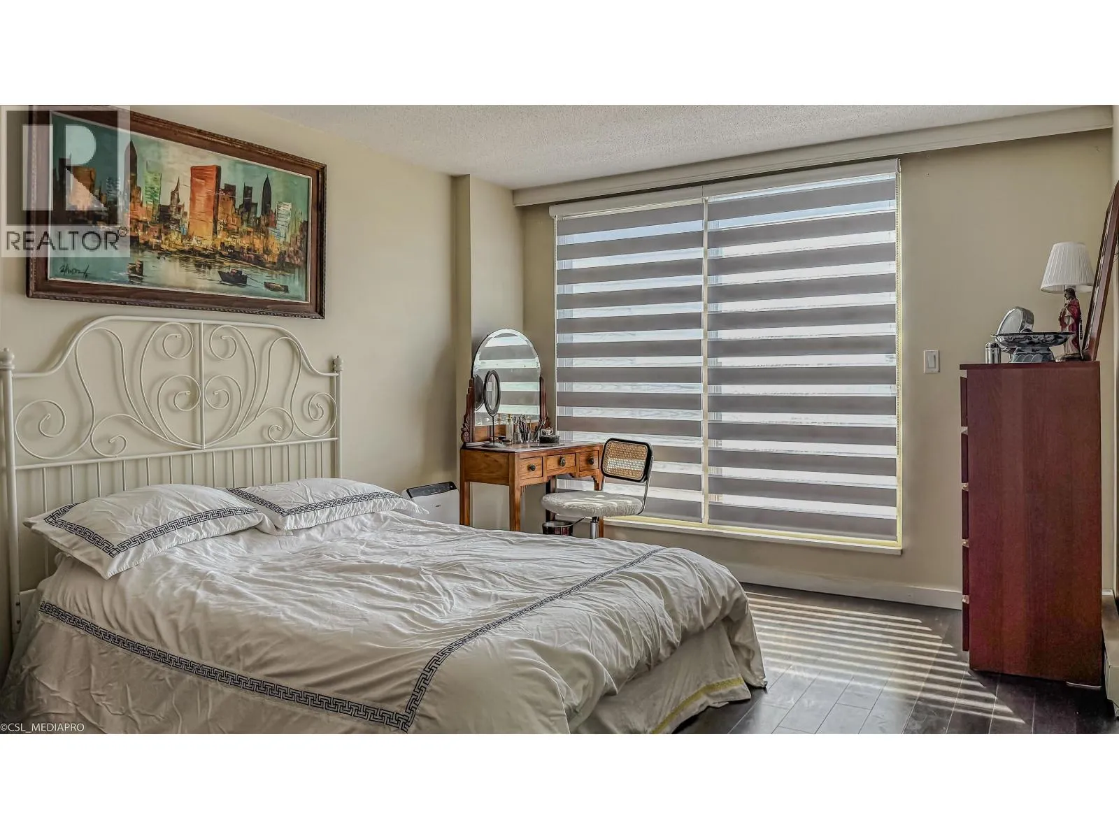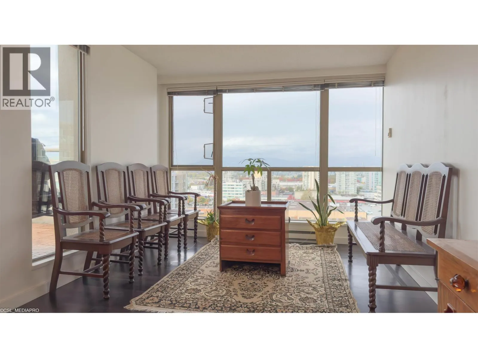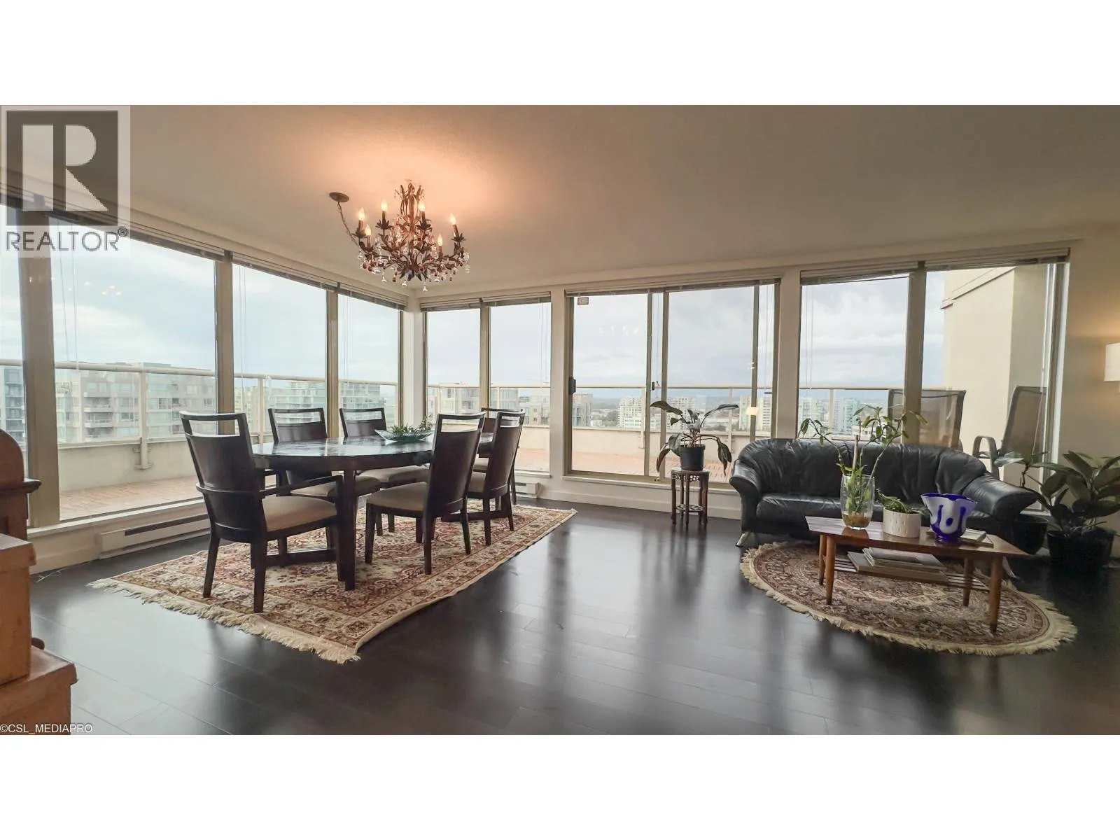 Penthouse at The Chancellor I by Amacon offers 2,200 sq.ft. of single-level luxury in downtown Richmond. This rare 4 bed, 3 bath half-floor home boasts 270° city, garden & mountain views with no stairs or carpet. Floor-to-ceiling windows flood the space with light, showcasing hardwood/marble floors, granite counters, Zebra blinds & A/C. Chef´s kitchen with gas stove & newer appliances connects to spacious living/dining. Primary suite has balcony & ensuite; a 2nd ensuite plus 2 bedrooms add flexibility. Includes in-suite laundry, 2 side-by-side parking & locker. Steps to Richmond Centre, SkyTrain, parks & dining. A unique blend of scale, comfort & location-book your showing today. Video: https://youtu.be/VhctFs14VME (id:27476)