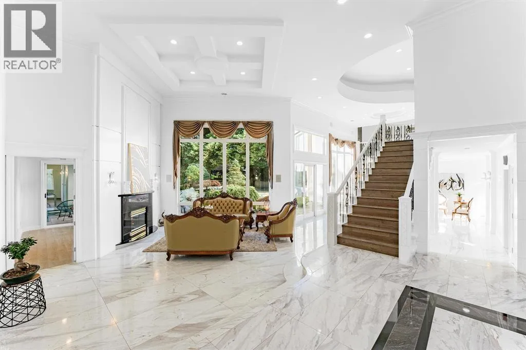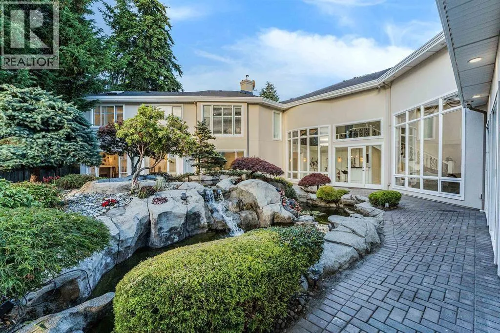 Luxury, scale, and timeless design define this rare architectural masterpiece in Central Richmond. Set on a sprawling 19,875 square ft lot with over 7,100 square ft of meticulously maintained living space, this custom home showcases exceptional craftsmanship throughout. A grand foyer opens to a soaring 16´ ceiling living room with elegant drop ceilings and extensive crown mouldings. Featuring 6 spacious ensuite bedrooms, 8.5 bathrooms, a main den plus 2 flex spaces, and potential for a 7th ensuite, the layout is ideal for multi-generational living with two full kitchens. Enjoy radiant in-floor heating, a 3-car garage, and resort-style amenities including an indoor pool, swirl pool, sauna, steam room, wet bar, exercise room, and double-insulated home theatre. The professionally landscaped grounds offer a stunning waterscape with rock gardens, waterfalls, koi ponds, and a private sports court. Walking distance to schools, shopping, and transit. (id:27476)