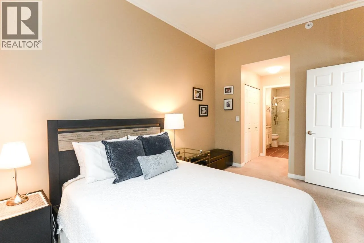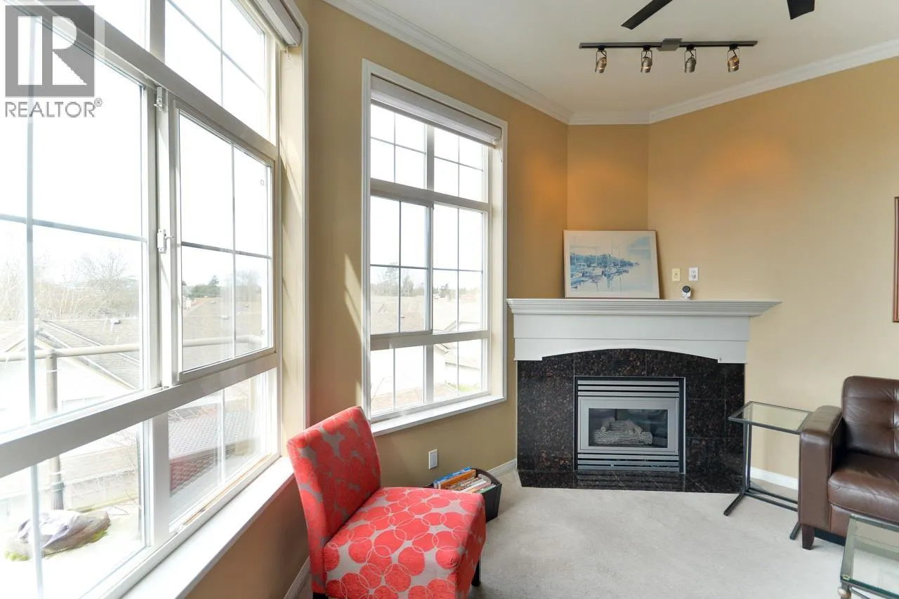 Terrific top floor suite in Steveston's 'SOUTHWATER'. This great 2 bed/2 bath plan has bedrooms separated by living area for privacy & livability . Boasts dramatic vaulted ceiling in living room with cozy gas fireplace, crisp white shaker cabinets in the kitchen, smart showers in the baths with heated floors, remote controlled blinds & crown mouldings throughout. Comes with 2 parking & one has an EV charger. West facing deck to enjoy the Gulf Islands & river views. Just a short stroll along the river to Steveston Village with its great shops & fine restaurants. Open Sun Mar 29th 2-4pm (id:27476)