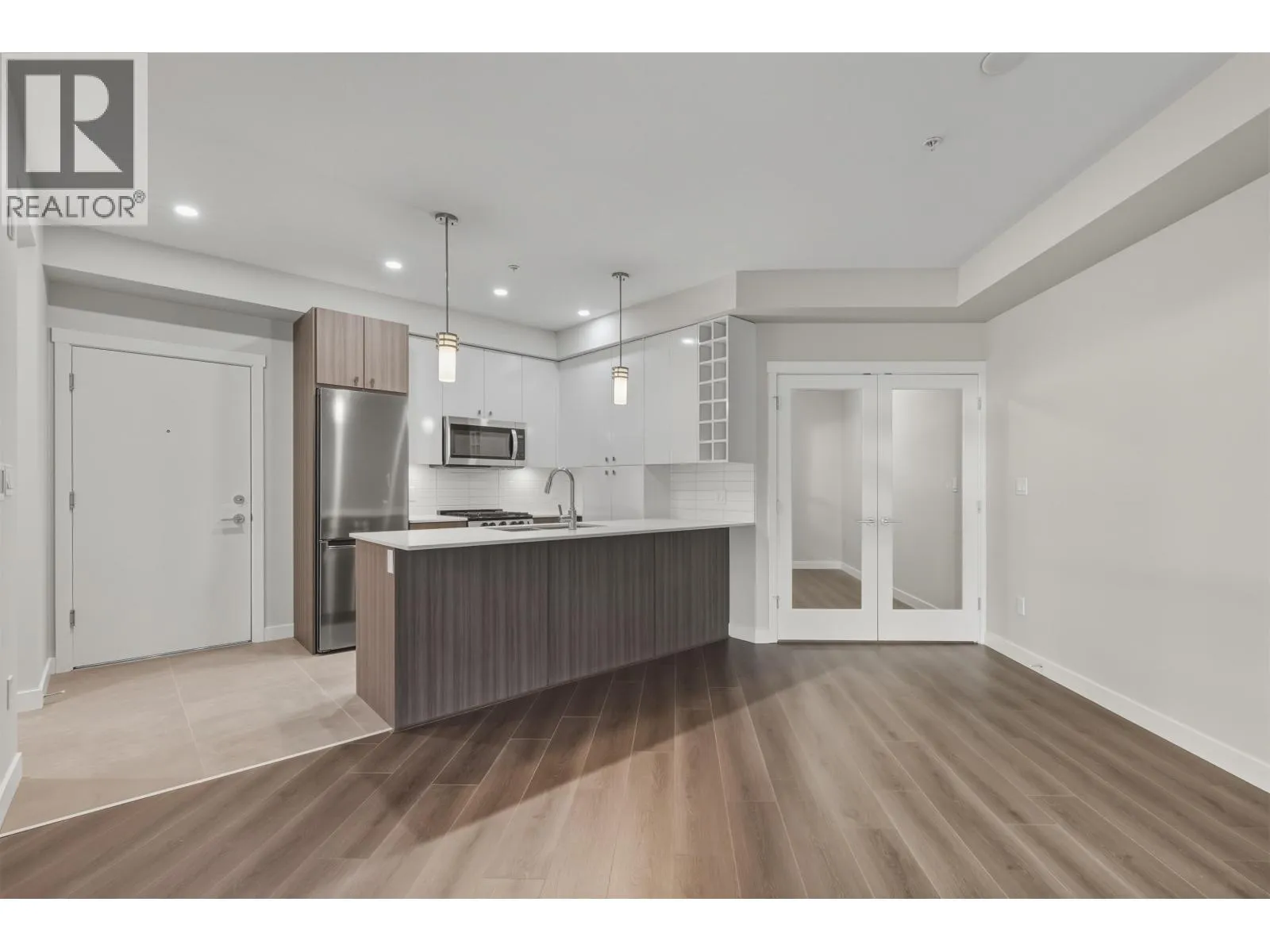 Beautiful, bright, and spacious 1-bedroom plus large den home available for immediate occupancy. The sizable den, complete with double French doors, is ideal as a second bedroom or a comfortable home office. The open-concept kitchen features stylish two-tone cabinetry, stainless steel appliances, a gas range, and quartz countertops. Step out onto the generous, fully covered balcony equipped with a natural gas hookup perfect for year round BBQs and enjoy a pleasant view overlooking the central courtyard. This home includes one secure parking stall with a built-in EV charger. Located in Hamilton Village in East Richmond, you´re just minutes from Queensborough Landing, Walmart, Tim Hortons, Costco, and more. The area offers quick and convenient access to North Delta, Surrey, Burnaby and Van. (id:27476)