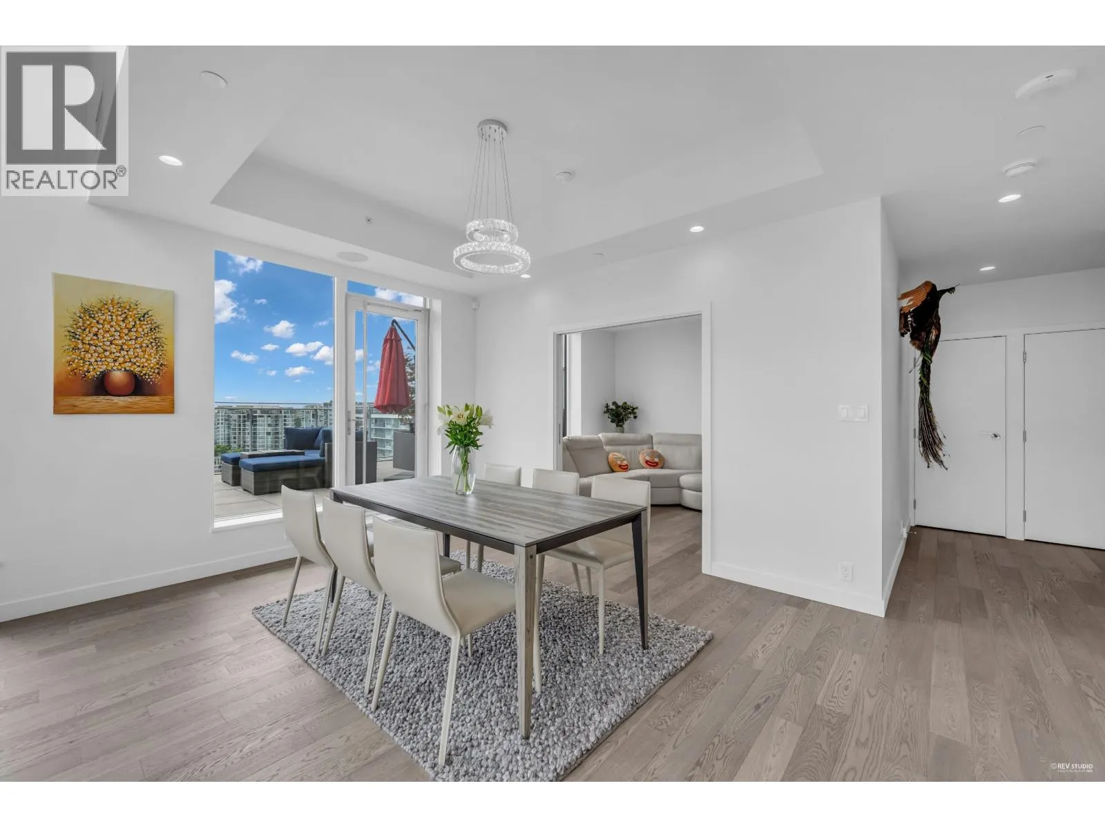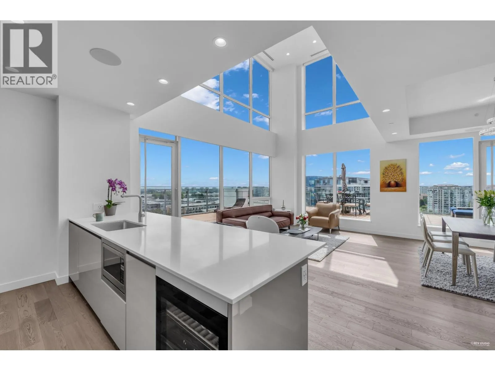 Experience elevated living in this stunning two-level penthouse at Hollybridge at River Green, a prestigious development by ASPAC. This spacious residence features 3 beds, 3 elegant bathrooms, a dedicated wok kitchen, and an expansive wraparound balcony with sweeping views. The home is finished with premium touches including engineered hardwood flooring, custom cabinetry, and top-of-the-line Miele appliances. Smart home integration, built-in speakers, and automated blinds offer modern convenience and comfort. Residents enjoy access to resort-style amenities such as an indoor pool, hot tub, sauna, fully equipped gym, games lounge, and multimedia room. Ideally located just moments from the Olympic Oval, waterfront trails, dining, entertainment, and T&T. Comes with 3 parking 2 lockers. (id:27476)
