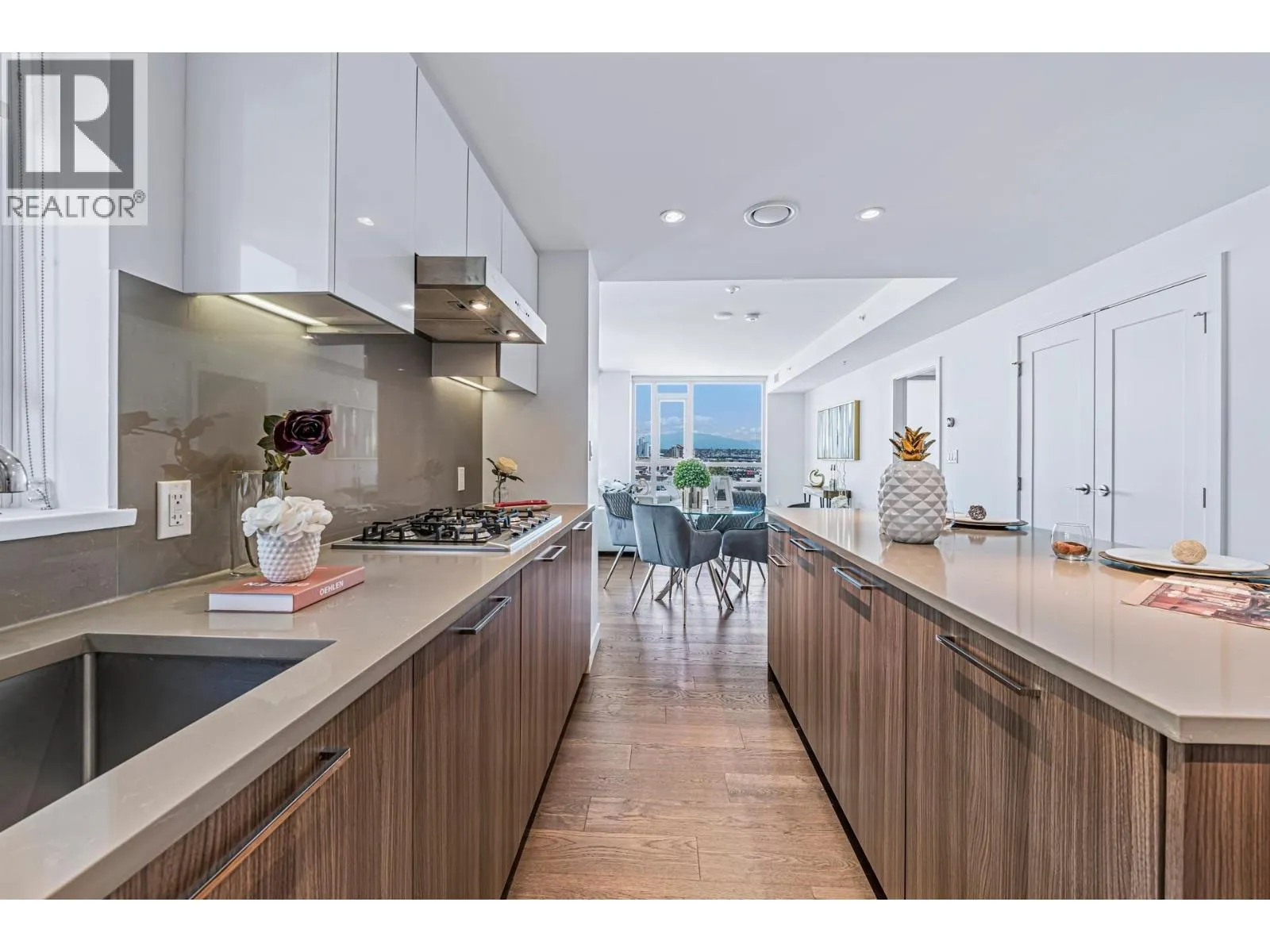 Modern 2 bed 2 bath residence at ViewStar, Richmond´s premier waterfront community. This west-facing unit offers approx 988 square ft interior plus 145 square ft balcony. Bright open layout with spacious living and dining areas. Features include high ceilings, engineered hardwood flooring, air conditioning, and a premium kitchen with Miele appliances and gas cooktop. The large balcony provides excellent outdoor space. Includes 1 parking stall with EV charging available (strata fee applies). Residents enjoy indoor pool, lounge, rooftop garden, and BBQ area. Steps to Capstan SkyTrain, shopping, and restaurants. Min 1 yr lease. Tenant insurance and credit check required. Utilities not included. (id:27476)