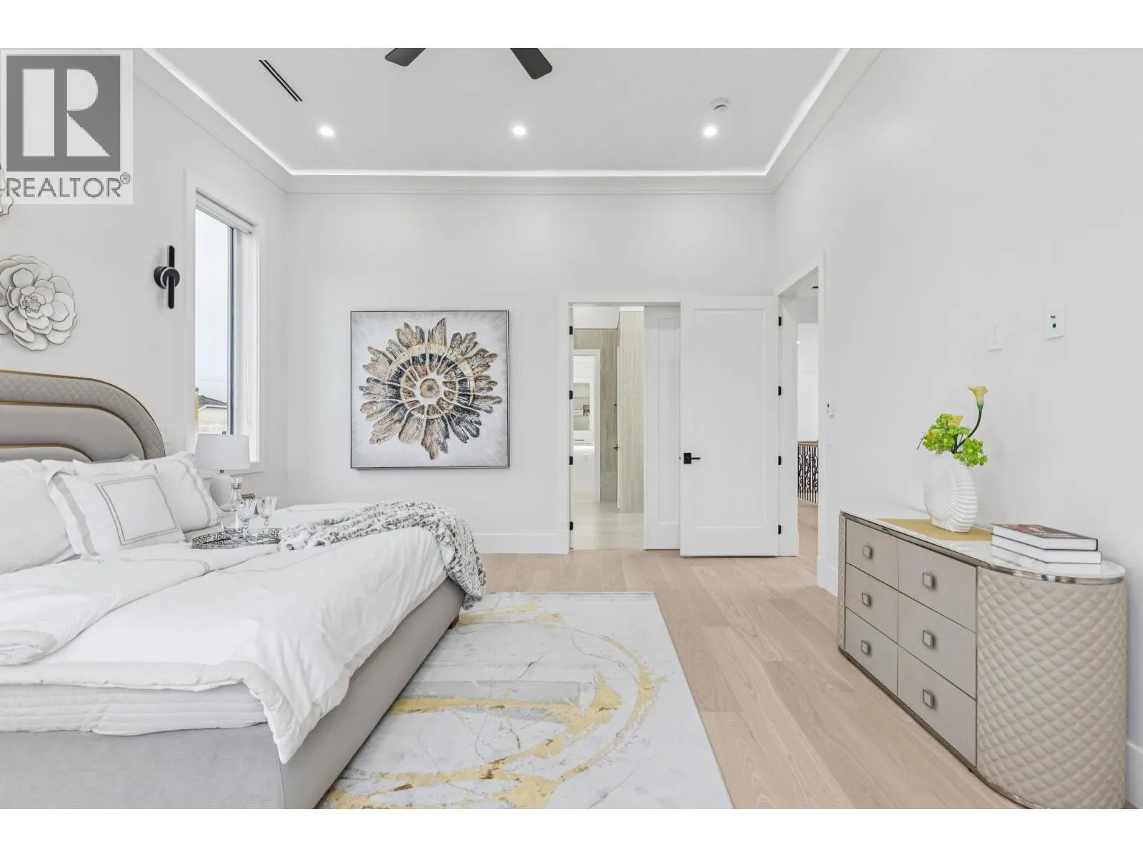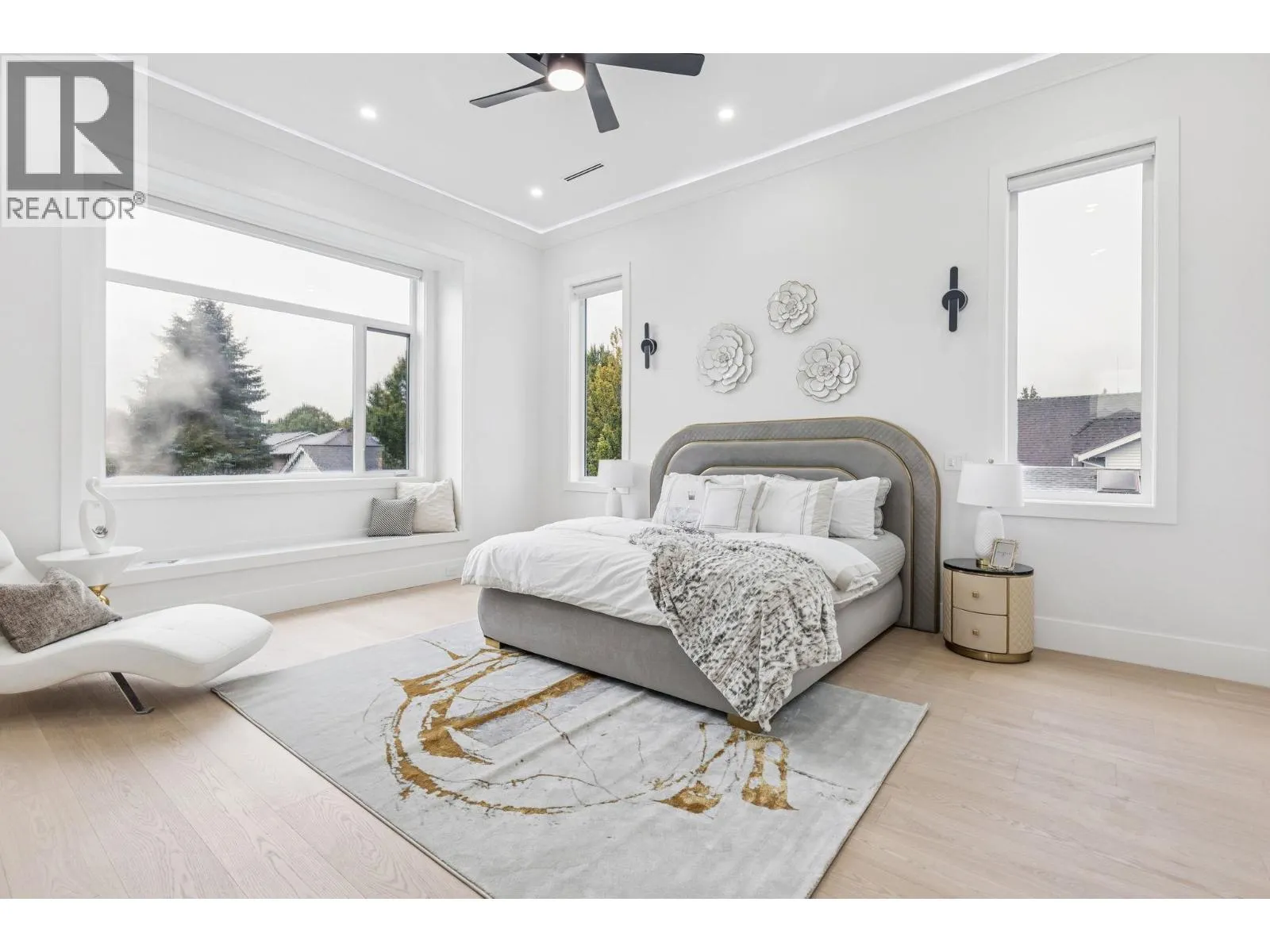 Stunning brand-new custom home in prestigious WestWind area, featuring 5 bdrms & 5.5 baths on almost 8,000 sq.ft.corner lot. Step inside to soaring ceilings & expansive windows filling the space with natural light. The gourmet kitchen boasts a massive marble waterfall island, Miele appliances + an oversized spice kitchen w/industrial gas range & access to south backyard. Main floor includes an elegant office & a private bedroom. Upstairs showcase the open bright walkway lead to the 12' high grand primary bedrm offers a spa-inspired ensuite with soaking tub, steam shower, double vanity, modern bidet. Walk-in wardrobe room showcases floor-to-ceiling custom cabinets & a glass-top island for designer accessories. South-facing backyard, solar panels & refined details complete this exquisite home. (id:27476)