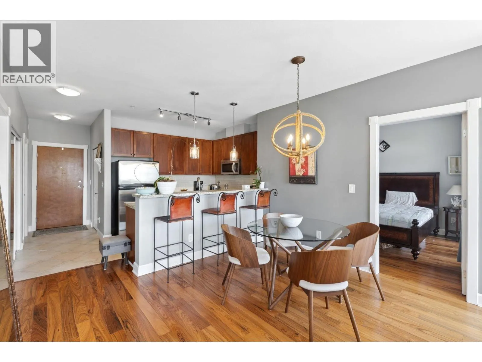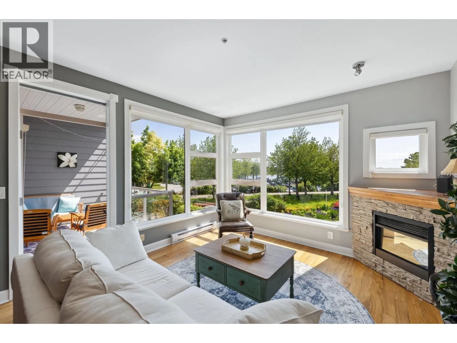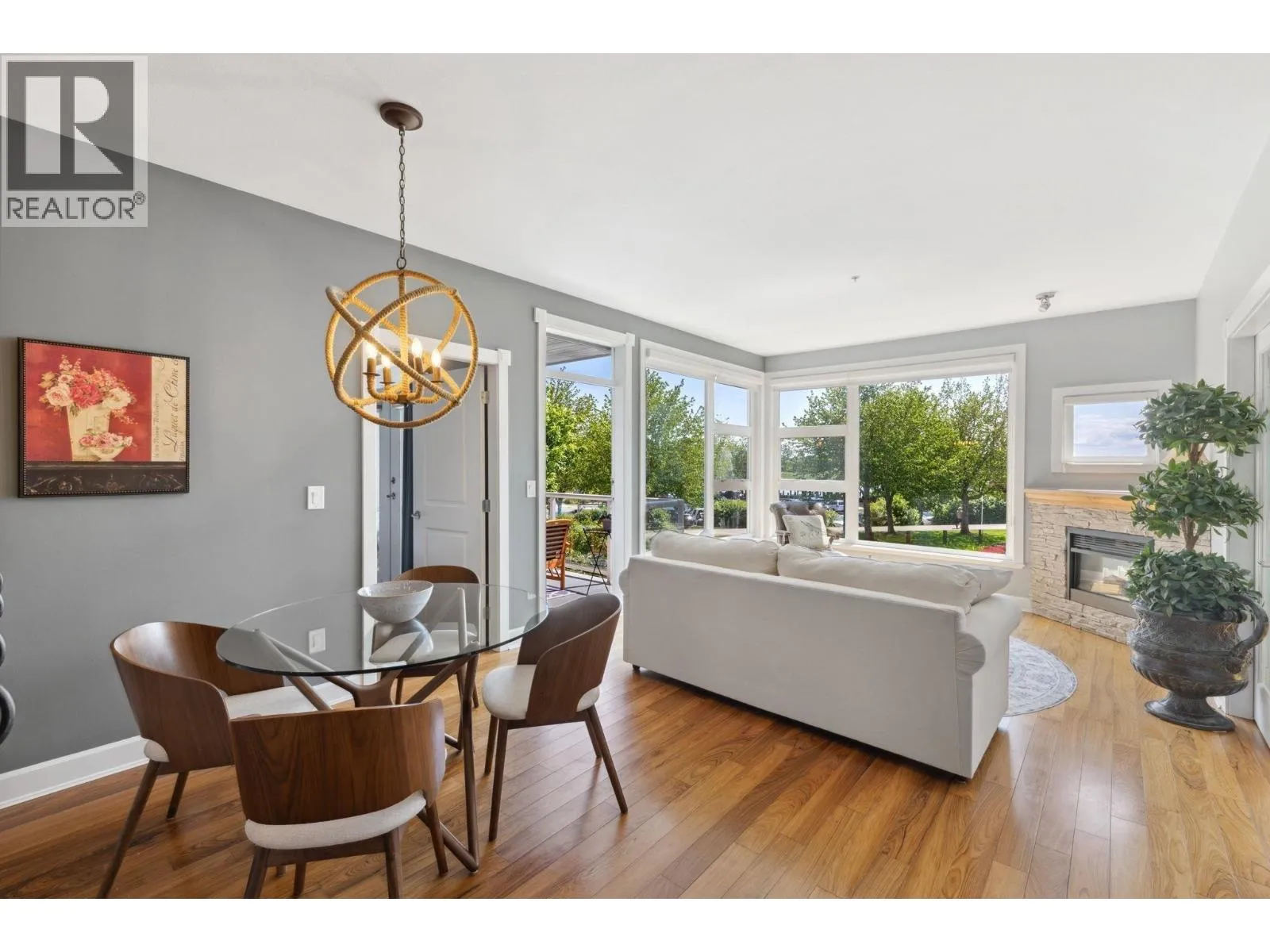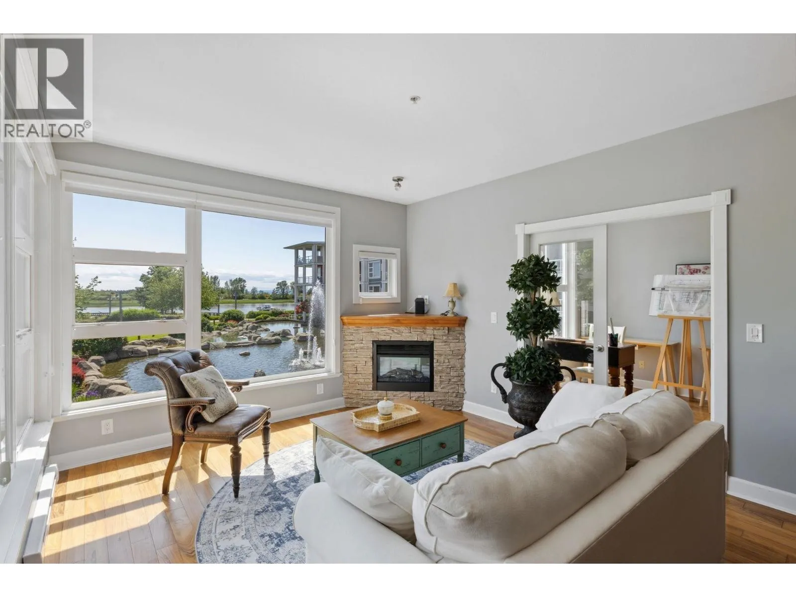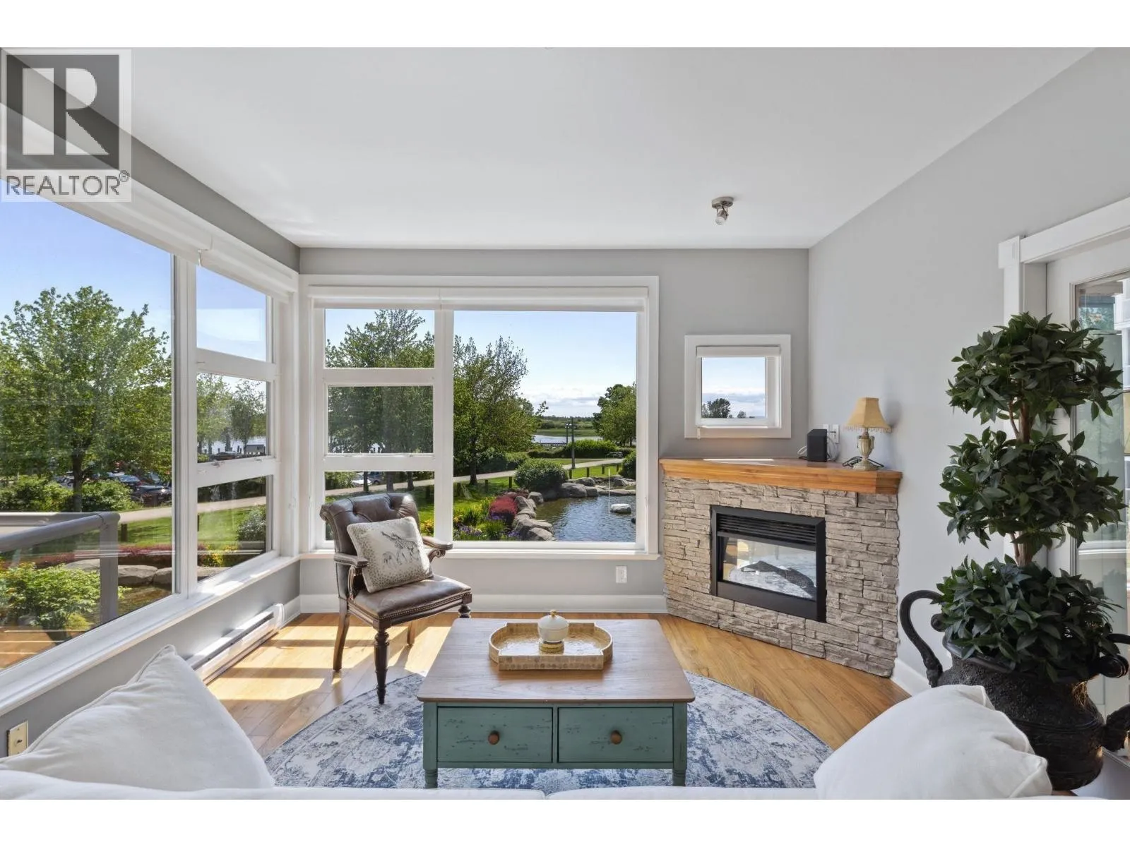 Welcome to Copper Sky, a coastal retreat nestled in beautiful Steveston. Offering modern elegance & comfort. This stunning 2 Bed, 2 Bath + Den condo spans over 1,000 sqft of thoughtfully designed space, featuring high ceilings & large windows that flood the home with natural light. The open-concept gourmet kitchen boasts SS appliances & granite countertops perfect for hosting family & friends. Relax in the spacious living area with a cozy fireplace & direct access to your private balcony, ideal for enjoying serene views of the waterfront. Retreat to the master bedroom with a walk-in closet & an ensuite bath. Enjoy access to amenities such as a fitness center & a rec room. Located in a coveted neighbourhood, you're just steps away from the scenic boardwalk, shops & highly rated restaurants. (id:27476)