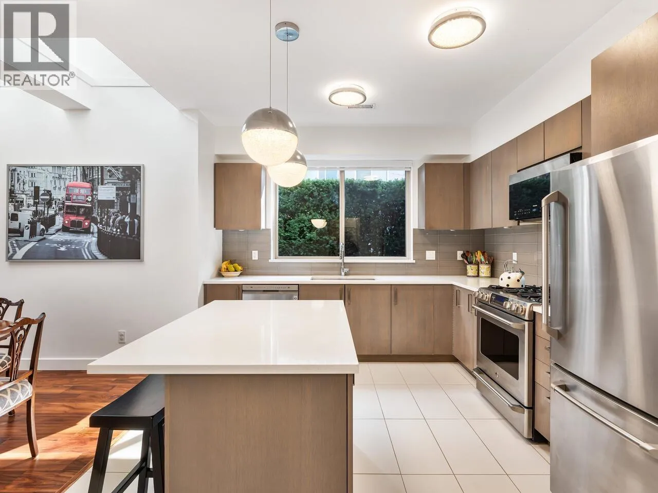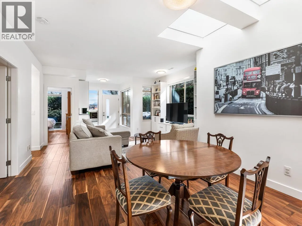 A RARE offering at Parc Riviera! Light-filled, one-level townhome positioned in one of the BEST LOCATIONS in the complex, with tons of QUALITY UPDATES! SPRAWLING 3 bed, 2 bath townhome PERFECT for downsizers or upsizers. Large entryway opens to SPACIOUS living, dining, kitchen, with overheight ceilings, large windows, bright skylights, updated flooring & custom cabinetry throughout. Kitchen feats ample storage, quartz counters, breakfast bar, & updated microwave hood fan. Primary bedroom with walk in closet, 4 pc ensuite, & room for a second office. Large 2nd bed with 2 closets, tasteful ensuite bath. 3rd bed used as office with built-in desk. LG washer/dryer (2025). A/C, 2 parking, pets/rentals ok. 2 fenced patios, one facing green space with playground, picnic tables, RIVER VIEWS! OH SAT/SUN, 2-4. (id:27476)