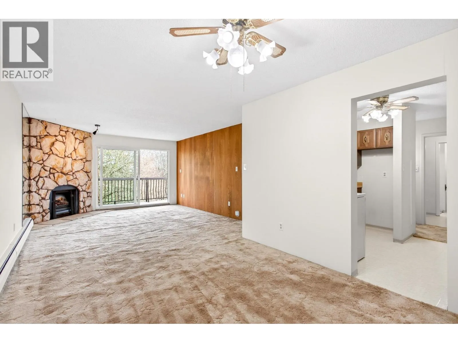 Welcome to Stornoway. A generously sized top-floor home in a peaceful, tranquil setting. Ideally located in a desirable northeast-facing position, this unit overlooks the natural beauty of South Arm Park. Featuring 2 bedrooms and 2 bathrooms, along with a spacious living room, cozy nook, and an electric fireplace, this home is filled with potential. Oversized windows bring in an abundance of natural light, creating a bright and airy atmosphere throughout. A perfect place to call home with personal touches - perfect for those seeking a relaxed lifestyle in a quiet, well-maintained community. Ideal for down sizers or anyone looking to slow down and enjoy peaceful living at a modest price point. Includes 1 parking stall, 1 storage locker, and a monthly maintenance fee that covers hot water and city utilities. Enjoy unbeatable convenience with a 5-10 minute walk to Broadmoor Shopping Centre, Southarm Community Centre, transit, schools, restaurants & more. Pets not allowed. Rentals allowed with restrictions. (id:27476)