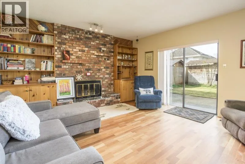 Terrific, traditional home featuring 3 bedrooms, plus a DEN, with 2.5 bathrooms tucked into a fabulous, family-friendly neighbourhood close to schools and transit. Welcoming bright foyer with skylight opens onto the spacious living/dining area with VAULTED wood plank ceilings with beautiful SQUAMISH ROCK fireplace adding warmth and architectural detail. U shaped kitchen with wood cabinets and laminate counters adjacent to the family room with blonde laminate flooring. Fully fenced grassy backyard with storage shed. Well appointed laundry room with sink functions as a mud room to the single garage (currently flex area with storage) and additional driveway parking. A wonderful opportunity! OPEN HOUSE: Saturday April 4th, 2-4pm. (id:27476)