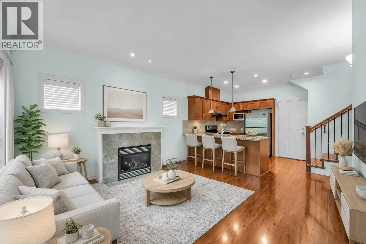 Rarely available duplex-style townhouse in prime West Richmond. Beautifully renovated in 2024, this move-in ready 2-level home offers a functional layout with bright living and dining areas, cozy gas fireplace, and an open kitchen with granite countertops and stainless steel appliances. Three spacious bedrooms plus a den upstairs, with potential for the den to be used as a 4th bedroom. Side-by-side double attached garage. Convenient location close to Blundell Centre, transit, parks, community centre, Richmond Centre, YVR, and Vancouver. Excellent school catchments nearby: McKay, Jesse Wowk, Richmond Christian School, and McMath Secondary. A fantastic opportunity-don´t miss it! (id:27476)