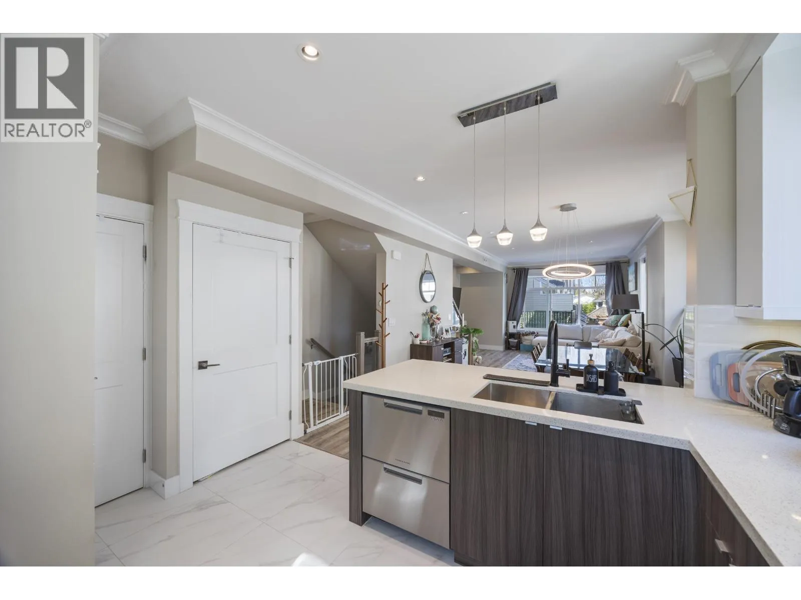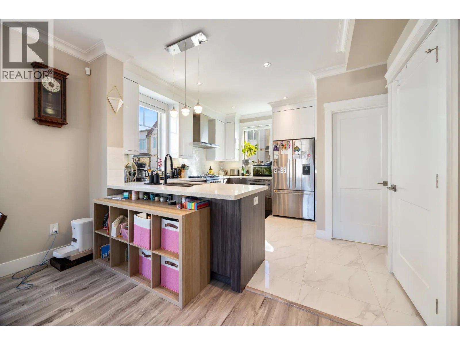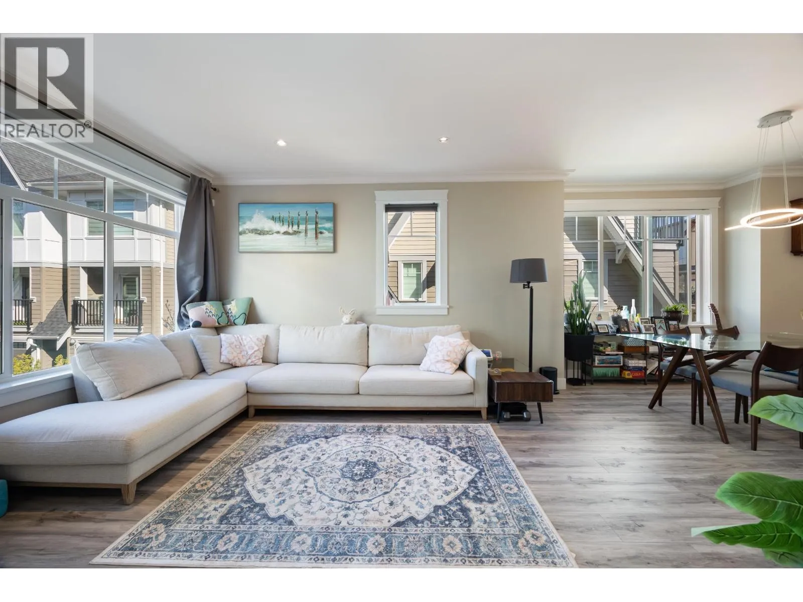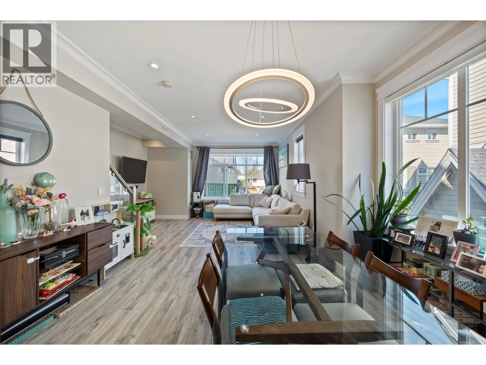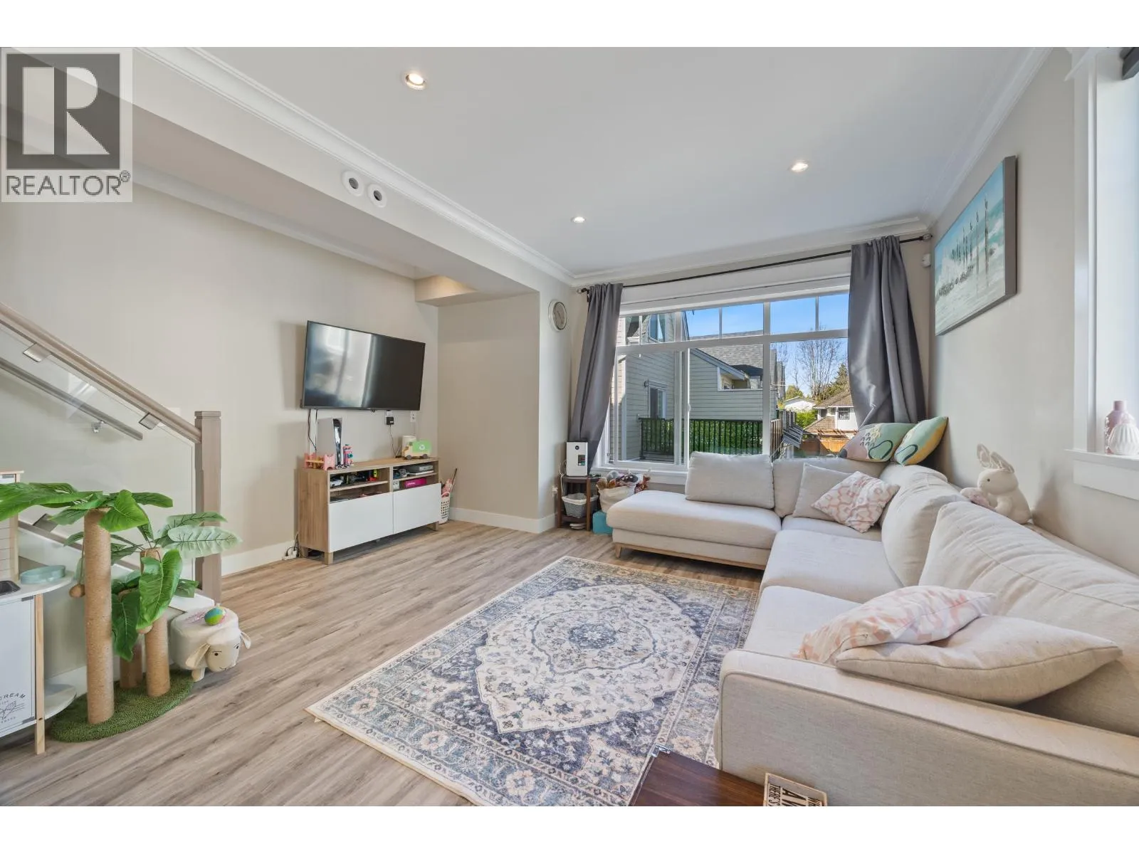 Welcome to this spacious and bright 3-bedroom, 2.5-bath townhome offering an open-concept layout with high ceilings on both the main and upper levels. The modern kitchen is equipped with premium Fisher & Paykel appliances, ideal for everyday living and entertaining alike. Tucked away on the interior of the complex, this home enjoys a quiet setting while remaining centrally located with easy access to major routes. Outside, enjoy a private yard perfect for relaxing or hosting, plus the convenience of a tandem garage and air conditioning for year-round comfort. Just one block from Garden City Park & within walking distance to Anderson Elementary and MacNeill Secondary. An excellent opportunity for families or buyers seeking comfort, quiet, & connectivity in one package. OH Sat May 2nd, 2-4PM (id:27476)