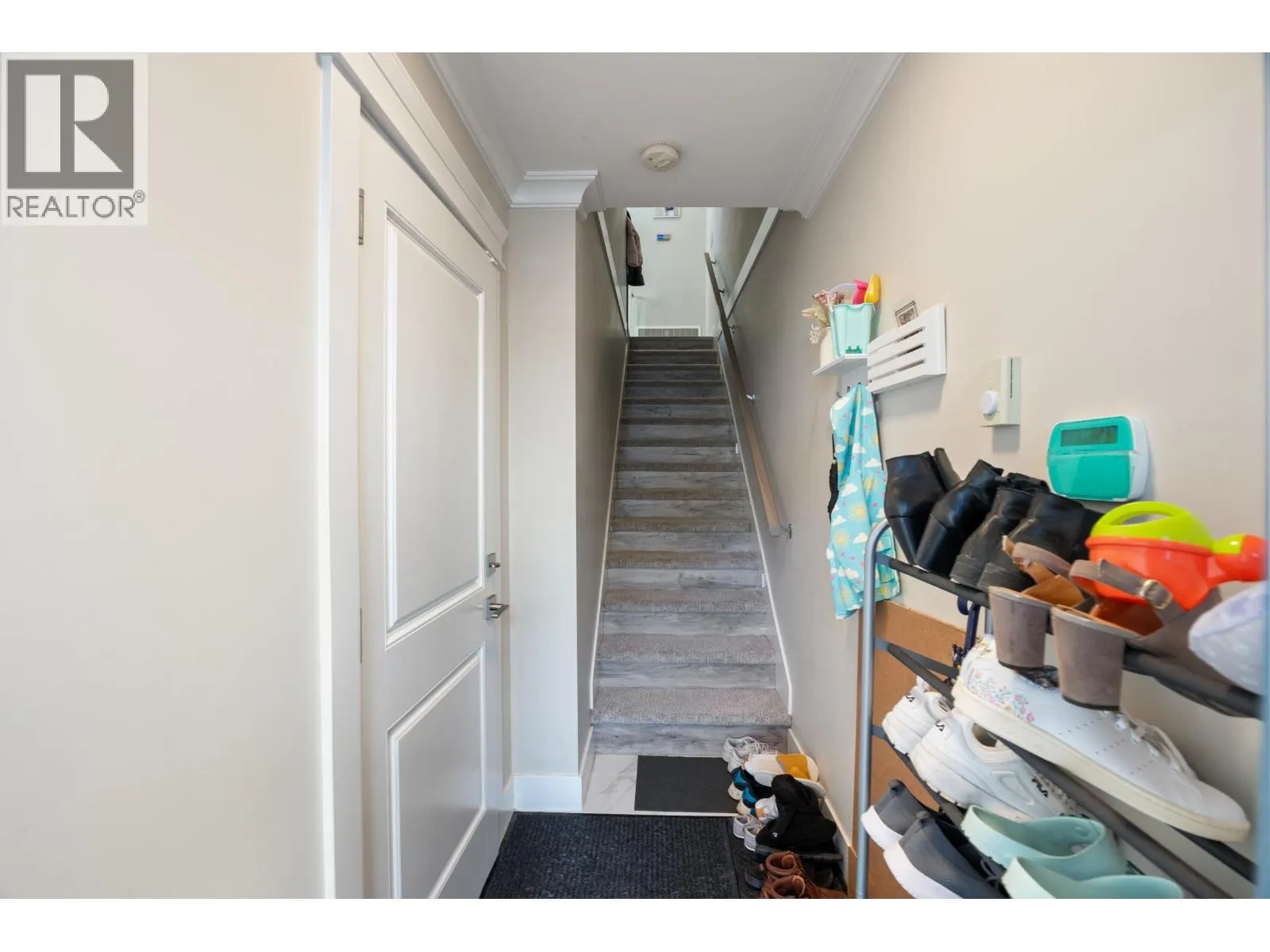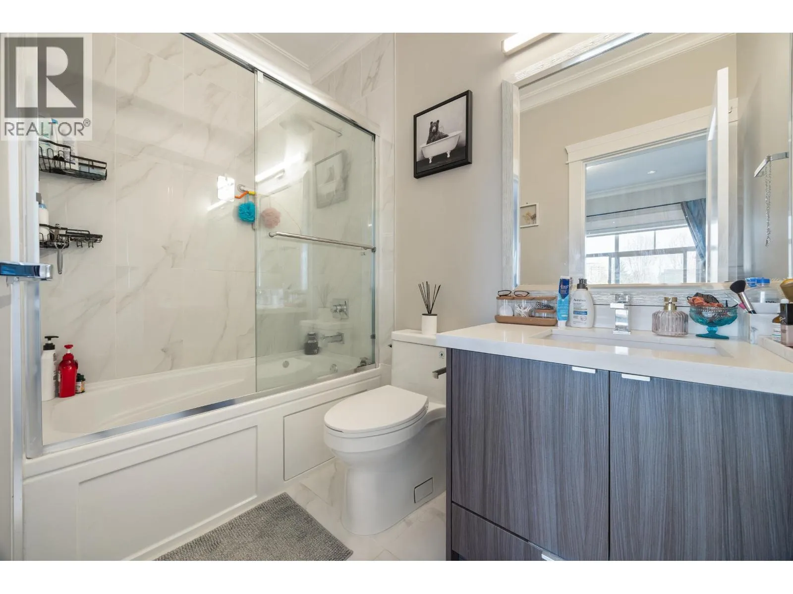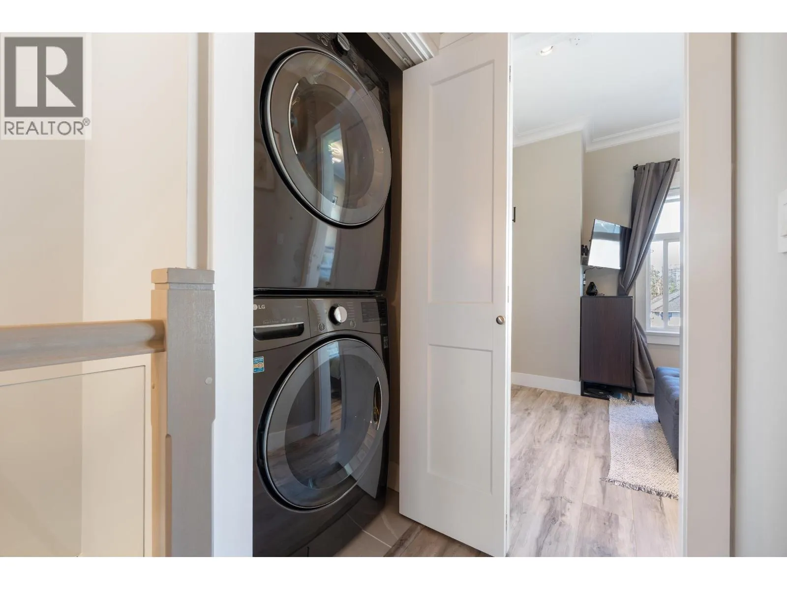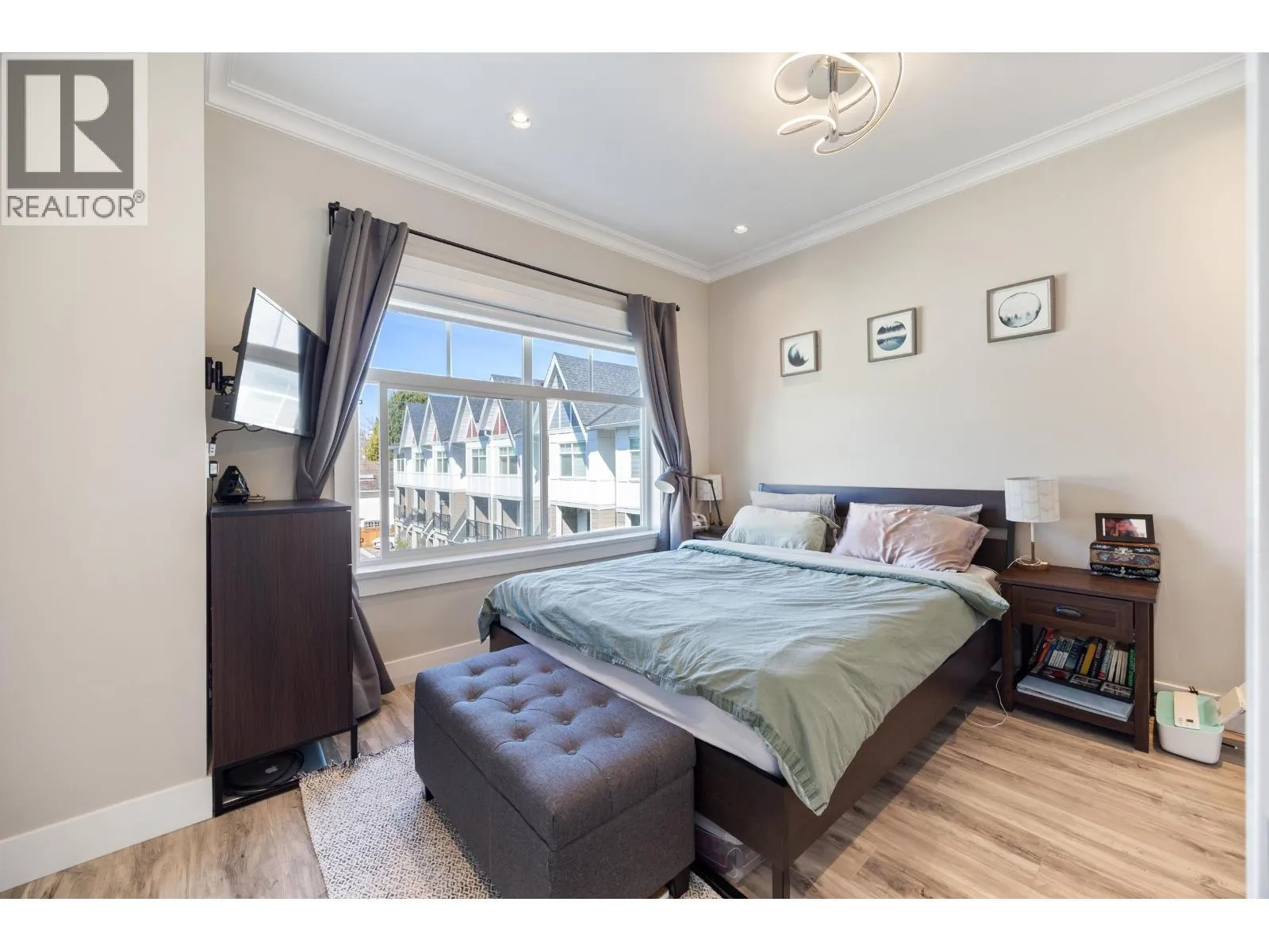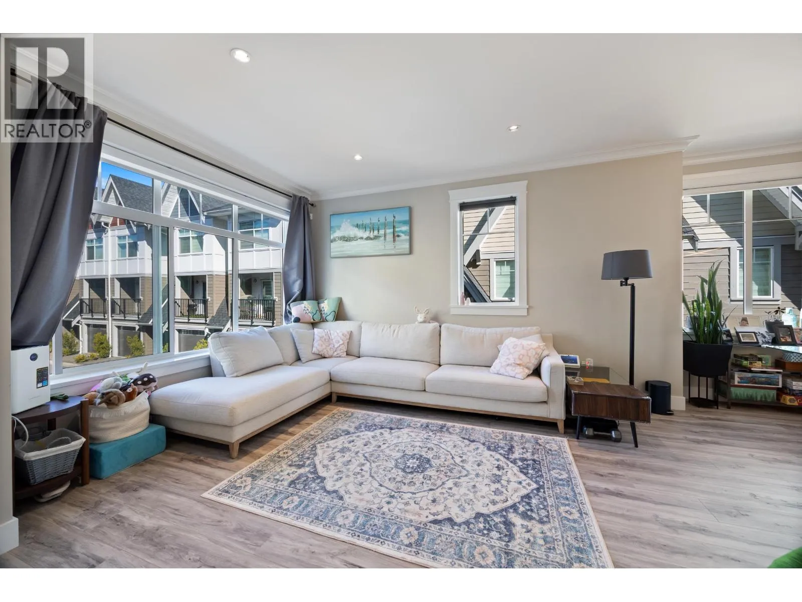 Welcome to this spacious and bright 3-bedroom, 2.5-bath townhome offering an open-concept layout with high ceilings on both the main and upper levels. The modern kitchen is equipped with premium Fisher & Paykel appliances, ideal for everyday living and entertaining alike. Tucked away on the interior of the complex, this home enjoys a quiet setting while remaining centrally located with easy access to major routes. Outside, enjoy a private yard perfect for relaxing or hosting, plus the convenience of a tandem garage and air conditioning for year-round comfort. Just one block from Garden City Park & within walking distance to Anderson Elementary and MacNeill Secondary. An excellent opportunity for families or buyers seeking comfort, quiet, & connectivity in one package. OH Sat May 2nd, 2-4PM (id:27476)