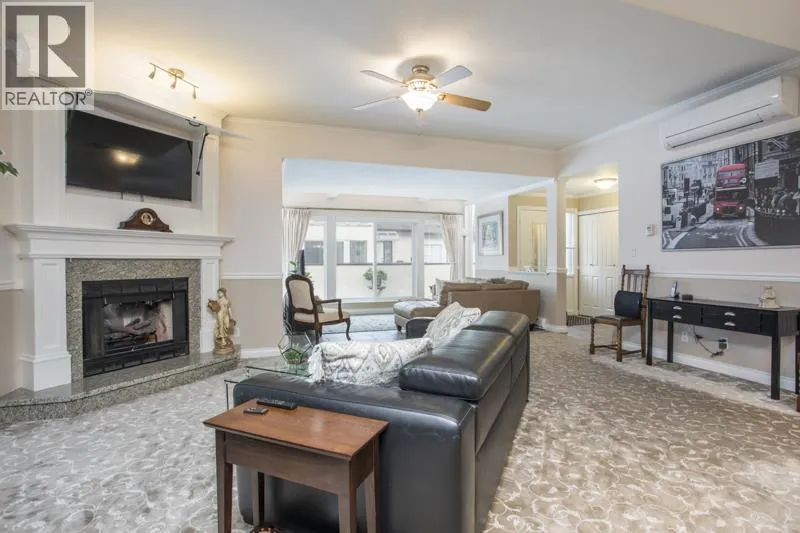 NEWPORT TERRACE-unique and SPACIOUS, stacked townhome with stairs leading to ONE LEVEL living in a lovely and bright 2 bedroom plus SOLARIUM, 2-bathroom unit with amazing CENTRAL LOCATION. Great room concept with updated carpet in the living/dining/family room area, opening onto the kitchen with newer stainless appliances and stone counters. Laundry room with amazing built-in storage plus drop down ladder to additional storage area. 2 underground side-by-side parking spots. Well maintained, pet-friendly complex with caretaker, updated asphalt roof (2020), paint (2022). Heat pump AC plus electric baseboard heat. Over 1400 sq ft, feels like a rancher! Close to Richmond Centre, Canada Line, Minoru Park and much more. A must see! (id:27476)