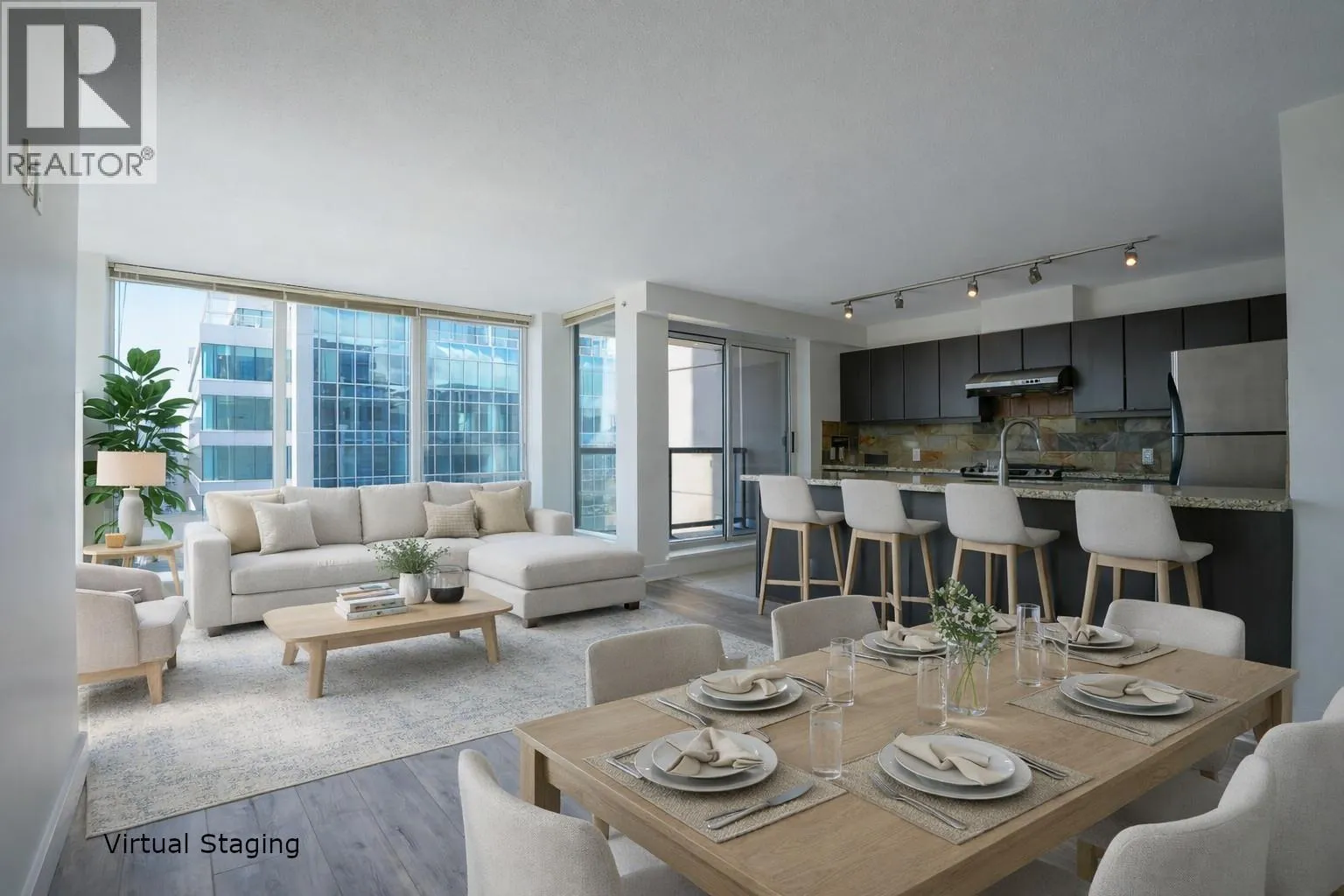 Forget cramped condo living; this floor plan prioritizes room to breathe, natural sunlight & year round comfort. Welcome to Paloma 1, luxury air conditioned concrete high rise in heart of central Richmond. Airy, southwest facing corner unit home features 2 generously sized bedrooms, 2 full bath and massive floor-to-ceiling windows. The bright oversized chef´s kitchen is a standout featuring direct balcony access, S/S appliances, double thick granite countertop, stone like tiled backsplash. Comes with gas stove, high performance Sakura hood fan, under cabinetry lighting and abundance of storage & prep space. The wide, open-concept living & dining area highlighted by updated flooring, new heat pump and fresh paint throughout. Well maintained building featuring concierge, exercise room, social lounge, roof top garden, strolling pathway & children playground. Ultimate convenience- dining, grocery, banks, shopping, Richmond Centre, Minoru Park, Community Center, Library, Richmond Public Market, and Canada Line. (id:27476)