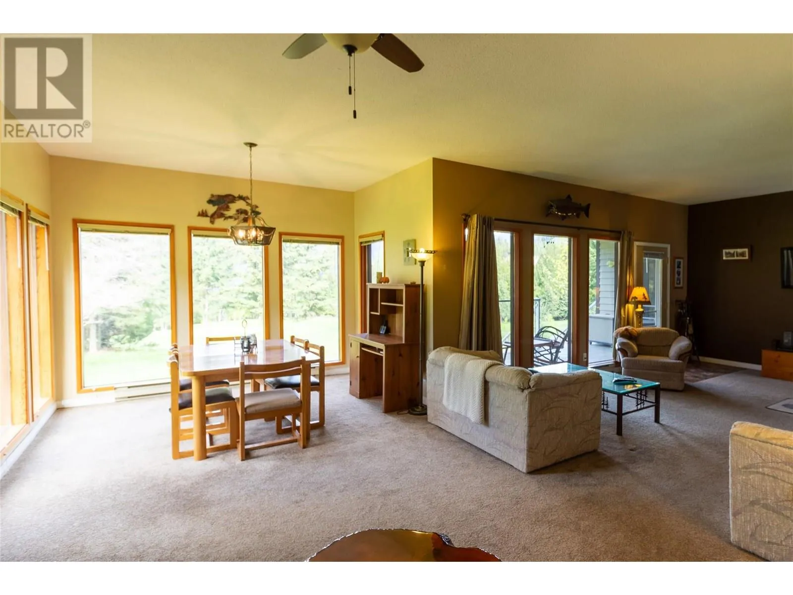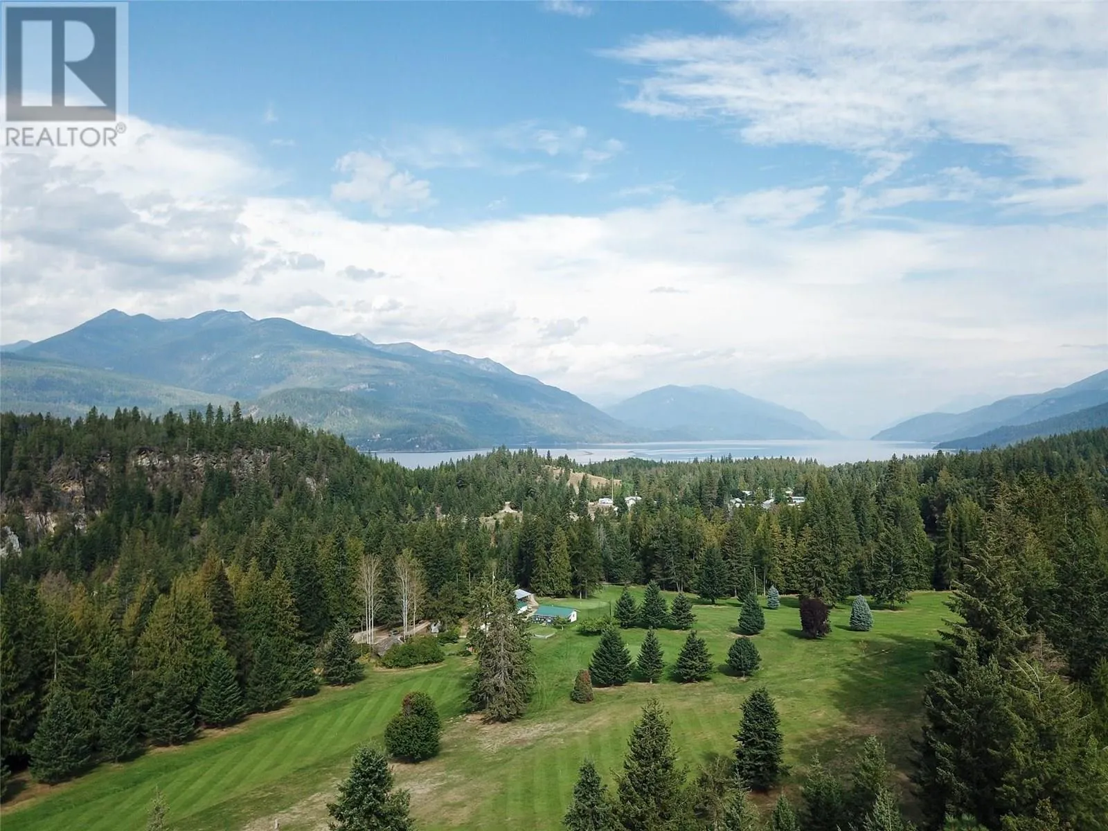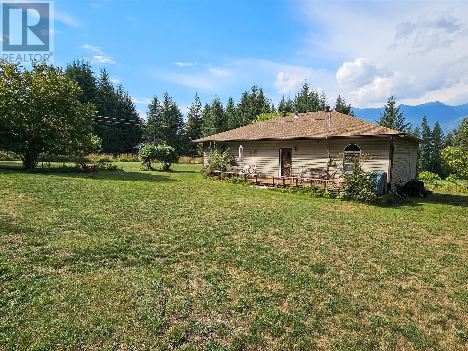 Situated just over an acre of land on the edge of town and along the fairways of the Riondel golf course this home and property are a unique offering in the Riondel market. The house consists of 2 bedrooms, and 2 full bathrooms spread out over 1500 sq/ft of single-level living with a large, functional, living space ideal for gatherings with family and friends. The views of the fairways and mountains are near perfect from everywhere in the house thanks to the huge number of floor-to-ceiling windows facing West and the back covered deck is the ideal spot to further take in those views. Recent improvements include a new front deck, a freshly painted exterior and a newer roof. The property is just over an acre and nicely treed from the road to provide privacy and there's ample yard space at the house to accommodate additional guest RV's or build a garage/shop ect. This home and property will not disappoint, so be sure to schedule your viewing today. (id:27476)