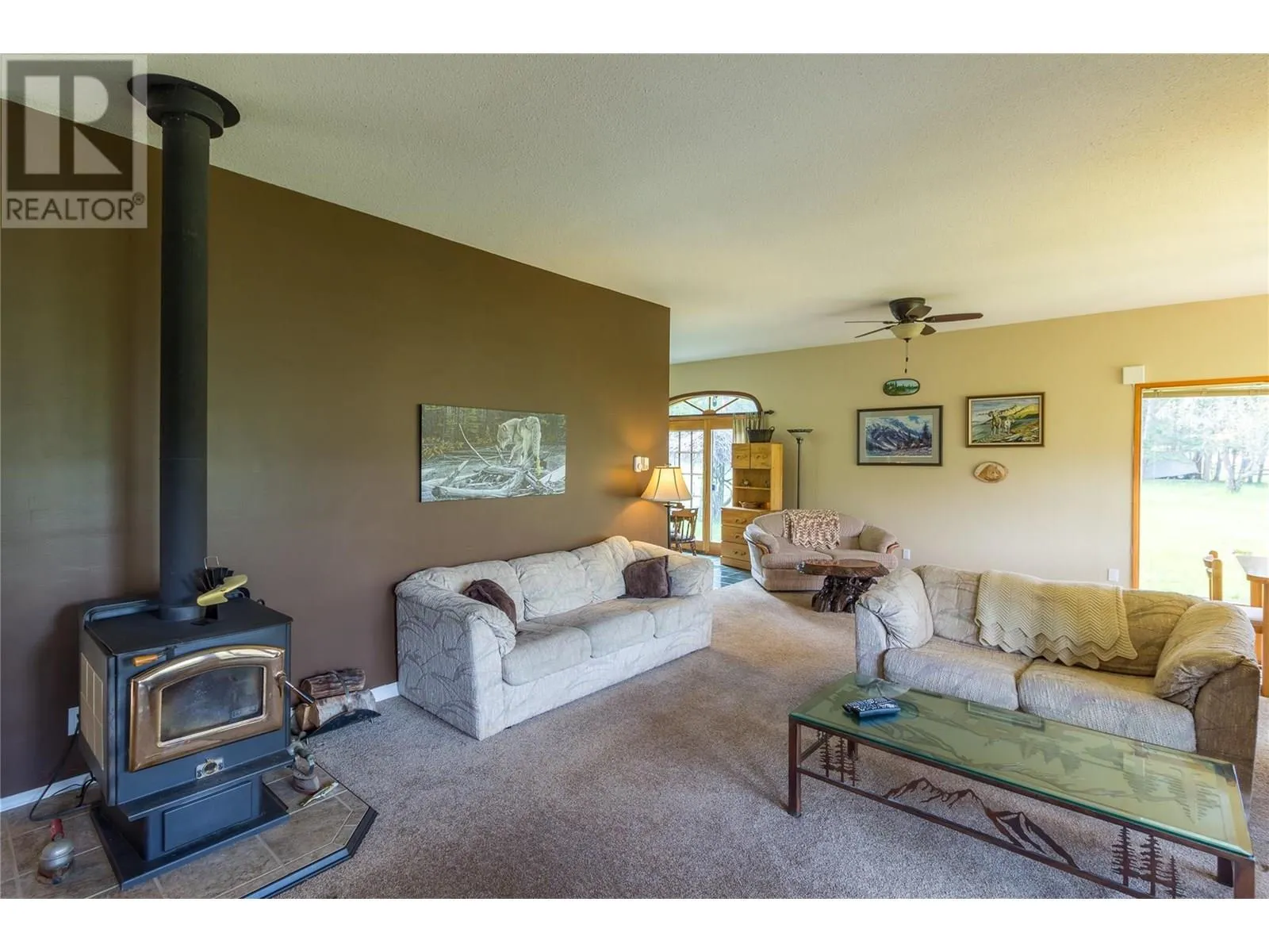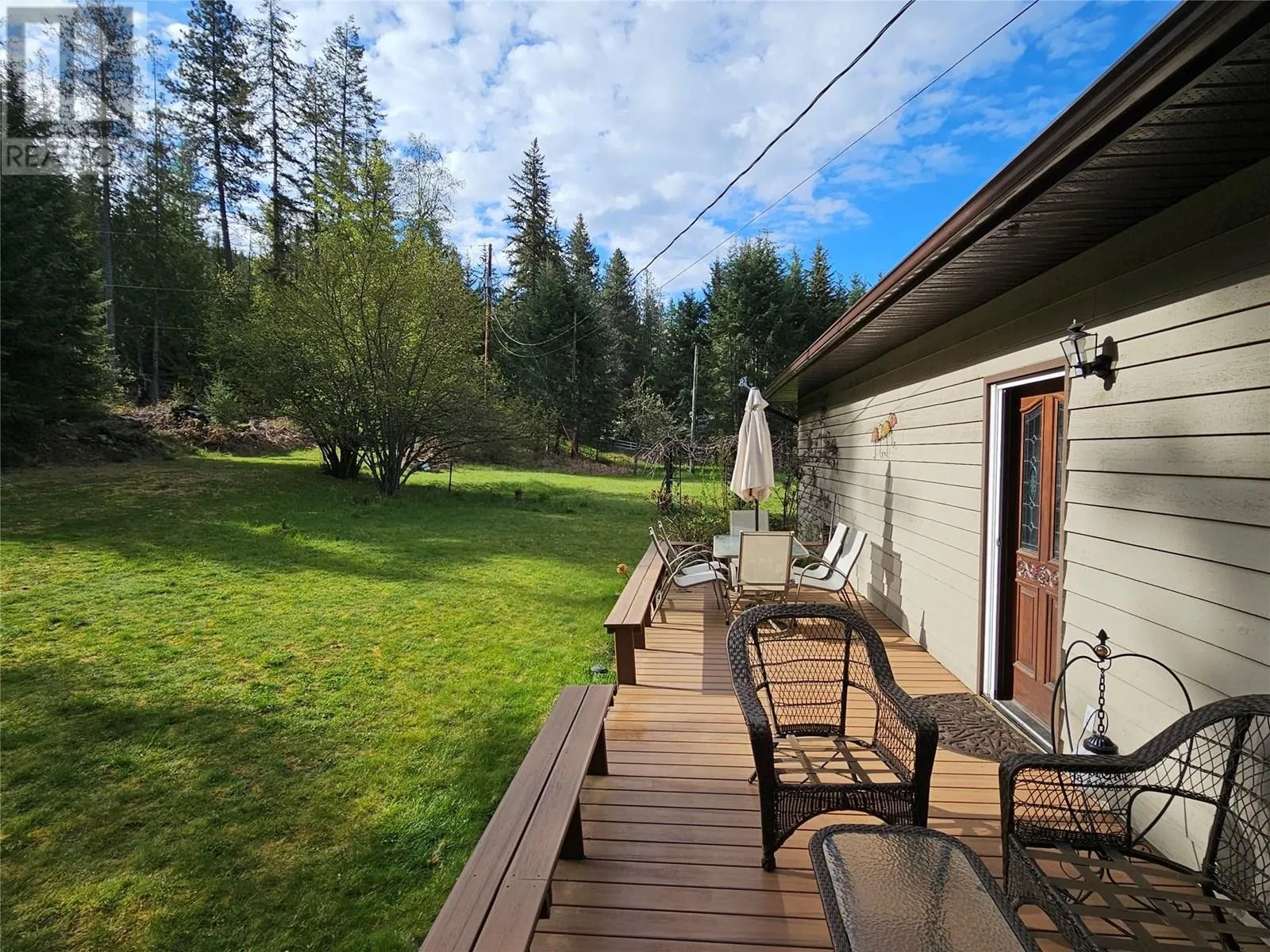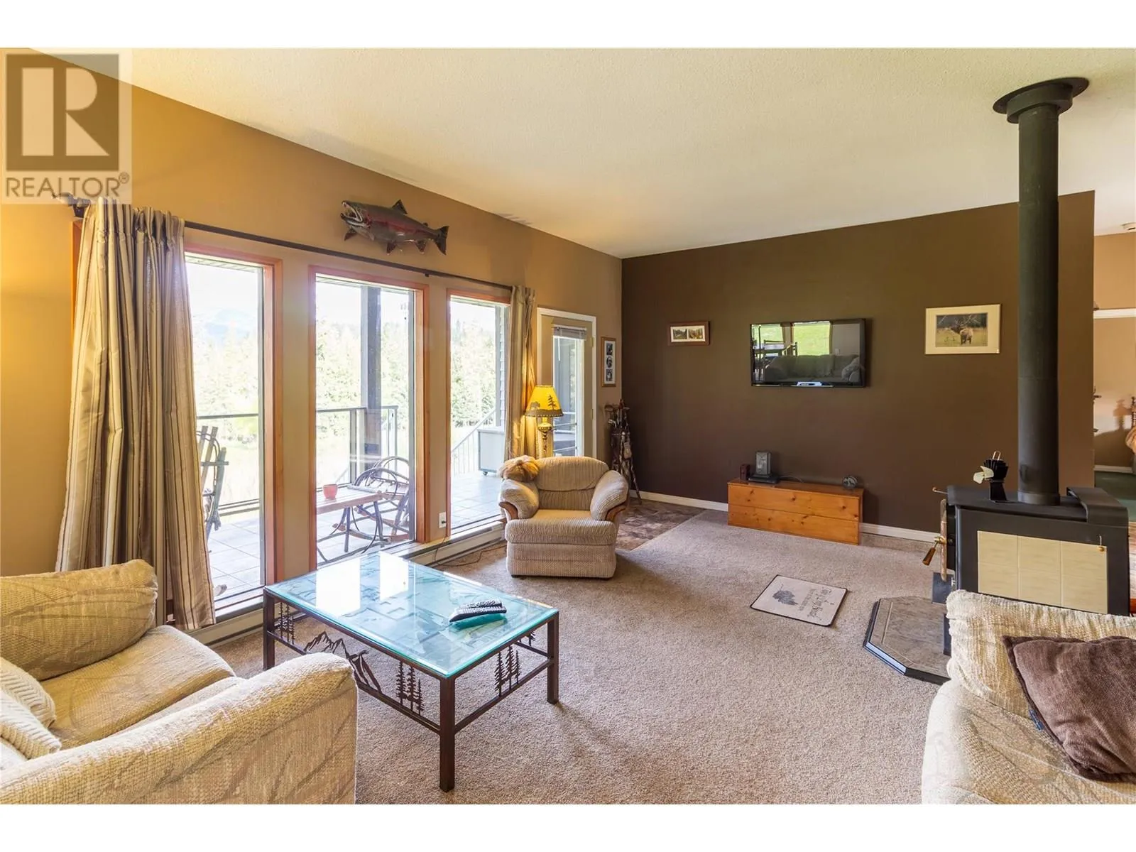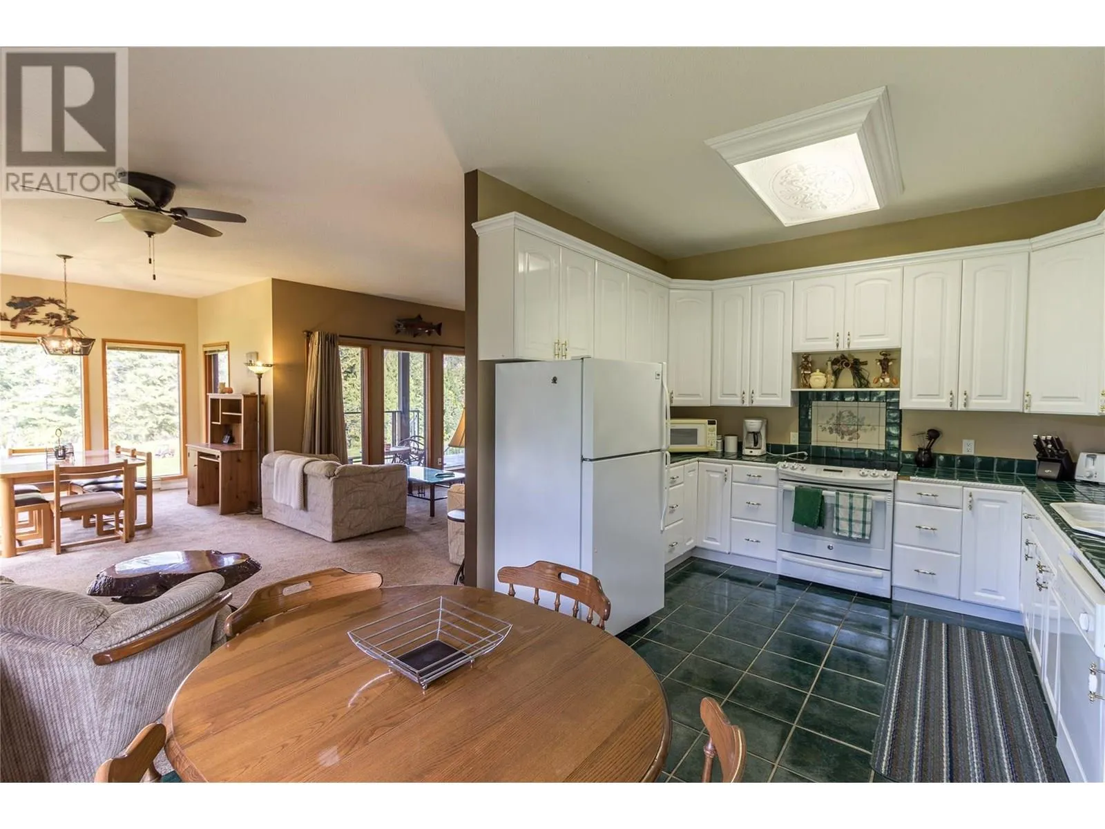 Situated just over an acre of land on the edge of town and along the fairways of the Riondel golf course this home and property are a unique offering in the Riondel market. The house consists of 2 bedrooms, and 2 full bathrooms spread out over 1500 sq/ft of single-level living with a large, functional, living space ideal for gatherings with family and friends. The views of the fairways and mountains are near perfect from everywhere in the house thanks to the huge number of floor-to-ceiling windows facing West and the back covered deck is the ideal spot to further take in those views. Recent improvements include a new front deck, a freshly painted exterior and a newer roof. The property is just over an acre and nicely treed from the road to provide privacy and there's ample yard space at the house to accommodate additional guest RV's or build a garage/shop ect. This home and property will not disappoint, so be sure to schedule your viewing today. (id:27476)