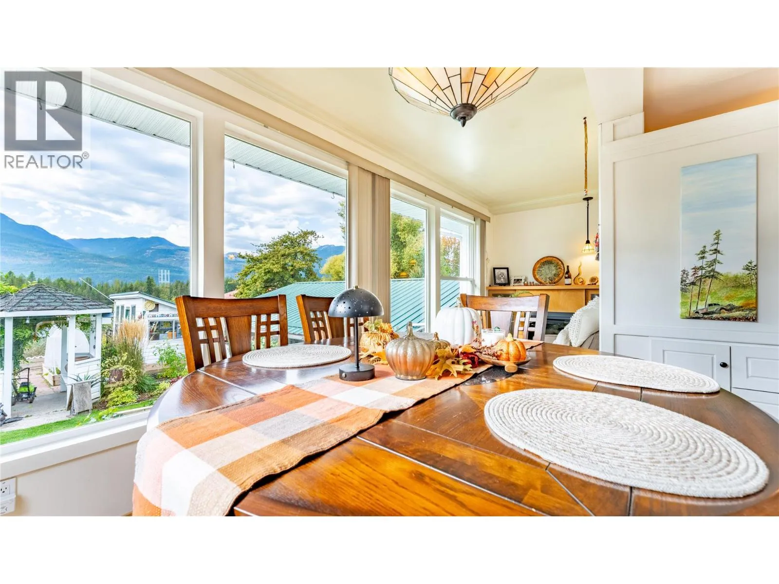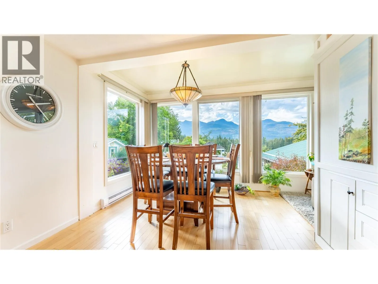 Must-see 3-bedroom, 2-bathroom home with office/den and stunning mountain views. Recently upgraded septic tank and field. Main level offers two bedrooms, office, full bathroom, and hardwood floors. Relax in the sunny reading nook. Finished walkout basement boasts a third bedroom, second bathroom, and family room. Additional finished heated space with separate entrance and is own office perfect for games room or home business. Ideal for gardening enthusiasts with greenhouse and raised beds. Double carport with alley access. New woodshed and appliances, plus updated flooring. Enjoy proximity to Kootenay Lake for beach days and lake adventures. Embrace Riondel living with golf club, school, camping, and mountain activities. Don't miss outâcontact your Realtor today! (id:27476)