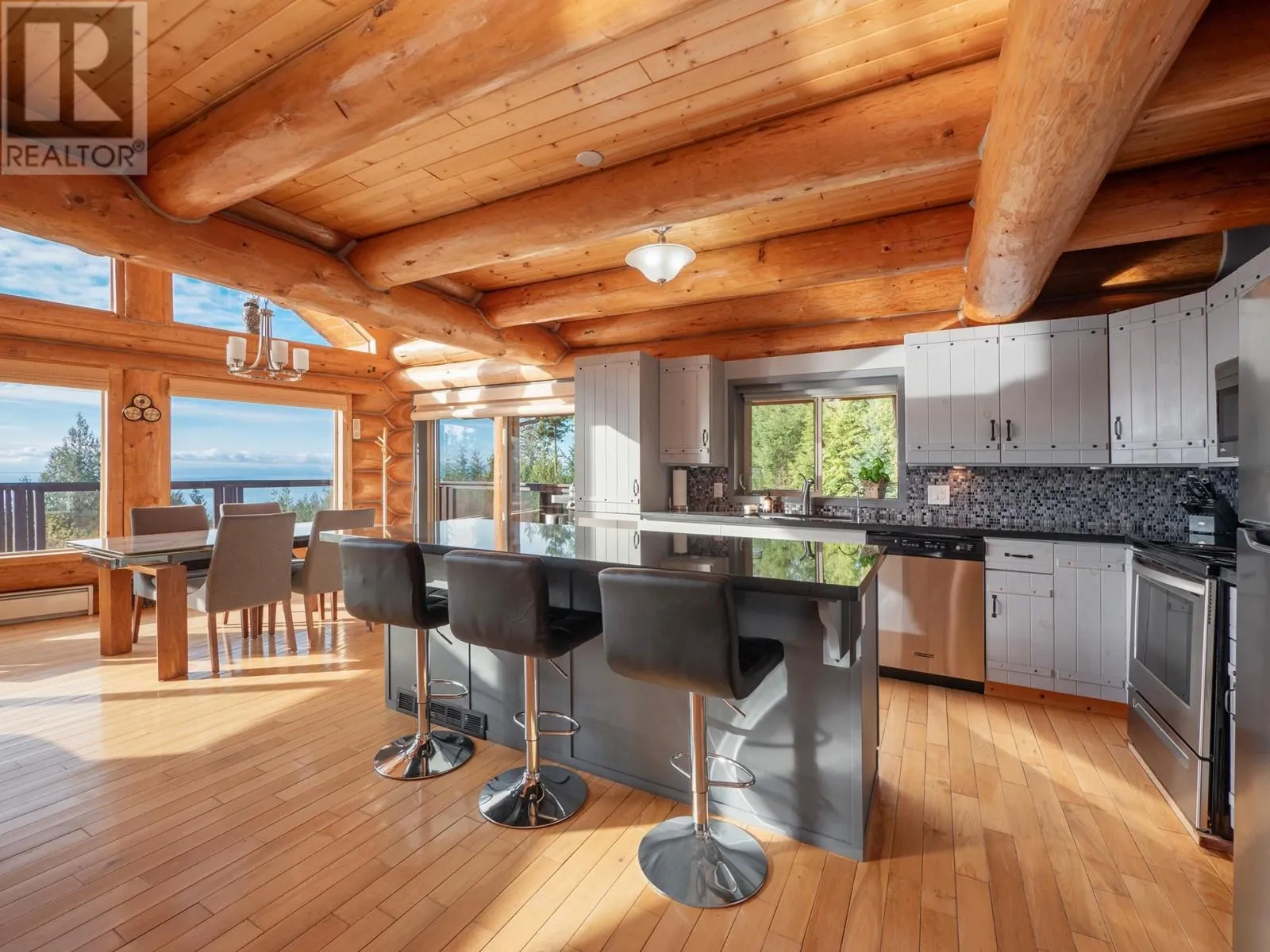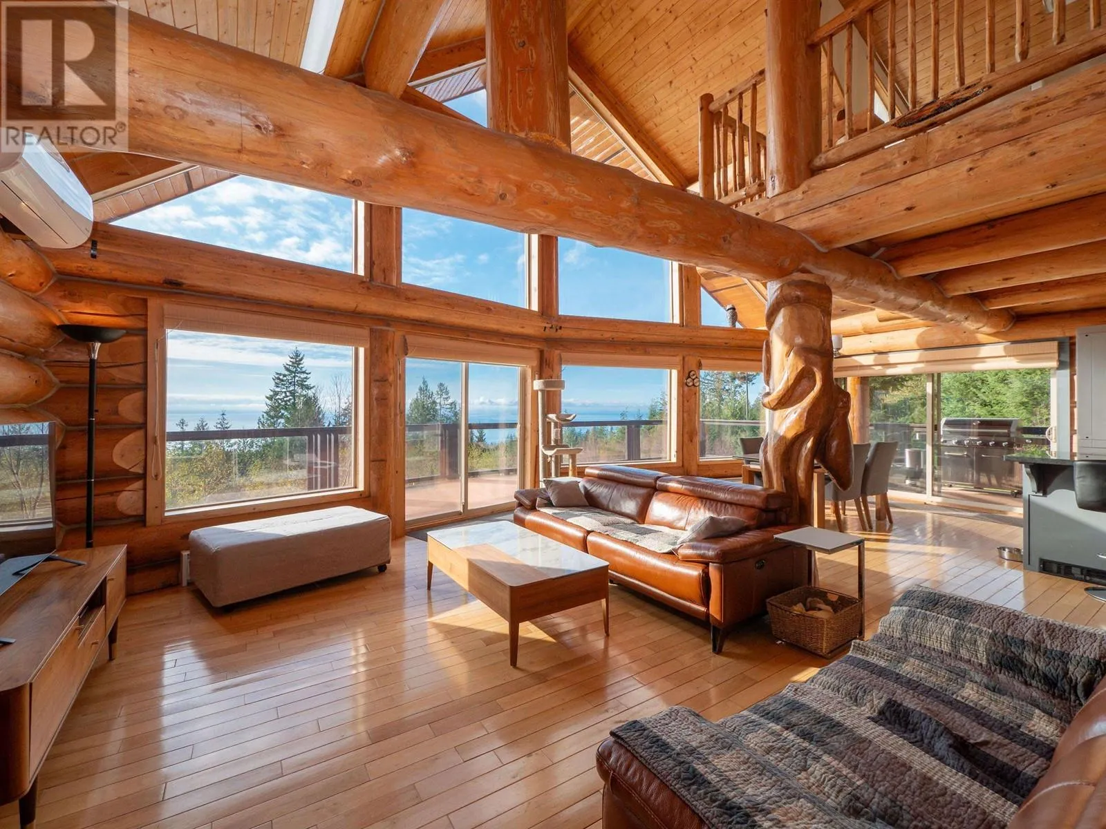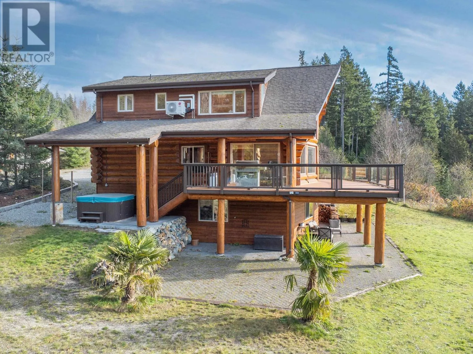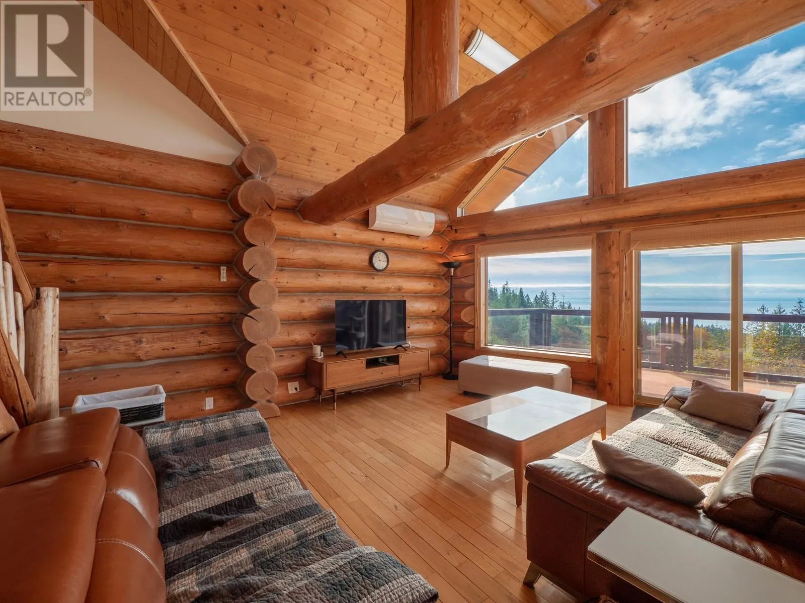 Welcome to this absolutely stunning hand-crafted log home that offers breathtaking panoramic ocean and island views from its large south-facing deck. Nestled on a spacious 4.65-acre property, this gem features a detached 2-car garage/workshop, multiple gardens, and convenient access to walking, biking, and ATV trails. The interior of this home is truly an entertainer's dream, with a generous open concept kitchen, living, and dining area on the main floor. Expansive windows bathe the home in natural light and showcase the incredible vistas. Numerous recent upgrades further enhance the overall appeal of this charming residence. Don't miss out on the opportunity to make this dream home your own - schedule a showing today! (id:27476)