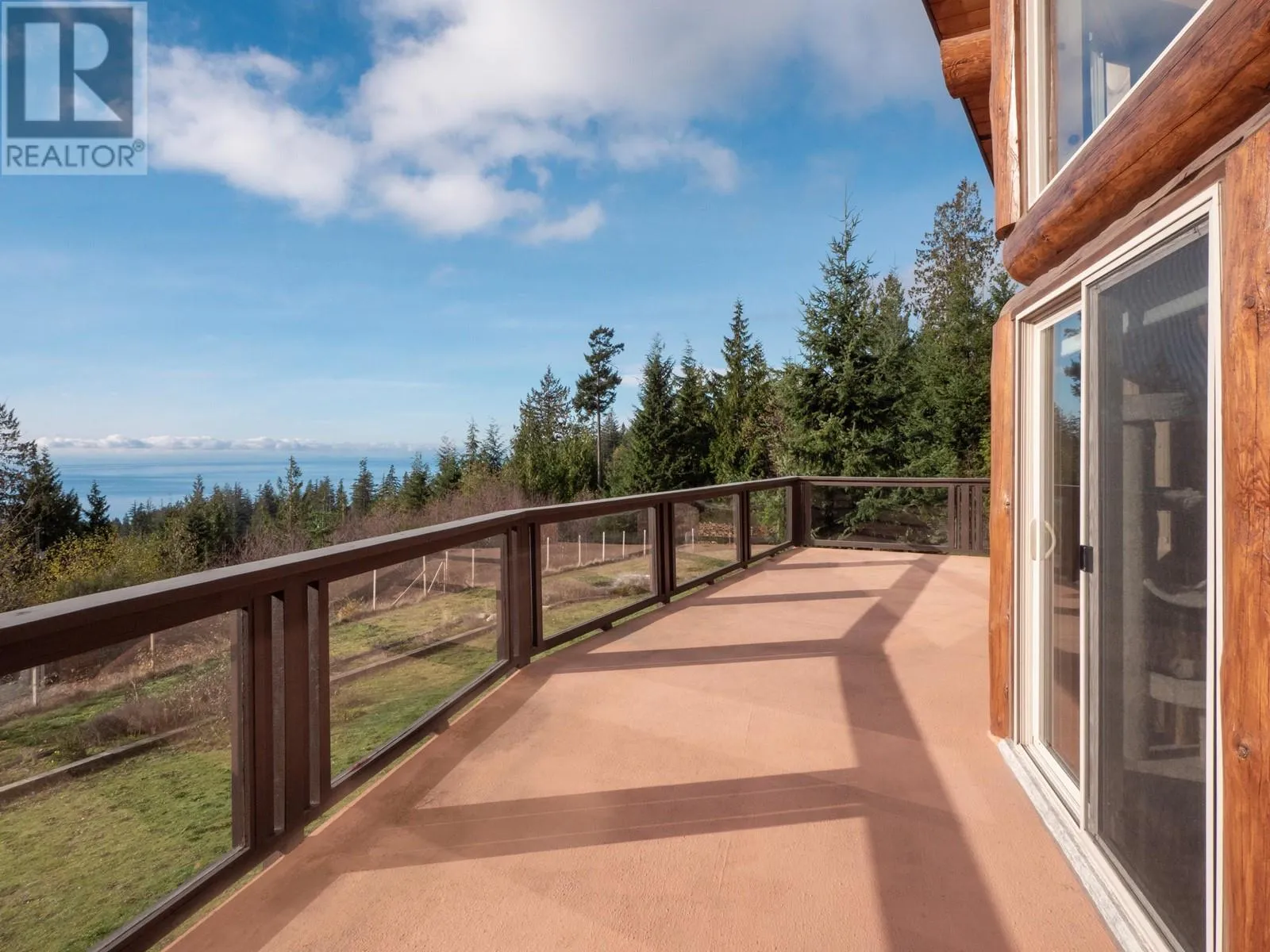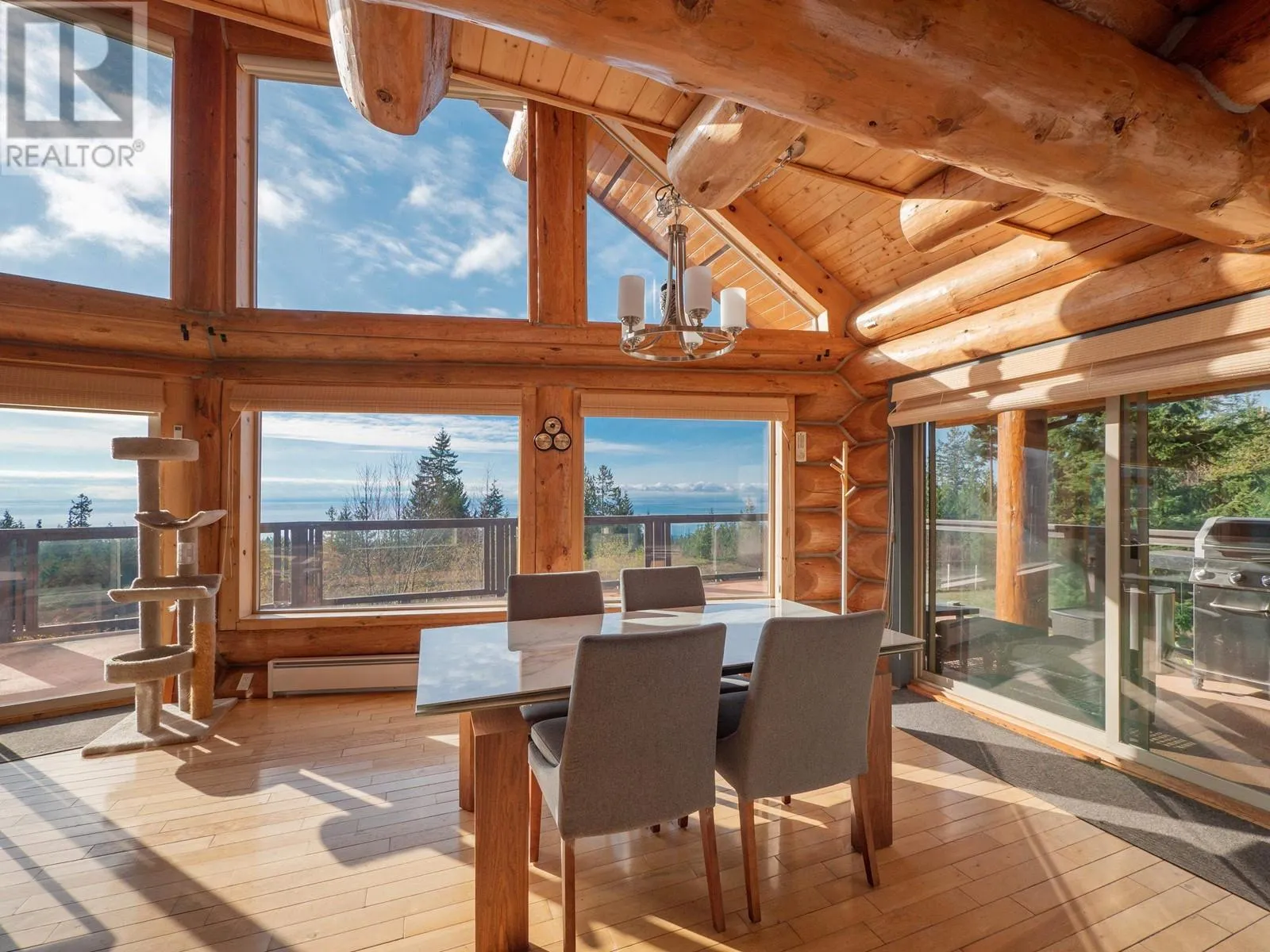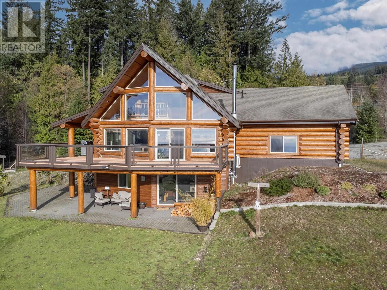 Welcome to this absolutely stunning hand-crafted log home that offers breathtaking panoramic ocean and island views from its large south-facing deck. Nestled on a spacious 4.65-acre property, this gem features a detached 2-car garage/workshop, multiple gardens, and convenient access to walking, biking, and ATV trails. The interior of this home is truly an entertainer's dream, with a generous open concept kitchen, living, and dining area on the main floor. Expansive windows bathe the home in natural light and showcase the incredible vistas. Numerous recent upgrades further enhance the overall appeal of this charming residence. Don't miss out on the opportunity to make this dream home your own - schedule a showing today! (id:27476)