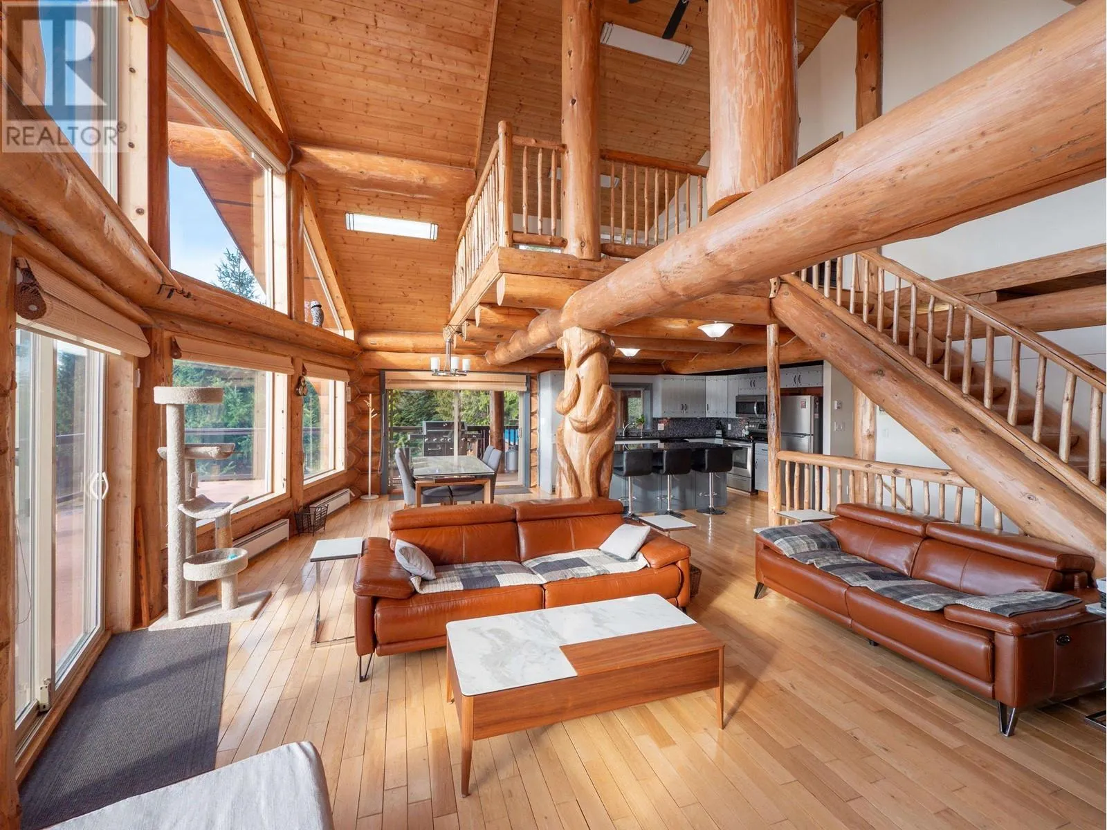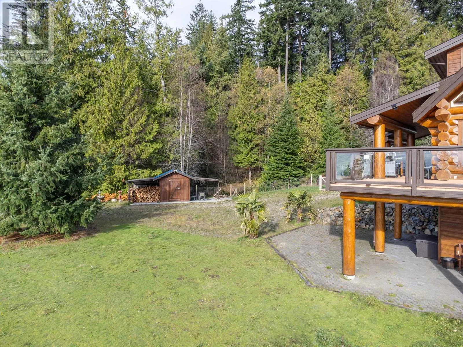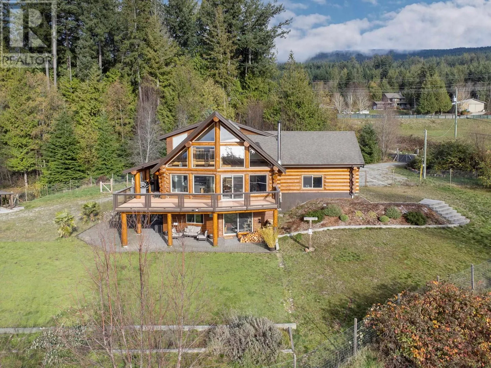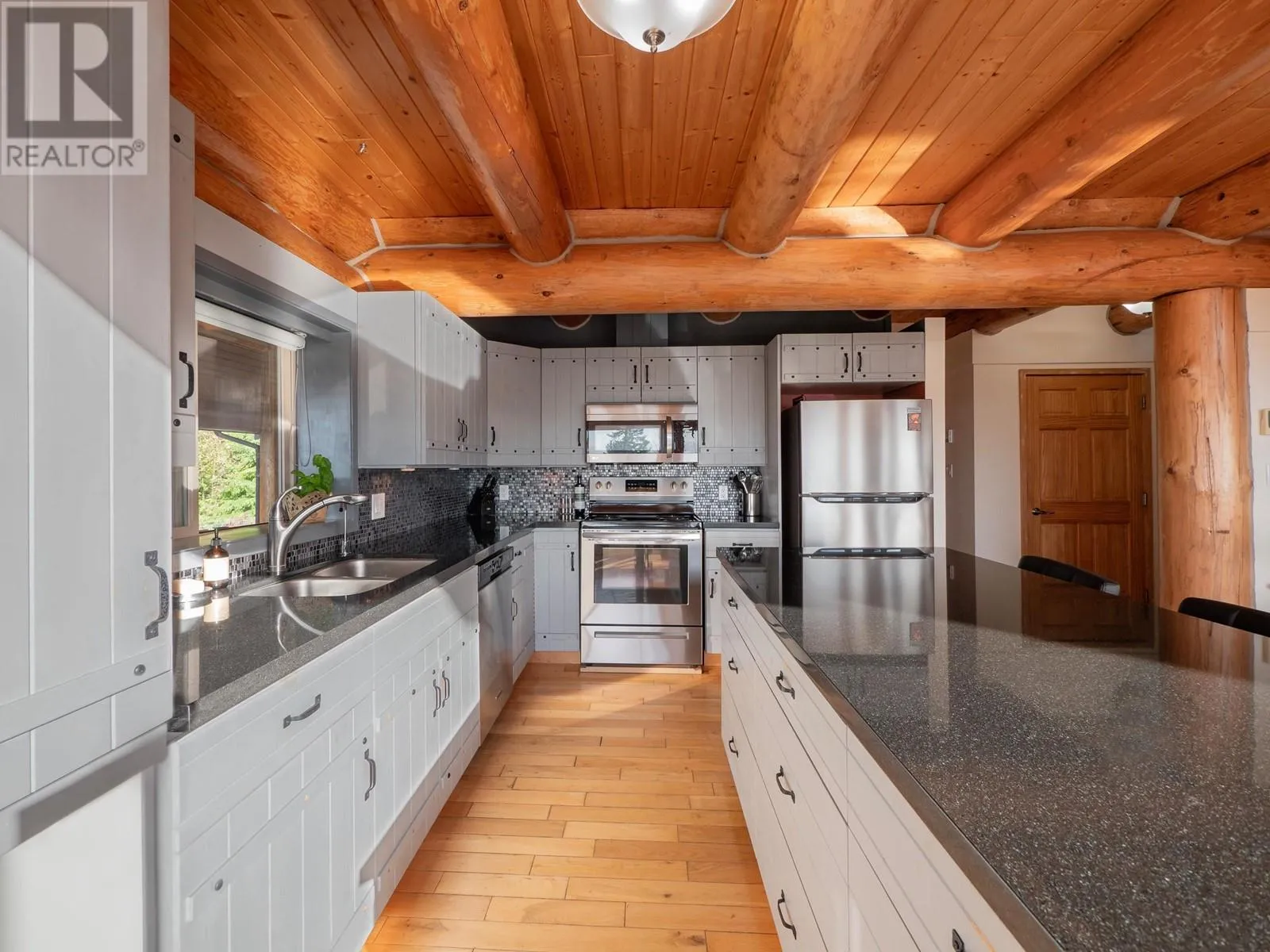 Welcome to this absolutely stunning hand-crafted log home that offers breathtaking panoramic ocean and island views from its large south-facing deck. Nestled on a spacious 4.65-acre property, this gem features a detached 2-car garage/workshop, multiple gardens, and convenient access to walking, biking, and ATV trails. The interior of this home is truly an entertainer's dream, with a generous open concept kitchen, living, and dining area on the main floor. Expansive windows bathe the home in natural light and showcase the incredible vistas. Numerous recent upgrades further enhance the overall appeal of this charming residence. Don't miss out on the opportunity to make this dream home your own - schedule a showing today! (id:27476)