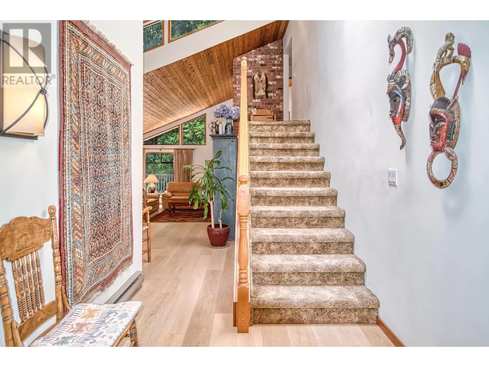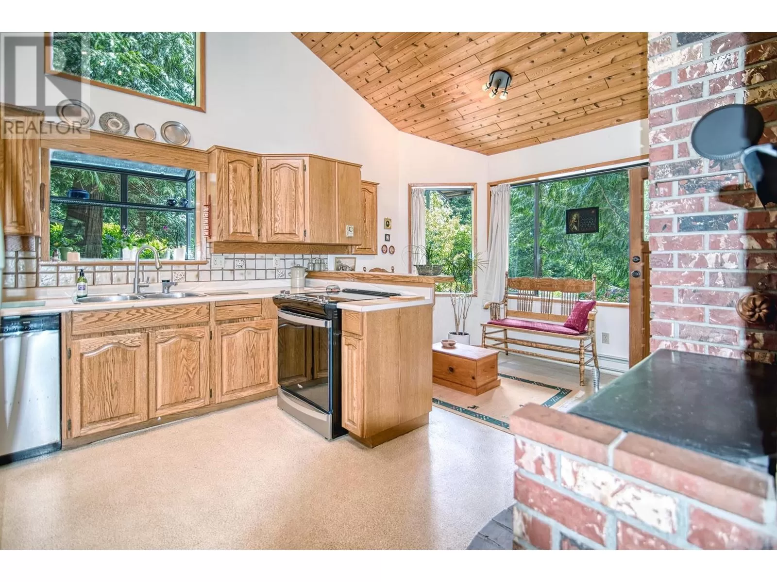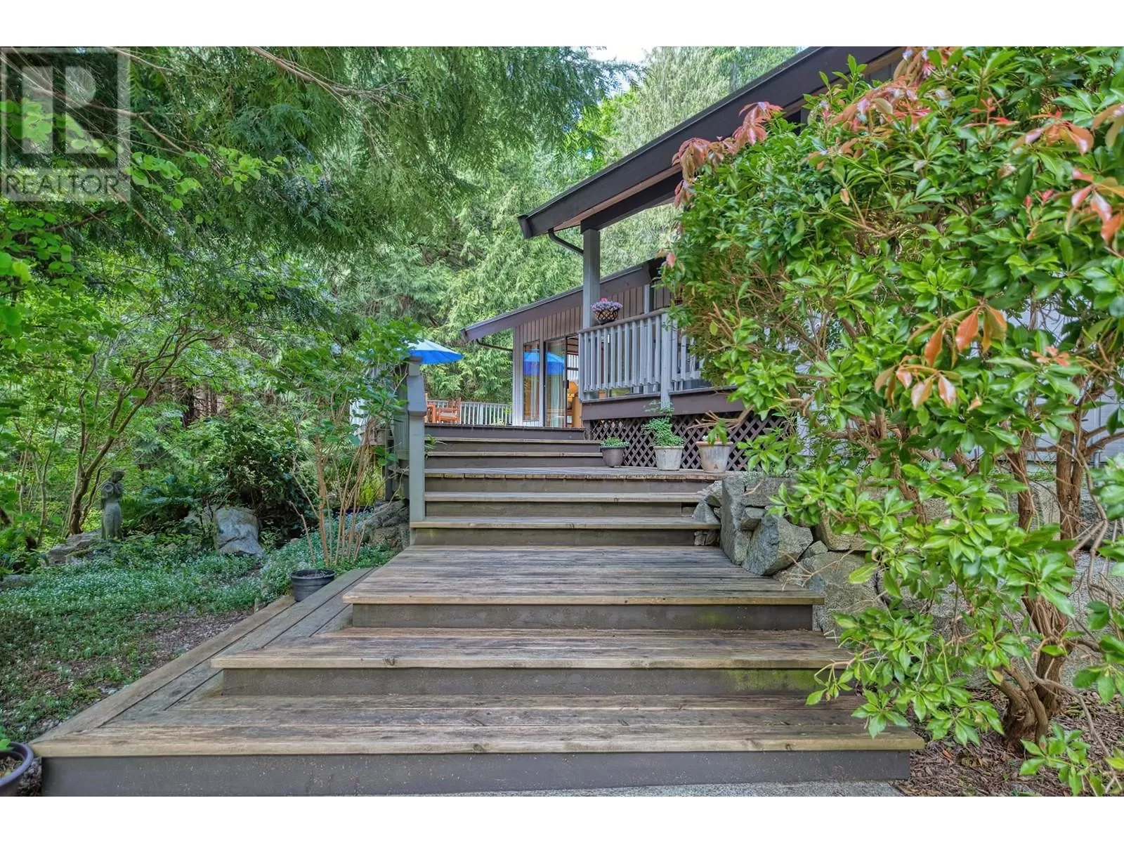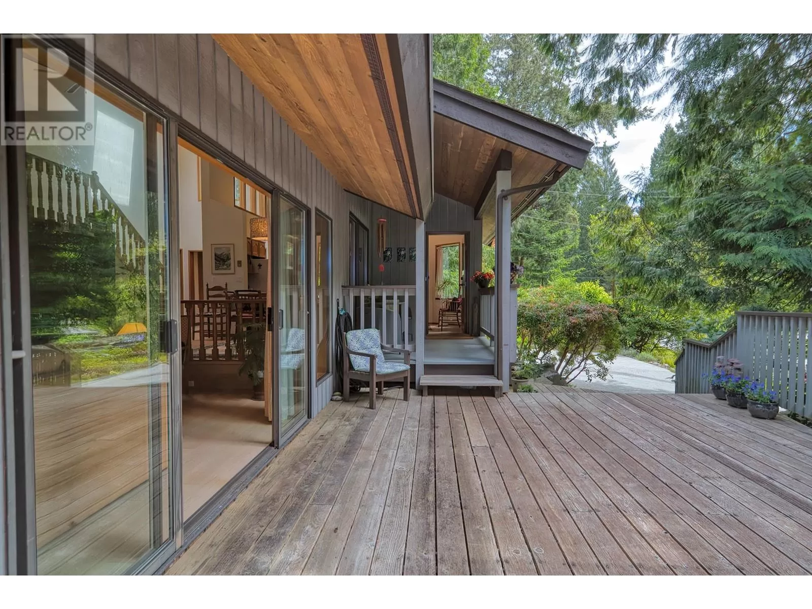 At one with the forests of Camp Byng, this private Zen-like retreat at the end of a cul-de-sac offers inspiration and healing. Mere steps away from a long stretch of beach, communing with nature brings nourishment to body and soul. Nights with a full moon sparkle with magic... Large windows bring the peace and tranquility of nature into the well-built and cared for home; a fully finished downstairs area has its own entrance. The huge front deck overlooks the forest with filtered ocean views. A small meditation room nestles amongst the trees. Endless possibilities abound for the use of the extensive garage, loft and attached covered area. The property is easily accessible with a 15 minutes commute to the Langdale ferry terminal and a short driving distance to schools and amenities. (id:27476)