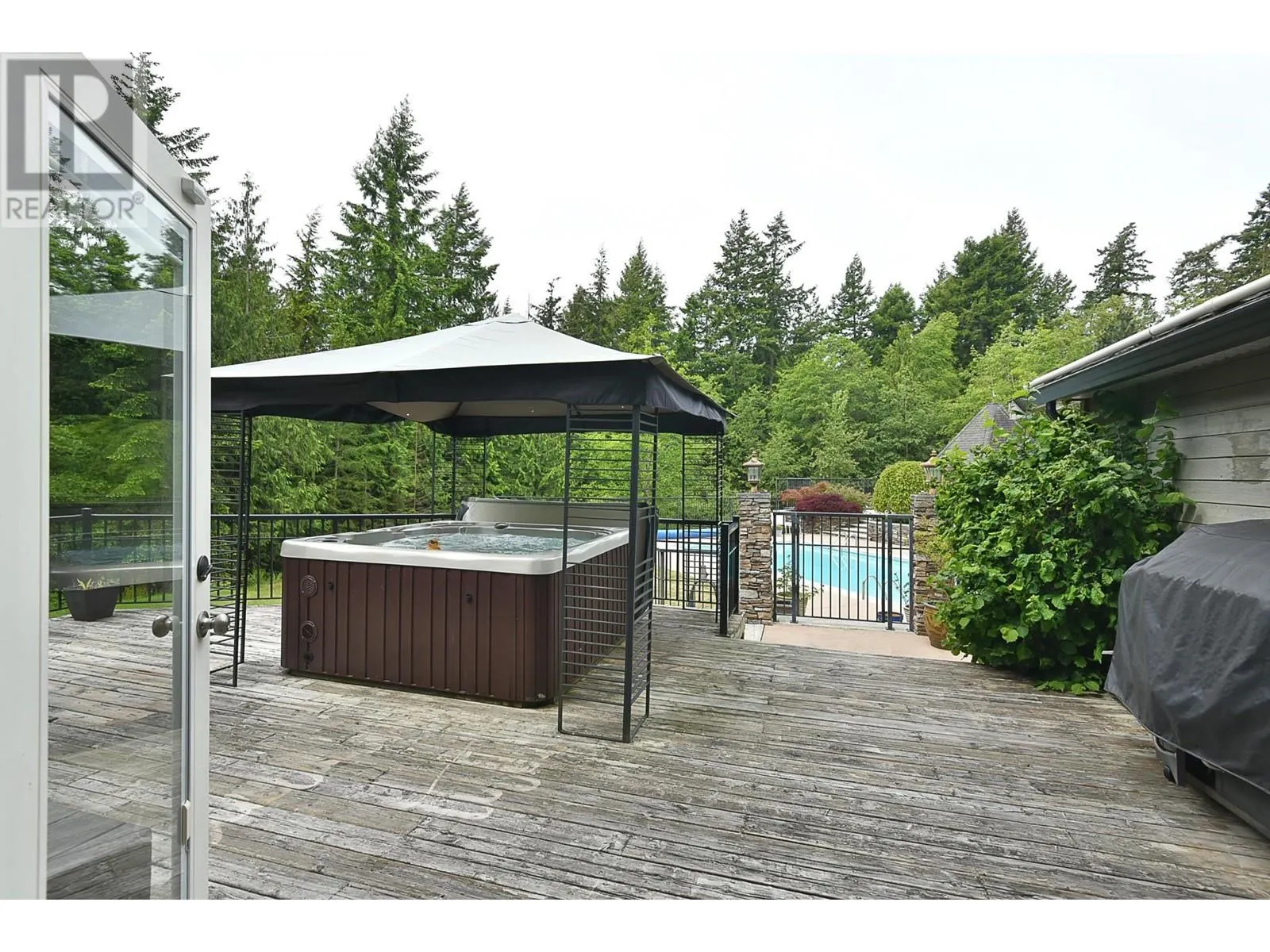 Tucked away on a 2.7 treed acreage, this exceptional property offers a spacious four bedroom home with a large covered front porch, solar-heated pool, hot tub and well appointed two bedroom cottage. The gourmet kitchen features a dual-fuel stove, double ovens, eating bar, pantry and breakfast area with bay windows overlooking the lush yard. Perfectly situated between Gibsons and Sechelt, within walking distance to the heart of the Creek and golf course. The cottage offers flexibility to welcome guests, host family or generate rental income. Entertain on the expansive pool deck with two gazebos, this is coastal living at its best. A great opportunity for multigenerational living with space and privacy for all. (id:27476)