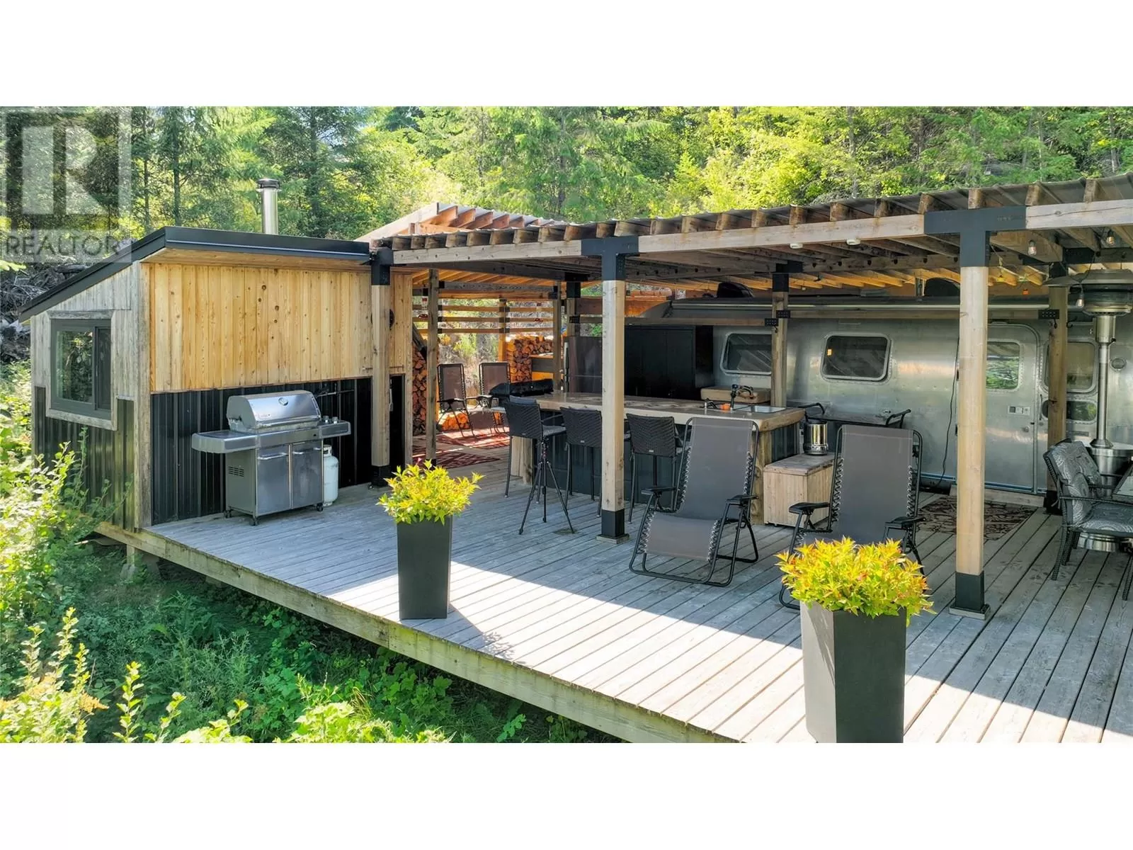 5 acres waterfront, Lower Arrow Lake getaway Looking for the perfect lakefront escape? This might be just what you need. With approximately 180 feet of sandy waterfront and a peaceful setting, itâs an ideal spot to relax on weekends or spend the whole summer. Swim, fish, or head out for a paddle from your own private dockâjust a short boat ride from Scottieâs Marina. After a dip in the lake, warm up in the wood-burning sauna or enjoy a refreshing cold plunge. Thereâs even an outdoor kitchen for cooking and dining with a gorgeous view of the lake. Whether you're here to unwind or explore, this place has it allânatural beauty, comfort, and space to breathe. Contact your REALTOR® today for the full details. Your lakeside getaway is waiting. (id:27476)