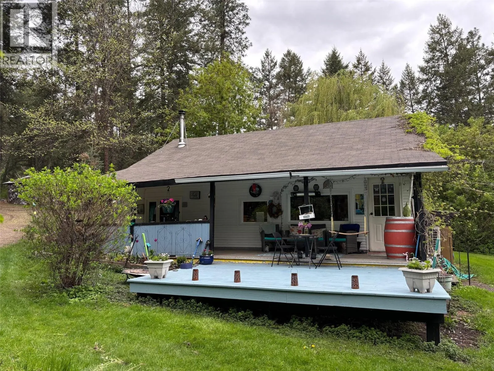 Get back to nature and enjoy this oasis. Located close to the Kettle River, this 5 acre parcel offers peace and tranquility. Enjoy the convenience of hwy frontage but the privacy of living in the country. This parcel is in the ALR but no regional zoning. It offers not one but two potential building sites allowing you to build your dream home and use the existing one as a guest home or studio. The mature trees and abundance of perennials, shrubs and garden space gives this property so much character and warmth. There are many outbuildings to utilize including a guest cabin. The 2 bed, 1 bath home offers a cozy space with character and charm. Some fencing required for animals but plenty of space if you're looking to bring some critters. Walking trail throughout the property to enjoy. Don't miss out on this one! (id:27476)