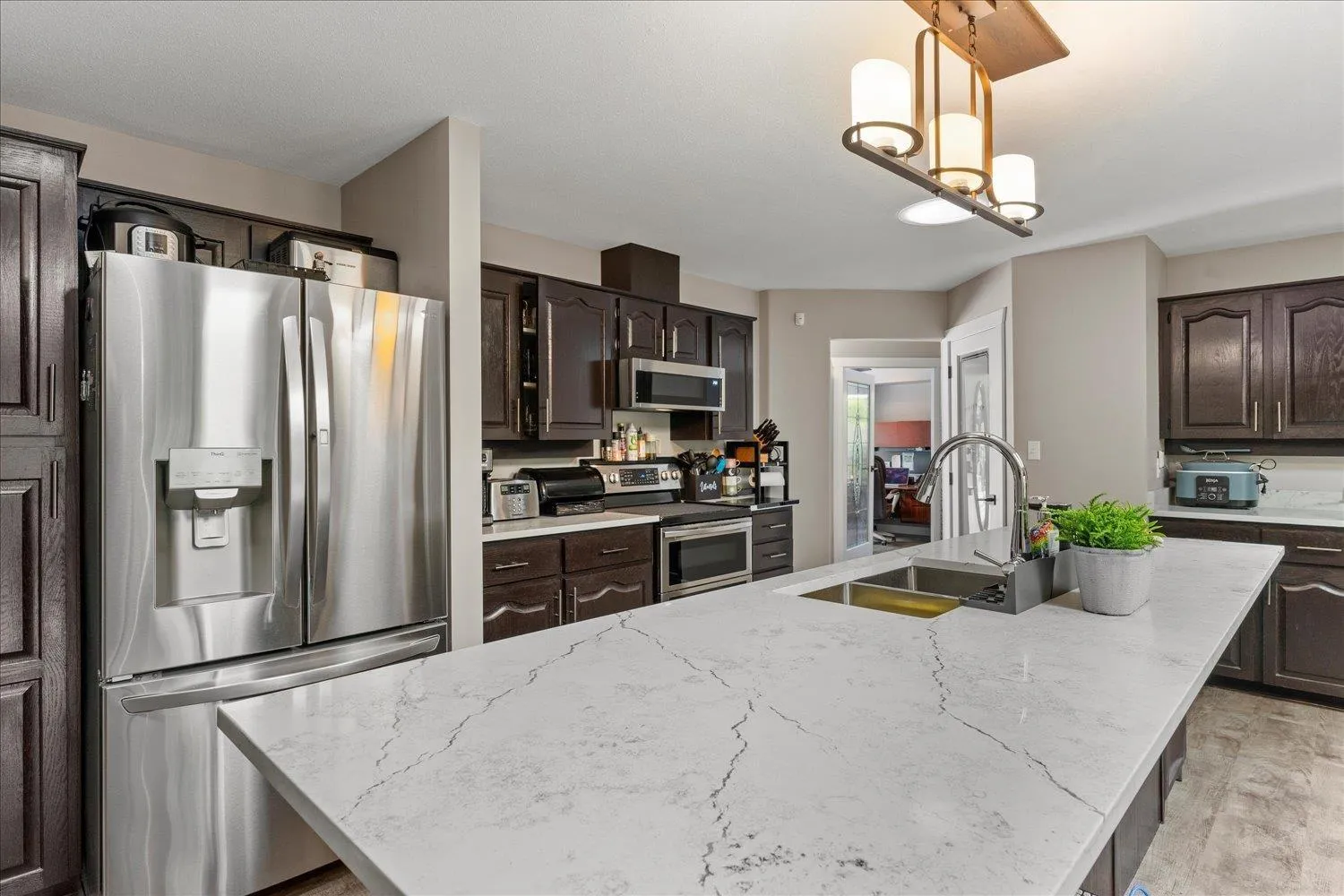 Experience luxury living at its finest on this sprawling 0.52 acre lot with a stunning 4600+ sqft rancher. 5 spacious bedrooms and 4 bathrooms, with an open-concept main level featuring over 2300 sqft of living space. A separate, unauthorized suite in the walk-out basement offers endless possibilities. Enjoy the perfect blend of indoor and outdoor living with an incredible in-ground pool, expansive patio, and private hot tub. The detached 30x50 shop is a tradesperson's or hobbyist's dream, complete with 2 roll-up doors, a mezzanine and a bathroom. Tasteful updates throughout, including a sleek open kitchen with quartz countertops and stainless steel appliances. Heat pump and central air conditioning ensure year-round comfort. A true entertainer's paradise! Call now and make it yours! * PREC - Personal Real Estate Corporation (id:27476)