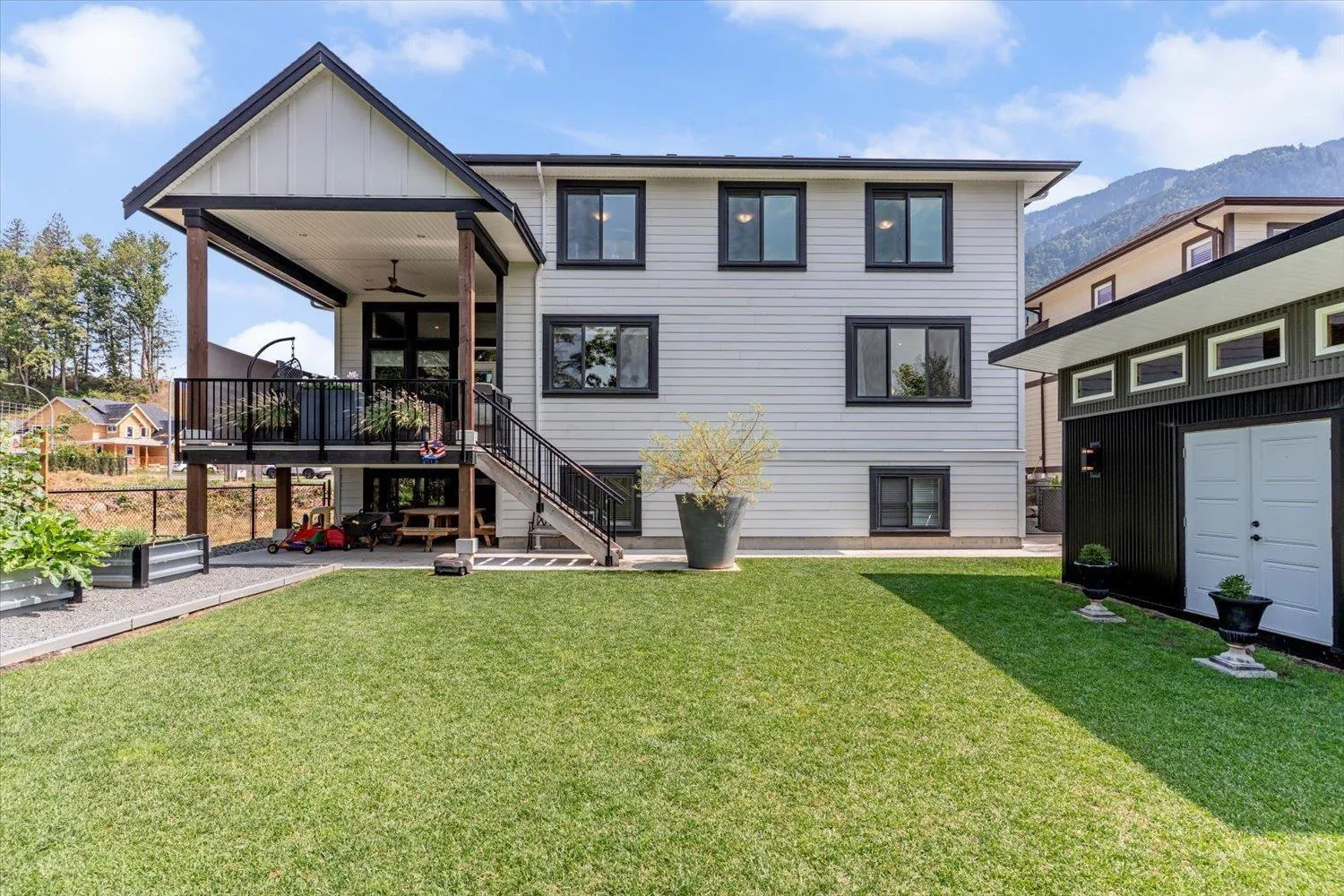 Welcome to your dream home in the former "famous" Minter Gardens! This 6-bed, 4-bath home offers the perfect family layout with an open-concept kitchen and living area featuring high ceilings and abundant natural light. The main floor includes a spacious master bedroom, with 3 additional bedrooms upstairs. The fully finished basement boasts 2 more bedrooms, a large rec room, and is roughed in for a wet bar or a possible in-law suite. Enjoy your large, private backyard from the covered balcony. Plus, a brand-new 10x20 shop and greenhouse add to the appeal! Close to golf, parks, schools, and easy highway access. Book your viewing today! (id:27476)