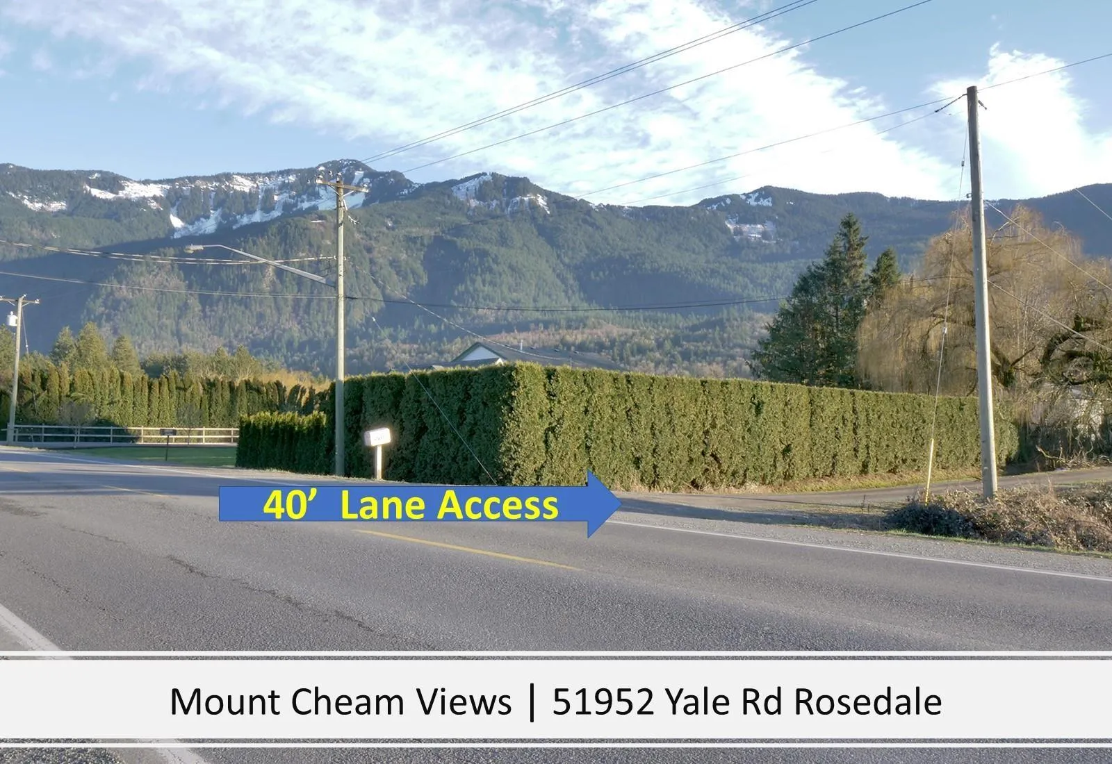 Watch the Video! This is a private 6 acres of paradise. Level, fenced with 4 acres in tall mature trees and 2 acres cleared. We count 25 cedar trees which can sell for up to $4,000's each. Great views of Mt.Cheam from windows and the large back patio. With 1,457 sqft on the main floor and 1,254 down we get 2 bedrooms up and 2 down. A 14X40 addition to the house creates a beautiful sunroom or a 3rd bedroom upstairs, a large shop downstairs. The lot is 250' wide,1,234' deep and has a 40' wide lane access which situates the home 250' back from Yale rd. Excellent private location (id:27476)