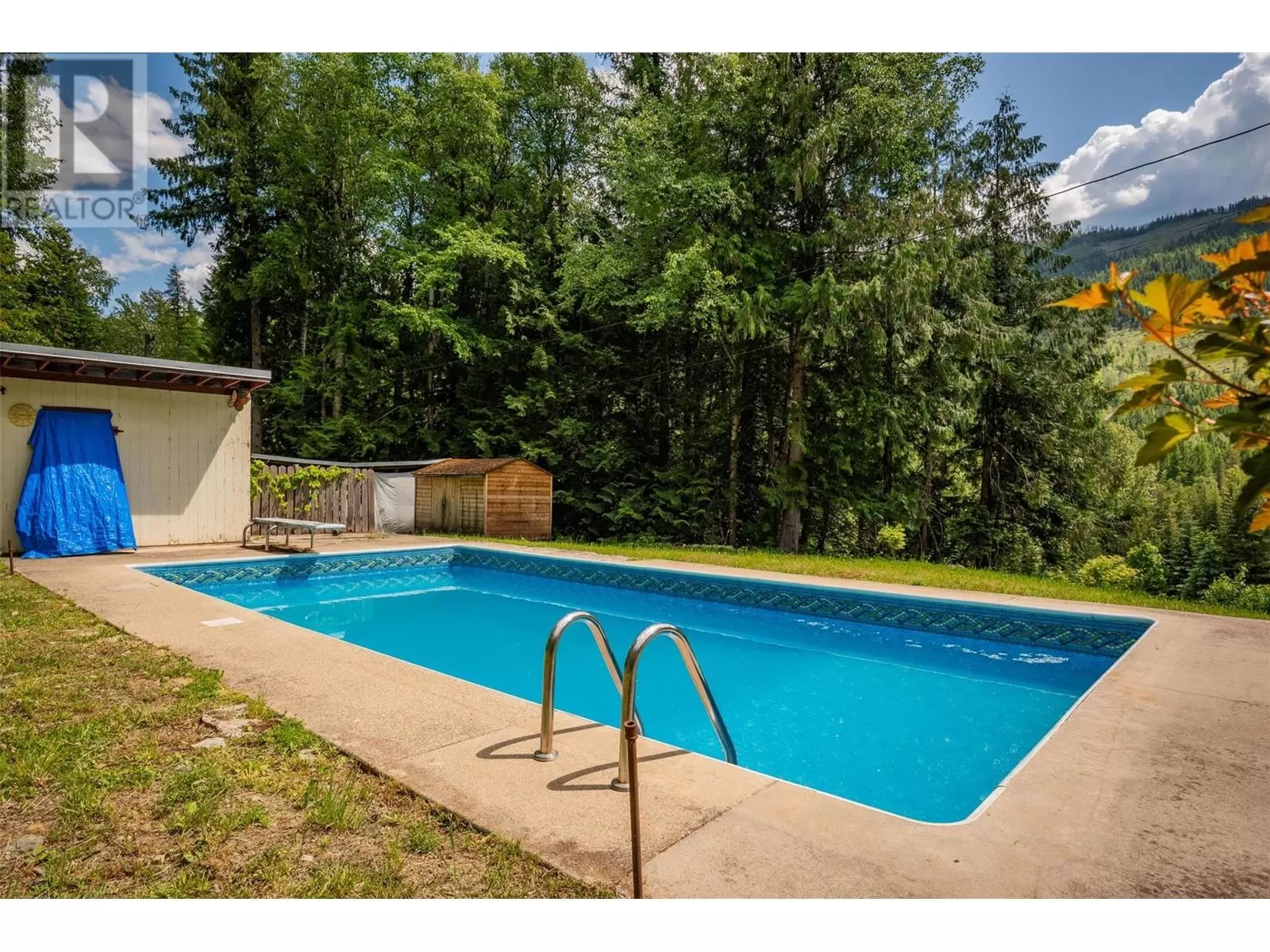 What an incredible property to raise a family on! This phenomenal package offers a 4 bed, 2.5 bath meticulously maintained, sprawling family home with a double car garage, 4.14 acres of land with a perfect mix of open pastures and shady forest, a 20 x 40 shop and a pool! Entering into the home you are welcomed with a large entry way that offers plenty of closet space. Hang a right to the spacious living areas which include a beautiful sunken living room with a gorgeous brick fireplace and large windows to watch the resident deer and stunning sunsets from. Across from the living room is a large family/TV room with patio doors to the backyard. The spacious dining room is ready to host all the family gatherings and the massive kitchen ensures there is enough room for everyone to help with dish duty! Off the garage is a large mud room and half bath with laundry. Hang a left from the main entry and youâll hit the nicely updated bathroom, large primary bedroom with patio doors to the backyard and a full ensuite. 3 more large bedrooms are down the hall and a huge pantry/storage area. The partial basement is unfinished with a large wood storage area and utility room hosting the electric/wood combo forced air furnace, hot water tank and the well pressure tank. The remainder is crawl space which offers additional storage. The house is serviced with a 200 amp panel with a sub service going to the pool house. Shop has separate service and meter. This incredible property truly does offer it all for a family ready to make those country life memories. Located just 10 minutes from Fruitvale and Salmo and 20 minutes to Castlegar. Call your REALTOR® today to set up your personal tour. By appointment only please. NO DROP INS. (id:27476)