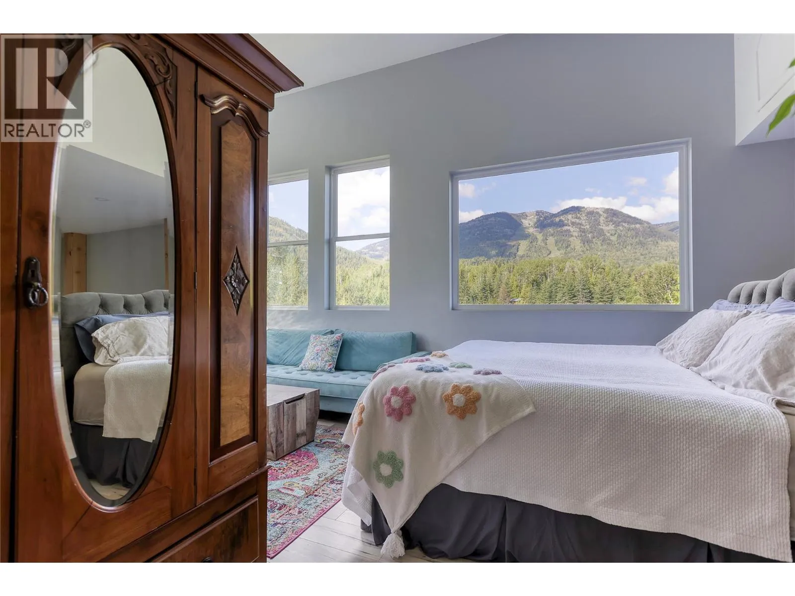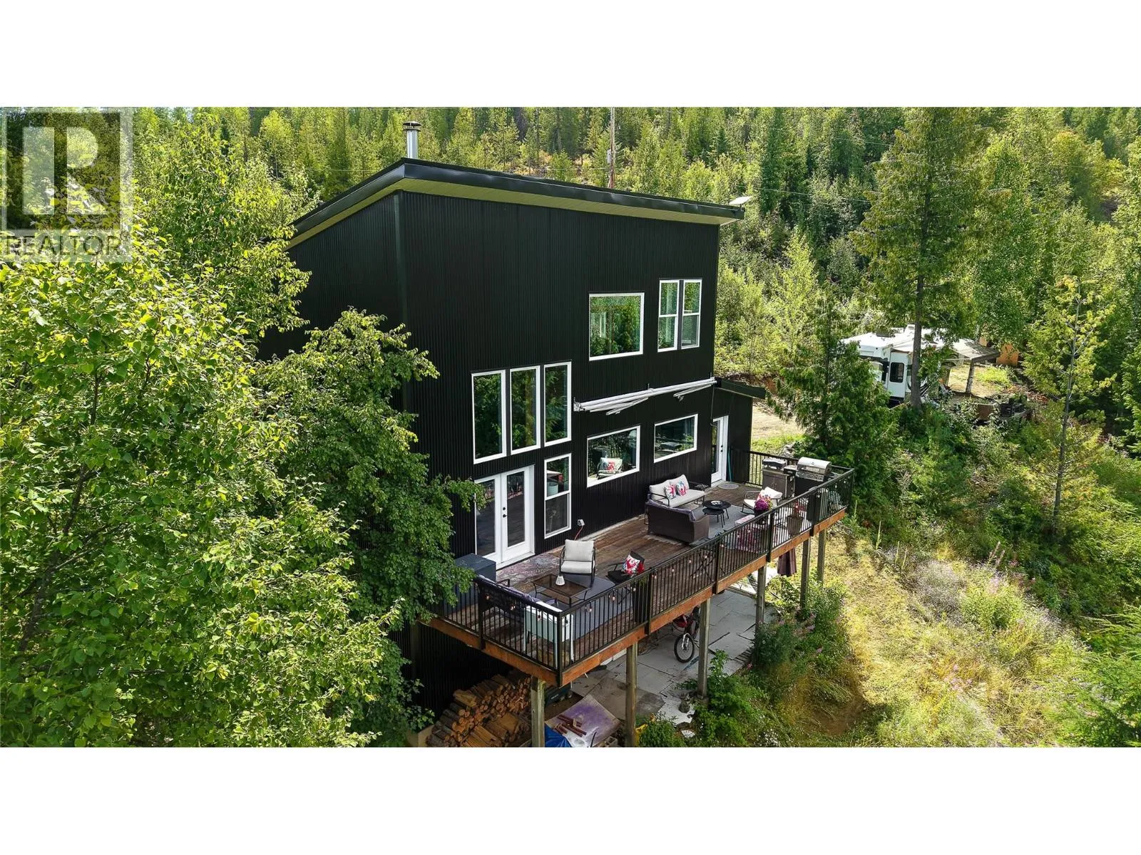 Is there a better view in the Rossland area? This stunning 5+ acre property offers an unparalleled opportunity to live in your own mountain playground free from congestion, strata fees, and rising city taxes. With hydro, sewer, and water (some of the best drinking water you'll find!) installed and ready for a future 2400+ sq ft dream home, the prepwork is done. In the meantime (or permanently) enjoy life in the thoughtfully designed 2 bed, 2 bath home. Built with quality and intention, this residence is ideal for smaller families, professional couples, or anyone seeking low-maintenance, high-comfort mountain living. The home features soaring ceilings, expansive windows framing spectacular views, a custom walk-in shower, and artisan wood details thru-out including staircase and trim milled locally. A 420 sf view deck is perfect for hosting friends, or just pretending you're going to and keeping those jaw-dropping views of Red and Granite Mountain all to yourself. Cozy up with the wood stove, stay cool with AC, enjoy the efficiency of a hybrid H20 heater, electric furnace, and fire-smart metal roof and siding. The 350 sf mechanical room is self-contained with ground-level walk-out access, perfect as an office, man cave, or ski tuning workshop. The land is a beautiful, natural lot with a year-round creek, machine-built biking and GT trails that connect with KCTS, and a full RV pad with 50-amp service and sewer. âthe potential here is rare and remarkable. (id:27476)
