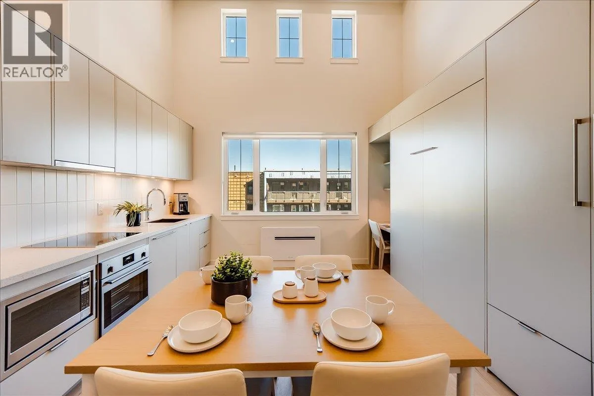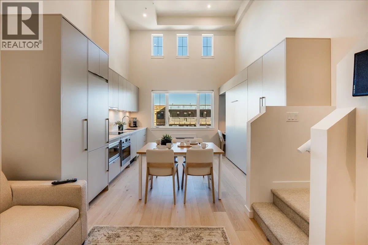 A loft at The Crescent! Welcome to this stylish newly built loft offering contemporary comfort and incredible mountain views. Designed with versatility in mind, the home comfortably sleeps six with a Murphy bed, hide-a-bed sofa, and an upstairs lofted bedroom. Featuring 1.5 bathrooms, tonnes of well thought out storage, and a bright open layout, this unit is move-in ready and fully equipped with furniture, linens, and kitchen items. This property is approved for short-term rentals and with the options for onsite management, making it an ideal turnkey investment or vacation retreat. Enjoy the convenience of private ski and bike storage, plus access to exceptional building amenities including a gym, resident lounge, and outdoor BBQ area. Experience low-maintenance mountain living with flexible use, and every comfort included. All you need is your toothbrush and skis! (id:27476)