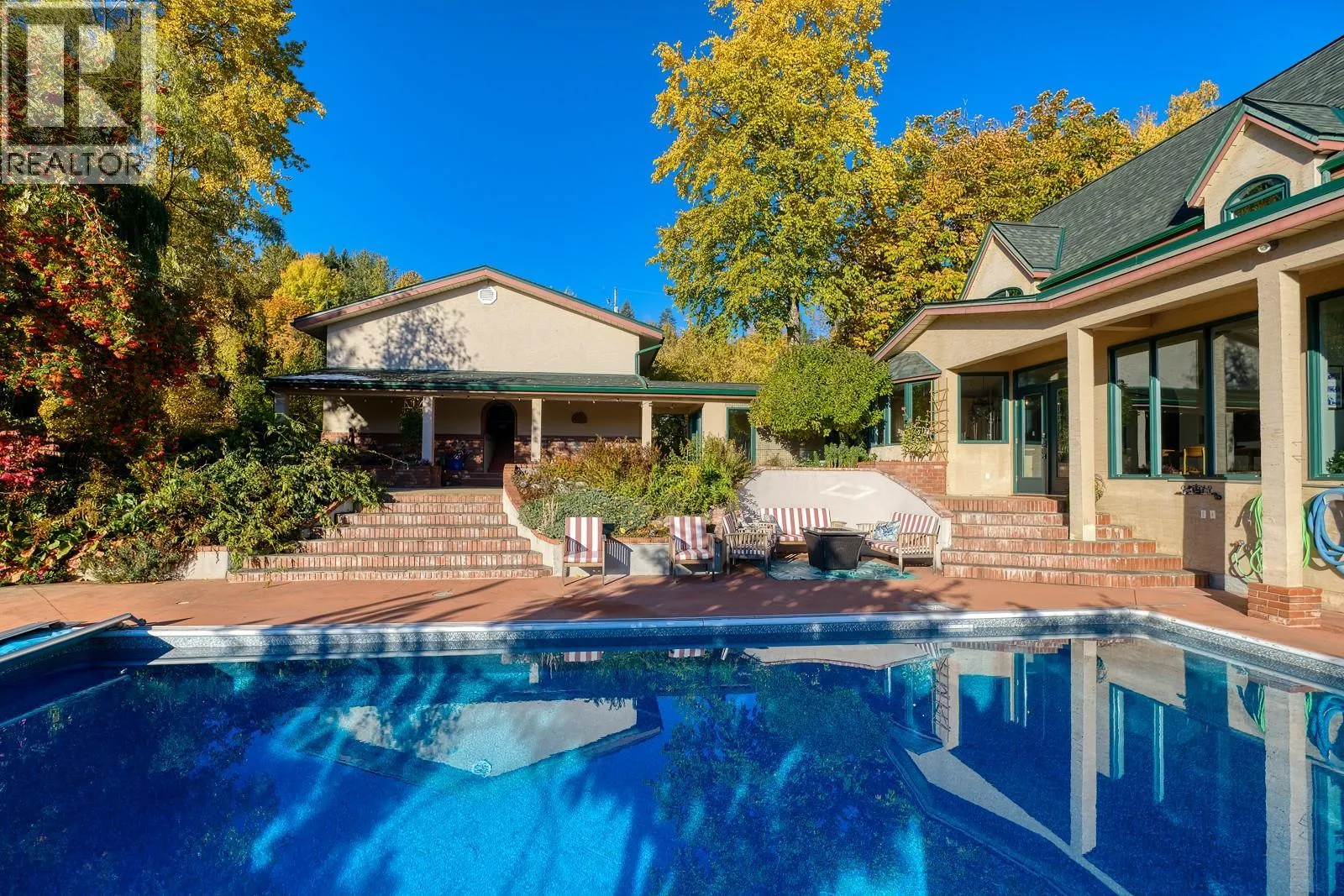 In the heart of Rosslandâs coveted Happy Valley, this extraordinary 7.5+ acre estate offers a rare blend of luxury, privacy, and nature. Surrounded by mature landscaping, the custom-built home showcases an open, sun-drenched space with views from every window, creating a seamless connection to the outdoors and Rosslandâs mountain lifestyle. Step through the grand entrance into a living space designed for both family moments & large-scale entertaining. The primary suite is a sanctuary with deck, fireplace, and a remodelled ensuite. The lower level features a walk-out & updated in-law suite, for extended family or friends. Outside, the private in-ground pool & hot tub gathering place promotes outdoor entertaining and relaxation after long days of recreation. A triple carport / garage plus a detached shop with 2-bedroom rental suite above (currently rented) provide ample parking plus income. Recent upgrades elevate this property to a new standard of comfort and efficiency â featuring solar panels, an EV charger, dual septic systems, newly insulated roofs, updated gutters, a 200 amp electrical panel, boiler, and heat pump, plus a refreshed pool liner and hot tub for ultimate relaxation. With excellent sun exposure, peaceful seclusion, and panoramic valley views, this Happy Valley masterpiece captures the essence of the ultimate Rossland lifestyle; a property that simply cannot be replicated at this value. Inquire with your REALTOR for the feature sheet with all the details. (id:27476)