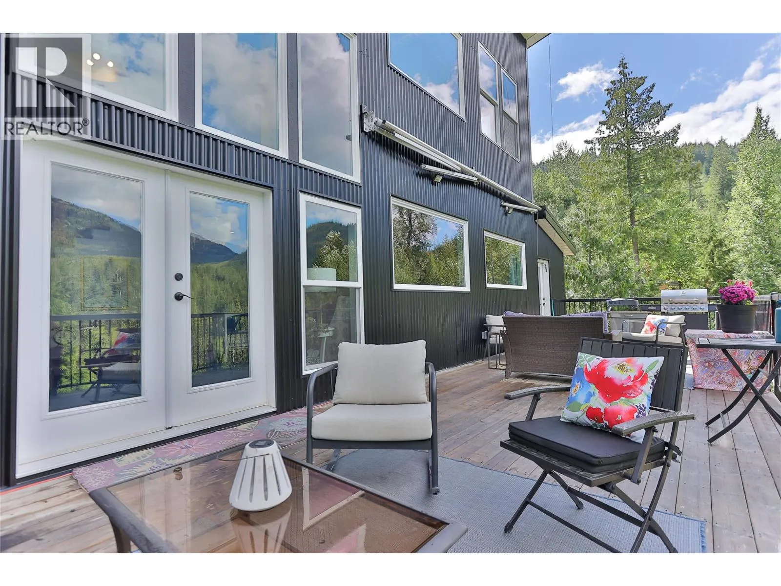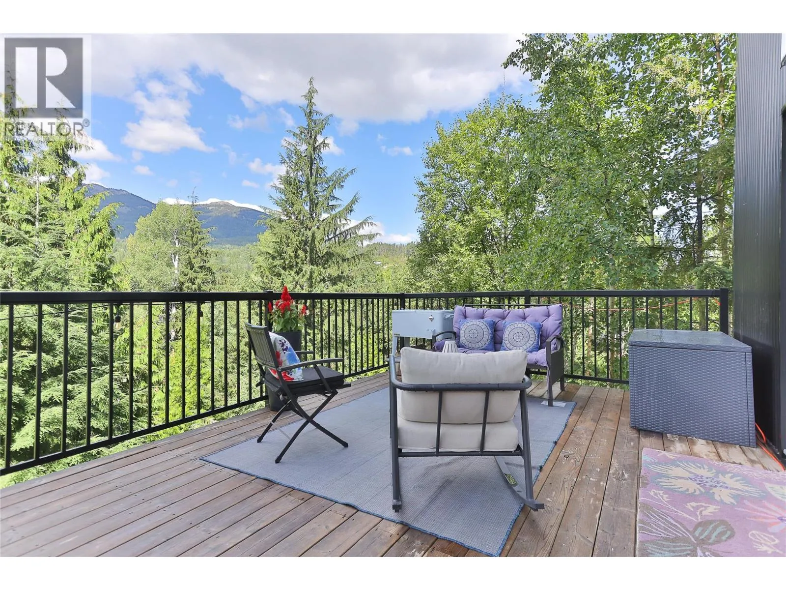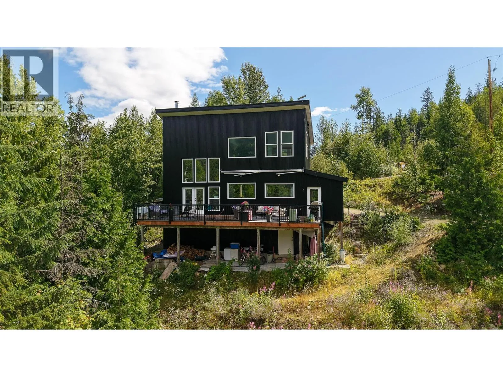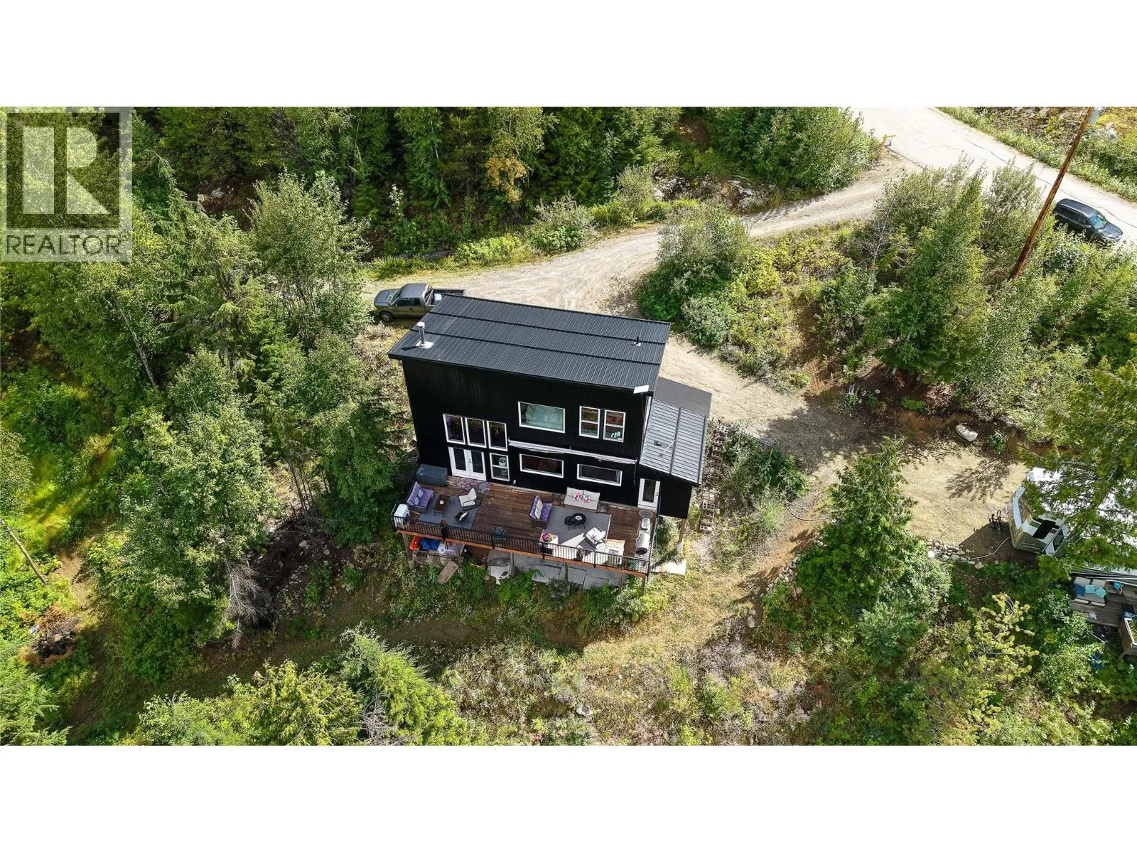 Is there a better ski-season view in Rossland? With sweeping views of RED Mountain Resort and Granite Mountain, this remarkable 5 acre property offers a true mountain lifestyle just a 3 minute drive to the lifts, all without strata fees, congestion, or rising city taxes. At the heart of the property is a thoughtfully designed 2-bedroom, 2-bath home, built with quality, intention, and low-maintenance living in mind. Soaring ceilings and expansive windows capture breathtaking alpine views, while custom finishes add warmth and character throughout, including a walk-in tiled shower and locally milled artisan wood details in the staircase and trim. Step onto the 420 sq ft view deck, the perfect place for après-ski gatherings or quiet mornings watching the mountain come to life. Cozy up by the wood stove, stay comfortable year-round with air conditioning, and enjoy the efficiency of a hybrid hot-water system, electric furnace, and fire-smart metal roof and siding. The land itself is a private mountain playground, featuring a year-round creek, machine-built biking and GT trails that connect directly with KCTS, and a full RV pad with 50-amp service and sewer. As an added bonus, the property already has hydro, sewer, and water in place for a future 2,400+ sq ft home should you wish to expand down the road. An exceptional opportunity to live minutes from the lifts while enjoying space, privacy, and unforgettable views. (id:27476)