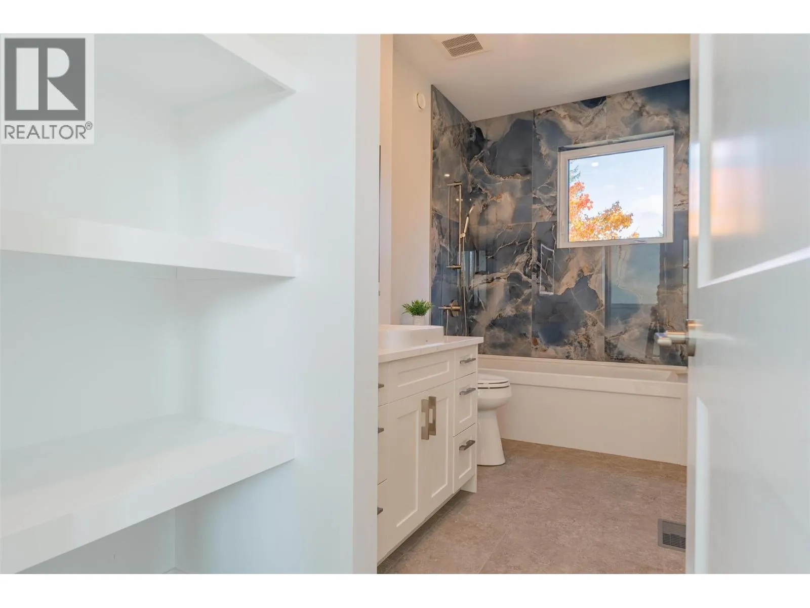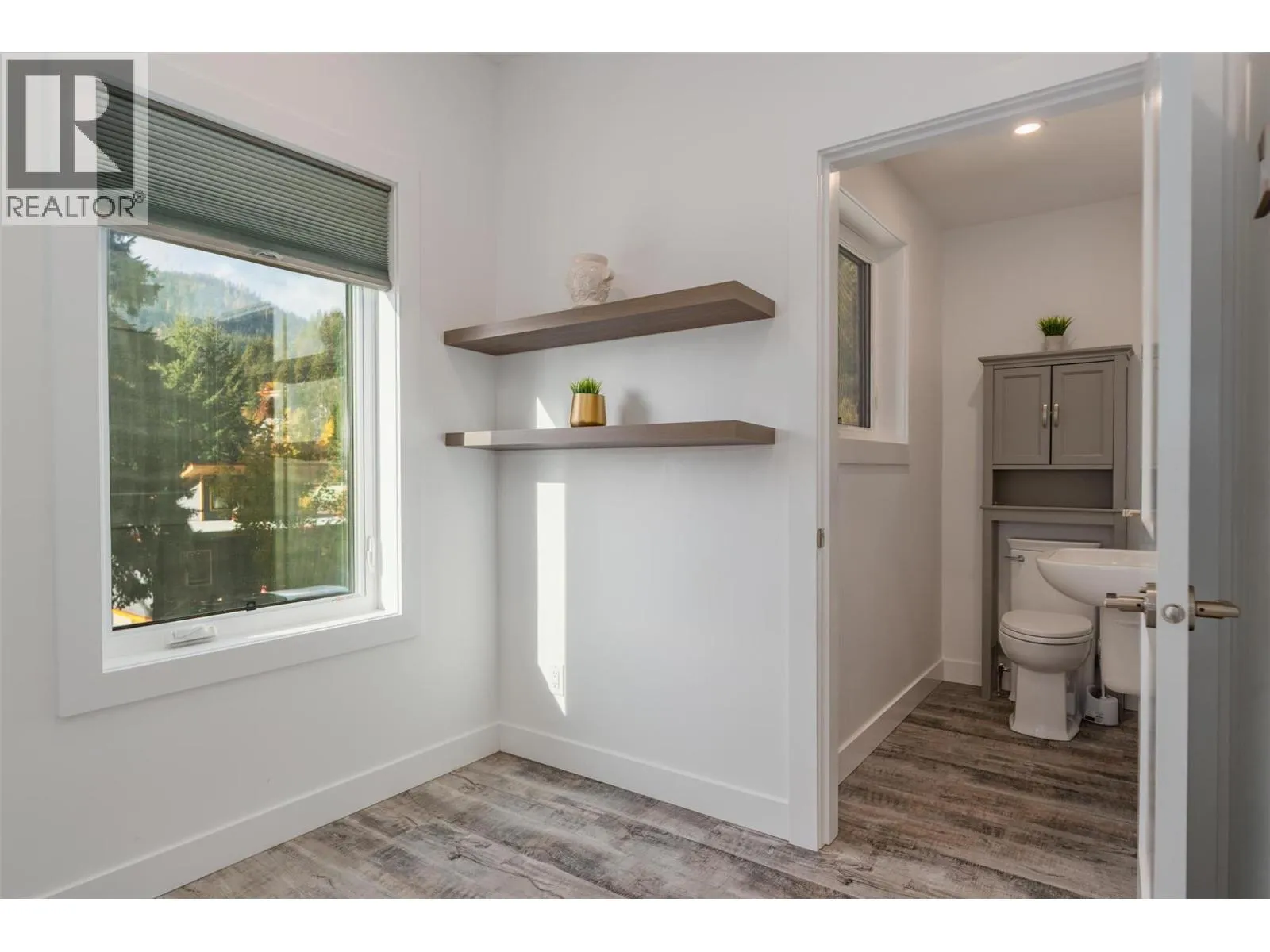 Welcome to this beautiful custom-built home in desirable Upper Rossland, perfectly located for year-round adventure. Just minutes from Red Mountain Resort, hiking and biking trails, golf, and downtown Rossland, this home offers the ultimate Kootenay lifestyle. The bright upper level features a spacious bedroom, a full bathroom with custom shower, and a luxurious primary suite complete with a walk-in closet and spa-inspired ensuite with dual sinks and a stunning walk-in tiled shower. The main living area includes a grand living room with a stylish feature wall and a modern kitchen with a large eating island, ample cabinetry, and sleek countertops. Step onto the private deck to enjoy scenic views of Red Mountain and the fully fenced yard below. The main level offers a versatile entry and family or recreation space, an additional full bathroom, laundry, utility room, and direct access to the attached garage. Thoughtful landscaping with natural rock walls and privacy fencing completes this move-in-ready home, located close to schools and amenities. (id:27476)
