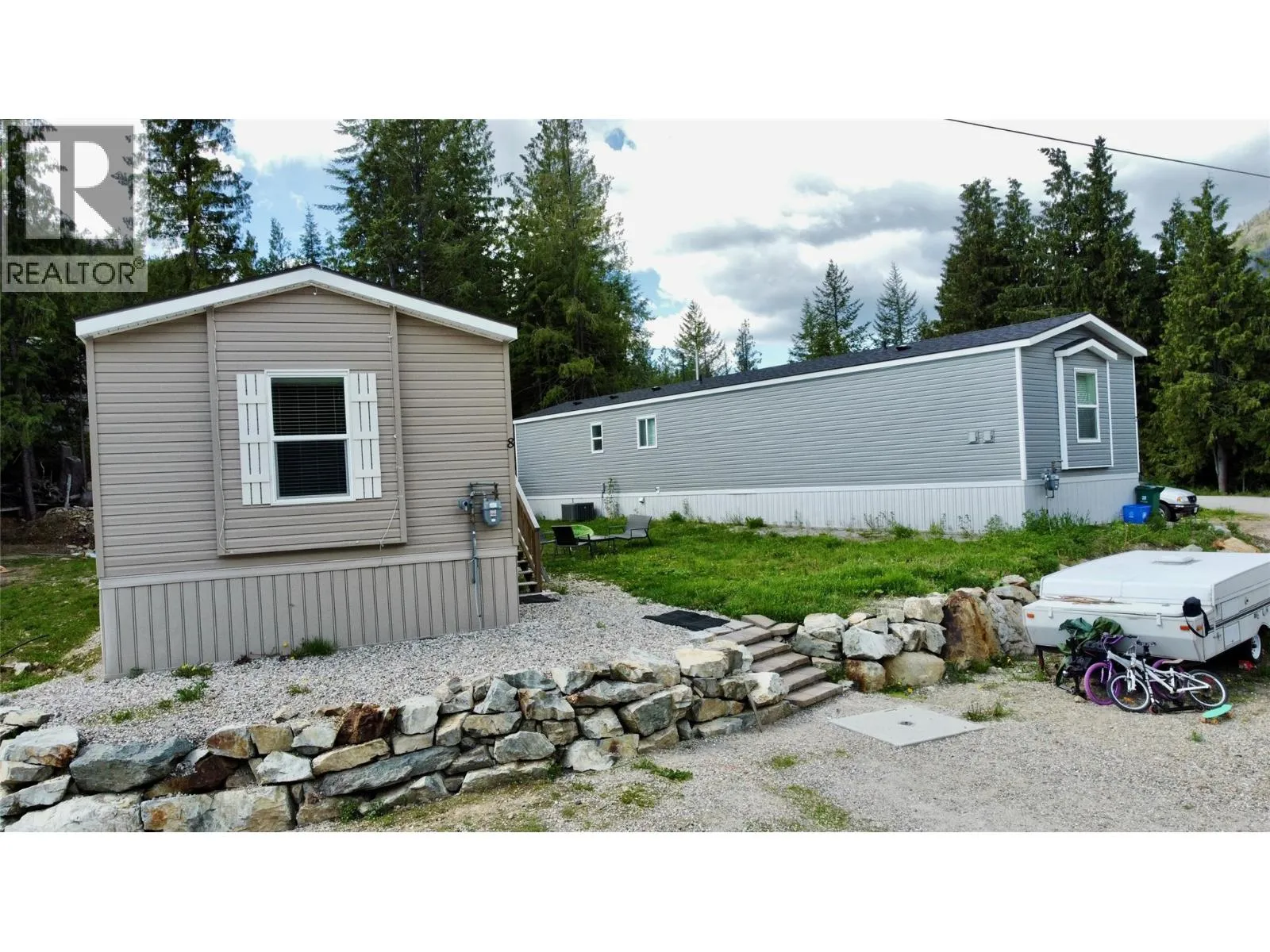 This 2021 Minestone manufactured home offers 3 bedrooms, 2 bathrooms, and a bright, spacious layout designed for comfortable living. Thoughtfully built with energy efficient windows and an engineered roof for snow load, this home is built to stand up to the Rossland seasons. Enjoy open concept living space featuring vaulted ceilings, a central island kitchen, and durable laminate flooring throughout. The primary suite includes a full ensuite, with two additional bedrooms and a bathroom located at the opposite end for privacy. Located minutes from downtown Rossland, youâll have biking and hiking trails at your doorstep, Red Mountain Resort just five minutes away, and quick access to one of Canadaâs most scenic modern golf courses. Additional features include insulated skirting for a warmer crawlspace, high-quality finishings, and the peace of mind that comes with remaining home warranty coverage. Situated in a mobile home park with a monthly pad rent . A great opportunity to enter the Rossland market. Schedule your showing today! (id:27476)