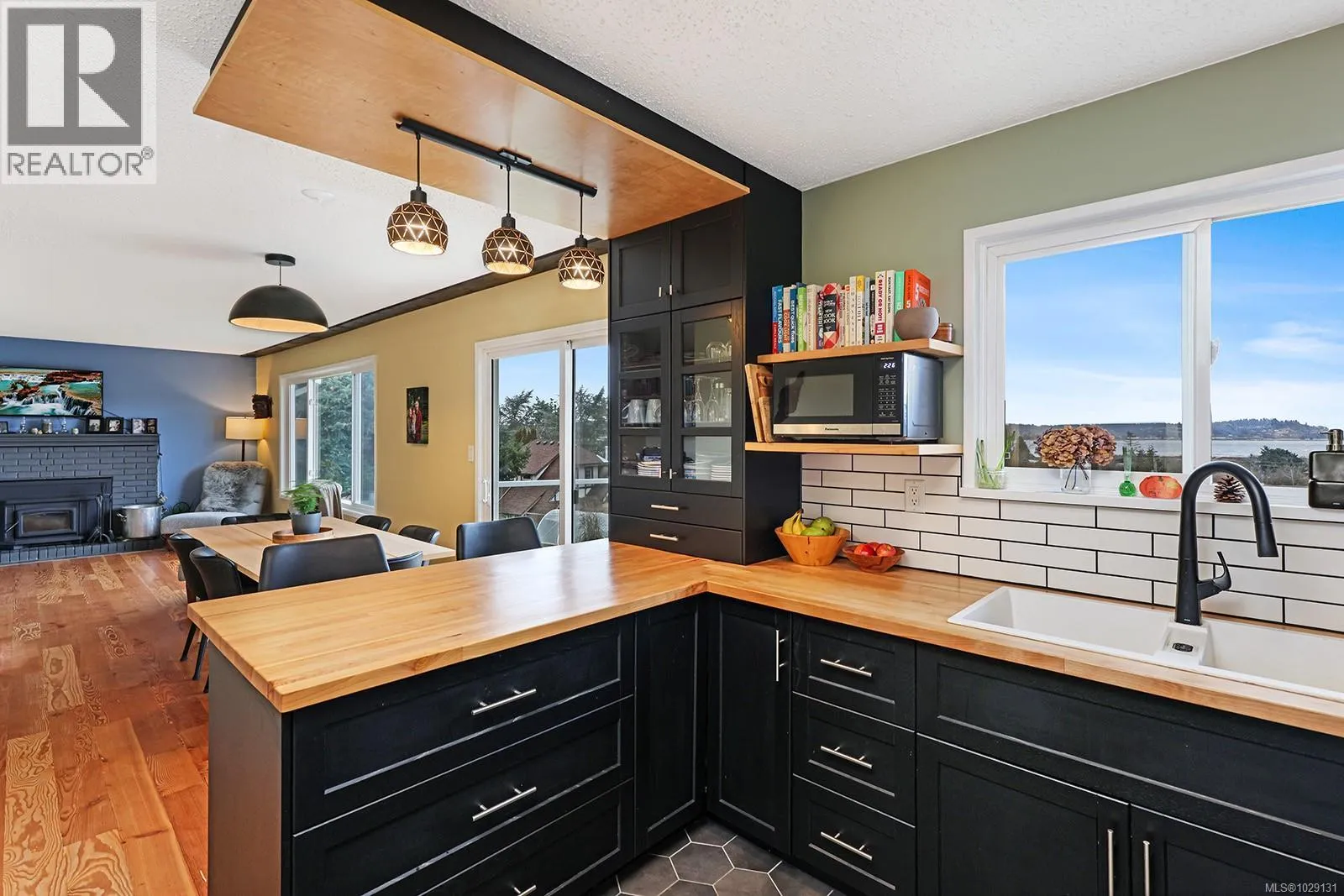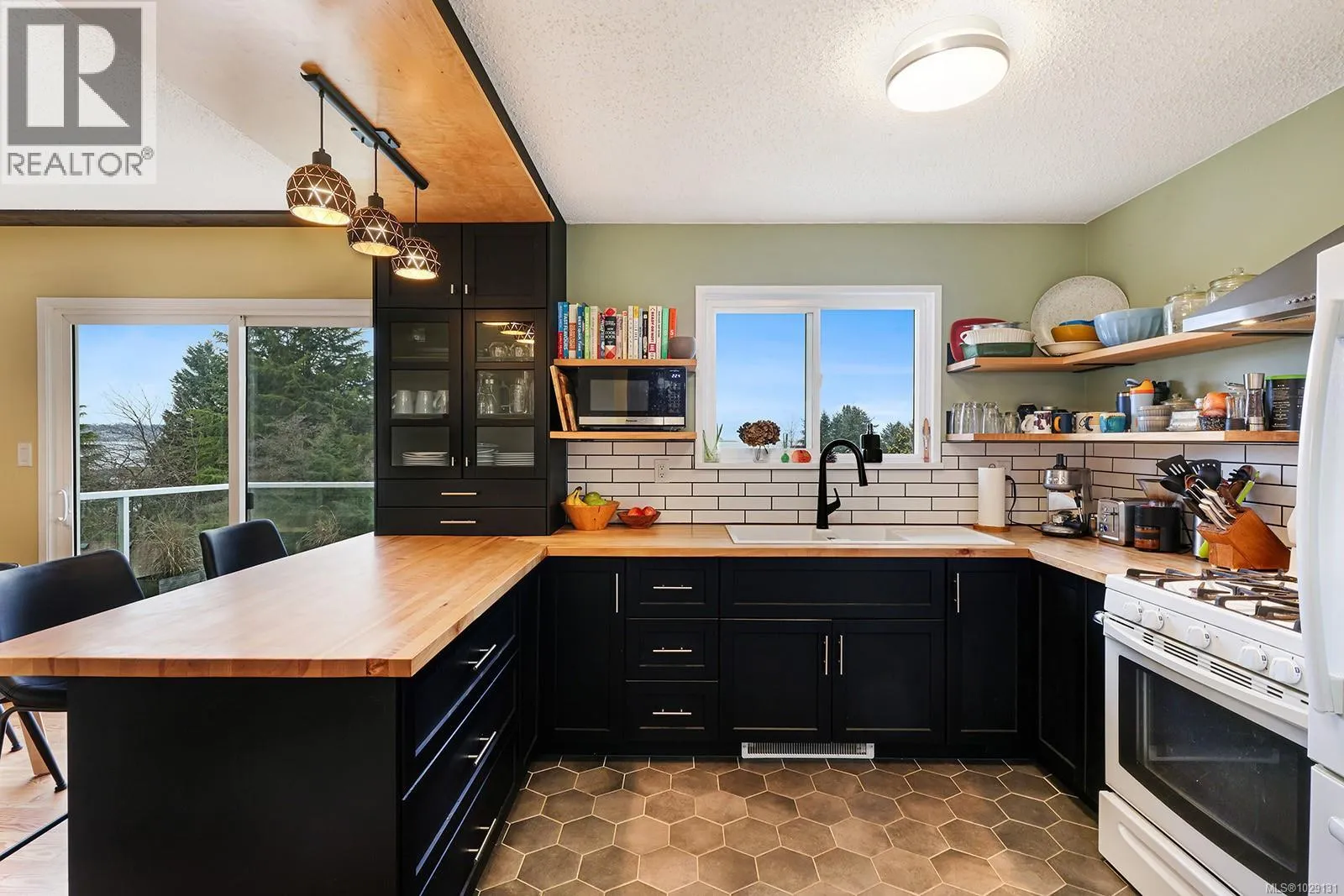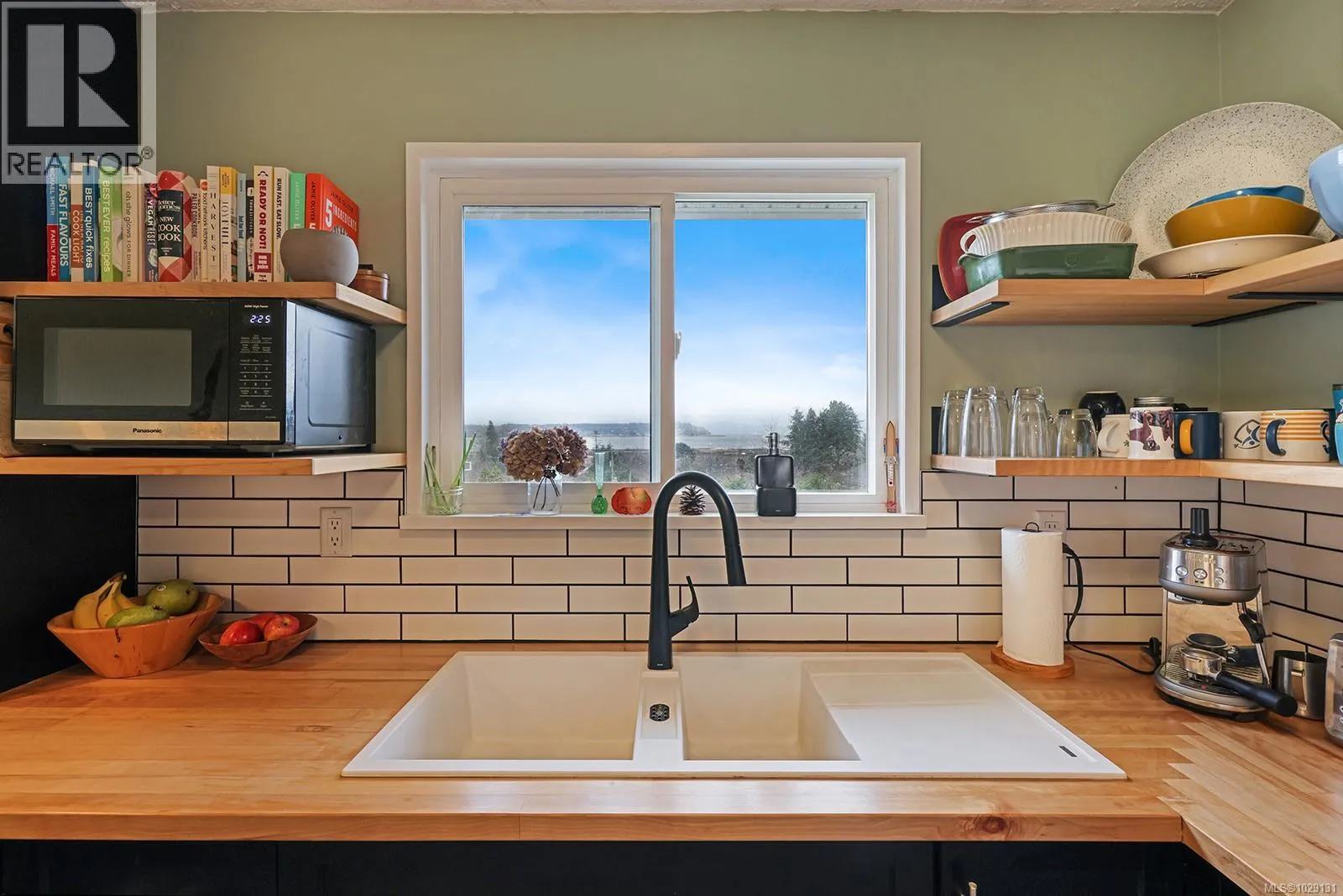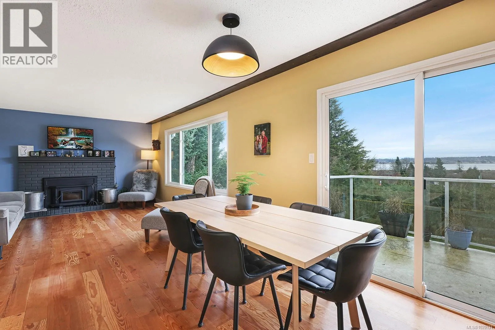 Enjoy ever-changing ocean views of the Comox Harbour from this home tucked in a quiet Royston neighbourhood. Full of character, you'll find warm wide-plank fir flooring, a recently updated country kitchen with butcher block counters, and spectacular unobstructed views framed by the large picture windows. Thoughtful updates over the years include newer flooring, all new plumbing, electrical upgrades, new bathrooms, vinyl windows interior paint, and a cozy woodstove insert. The family-friendly layout offers additional living space on the lower level with a family room and rec room, plus easy potential for an in-law suite with its own ground-level entrance. Set on a sunny 0.28-acre property, thereâs plenty of space for kids and dogs to play, along with room to grow your own veggies. Located in a sought-after neighbourhood just minutes to Downtown Courtenay and Gartley Beach, this is a rare opportunity to enjoy relaxed semi-rural living with spectacular ocean views year-round. (id:27476)