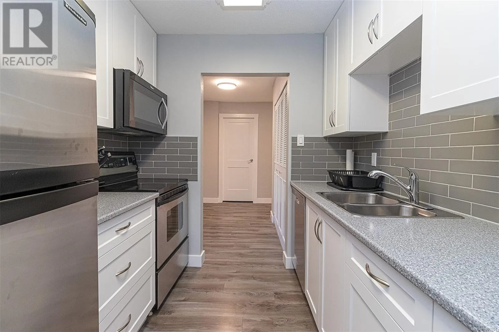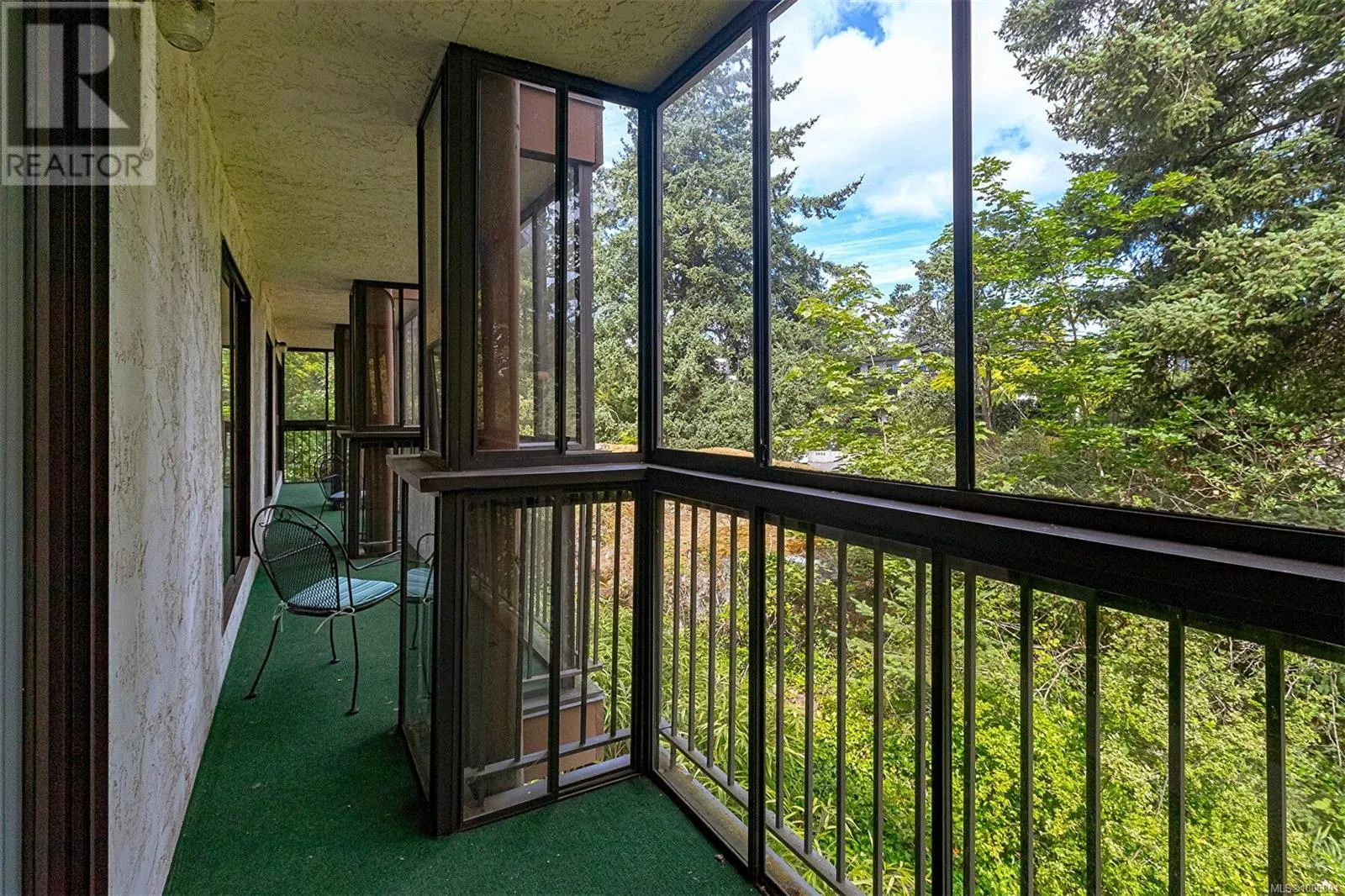 Open Sat 2-330 Nov 15th Immediate Possession!! New Price $529900 Corner Condo with Enclosed Balconies! This oversized 2-beds, 2 full baths + large media room condo offers exceptional space & privacy on the quiet 3rd floor corner of a sought-after complex. Each room opens onto its own glass-enclosed balcony, surrounded by views of mature cedar trees & landscaped gardens. The upgraded kitchen add modern comfort, while large windows throughout bring in natural light & a tranquil outlook. Enjoy top-tier building amenities, including an indoor pool, hot tub, sauna, tennis courts, library, billiards room, meeting rooms, a workshop, and bike storage. Heat, hot water, and access to recreation facilities are all included in the strata fee. Extra-large (double-sized) corner storage unit on the same floor. Prime location near UVIC, Downtown, & shopping. This is a rare chance to own a spacious & well-appointed home in a highly desirable, amenity-rich community. Don't miss it! (id:27476)