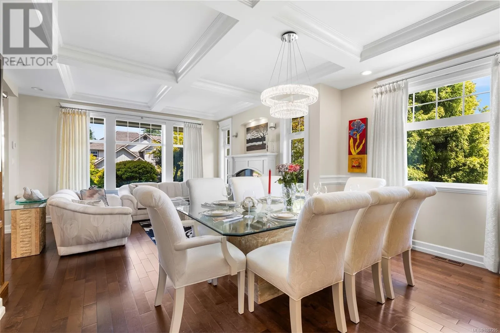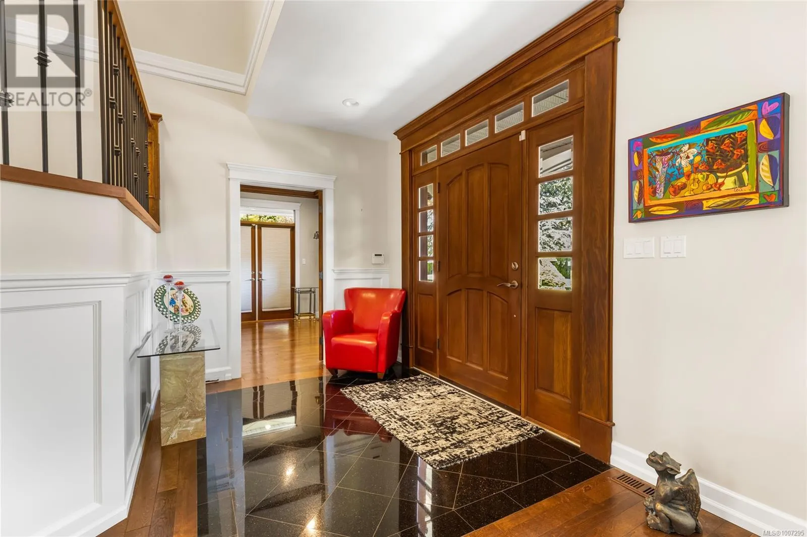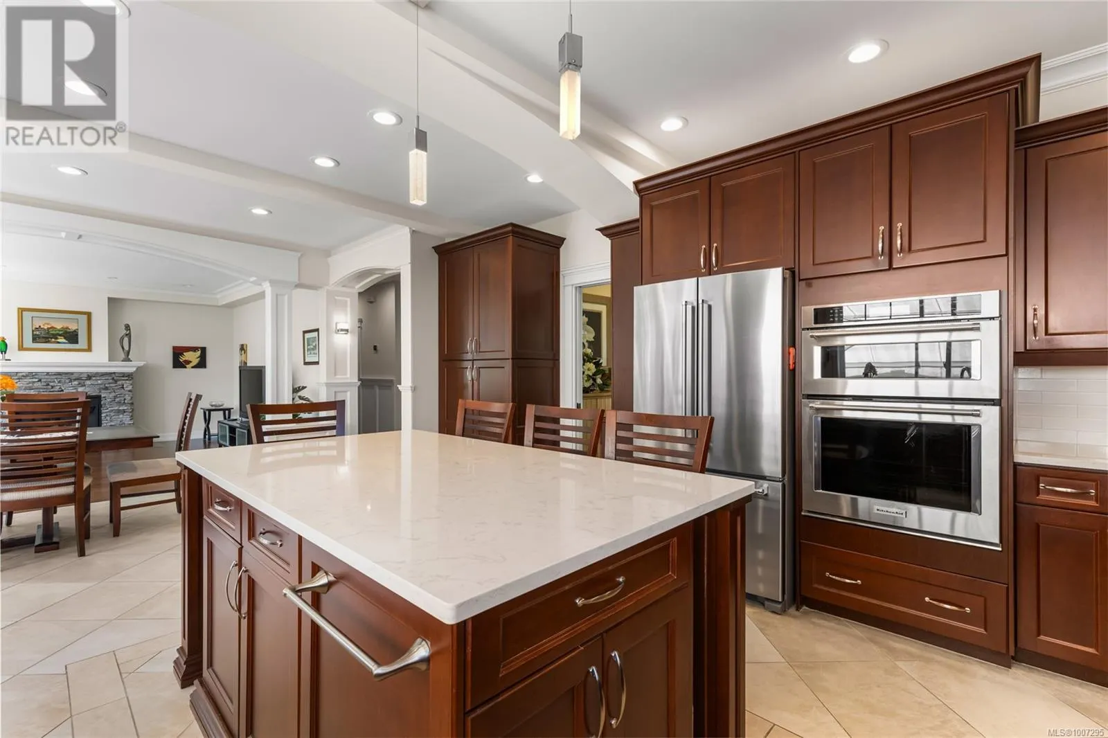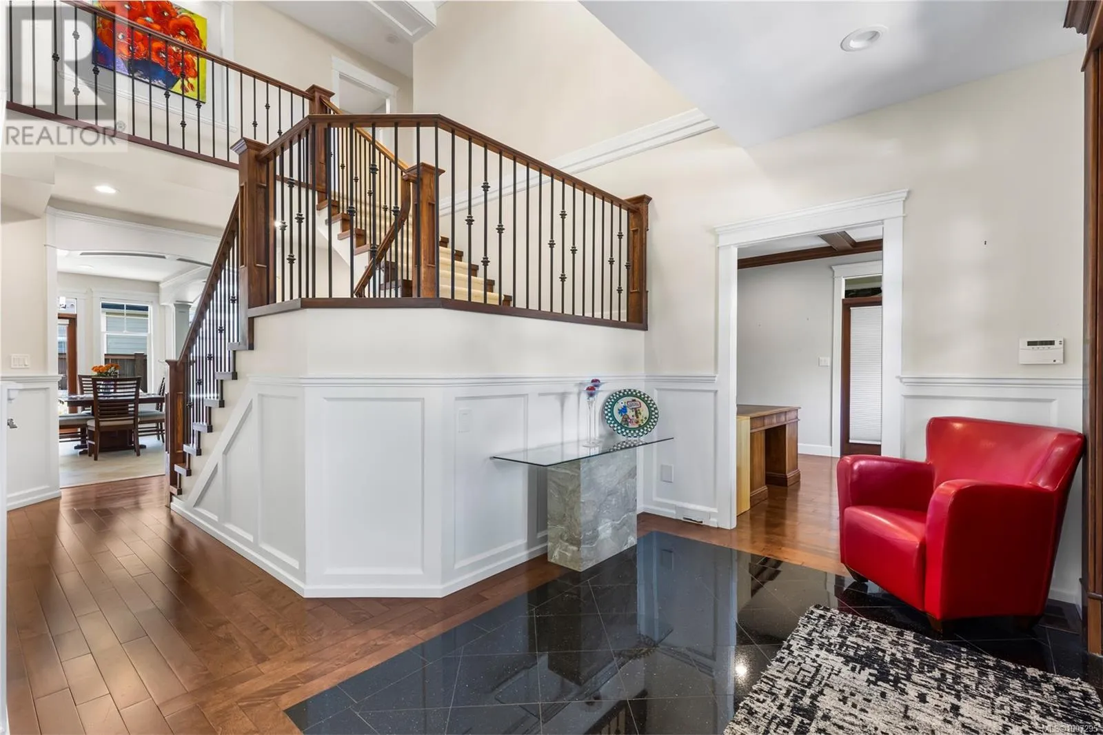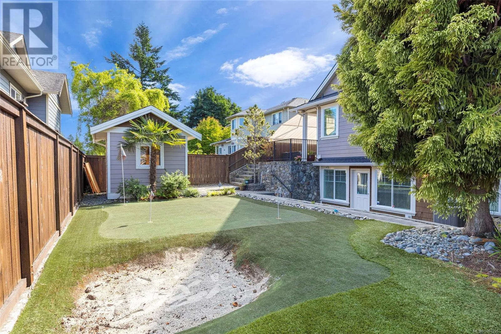 Welcome to 4973 La Quinta Place. This family home sits on a ¼-acre lot on a quiet cul-de-sac in Cordova Bay. Conveniently located within walking distance to Claremont Secondary School. Offering an impressive 5,000+ sq ft of open living space enhanced by high coffered ceilings, Cherrywood flooring, built-ins, marble tile, elegant molding details and more. Step inside to a well appointed interior where no detail has been overlooked. 5 beds, den + office, 6 bathrooms, & 2 self contained suites (1BR above garage and a 1BR + den garden level/Nanny suite) Ideal for multi-generational families or income generator. Thoughtful upgrades incl. coffered ceilings, quartz countertops, porcelain sink, gas cooktop, walk-in pantry, custom wine pantry, LED Light Fixtures, expansive laundry room, triple car garage, ducted heat pump, central vac, and a theatre room downstairs. The etched-glass patio doors lead to a textured concrete patio, covered by an electric awning for those hot summer days. The home is surrounded by a lush mature garden with stunning majestic palm trees and a low maintenance AstroTurf lawn, featuring a putting green for the Golf lover! (id:27476)