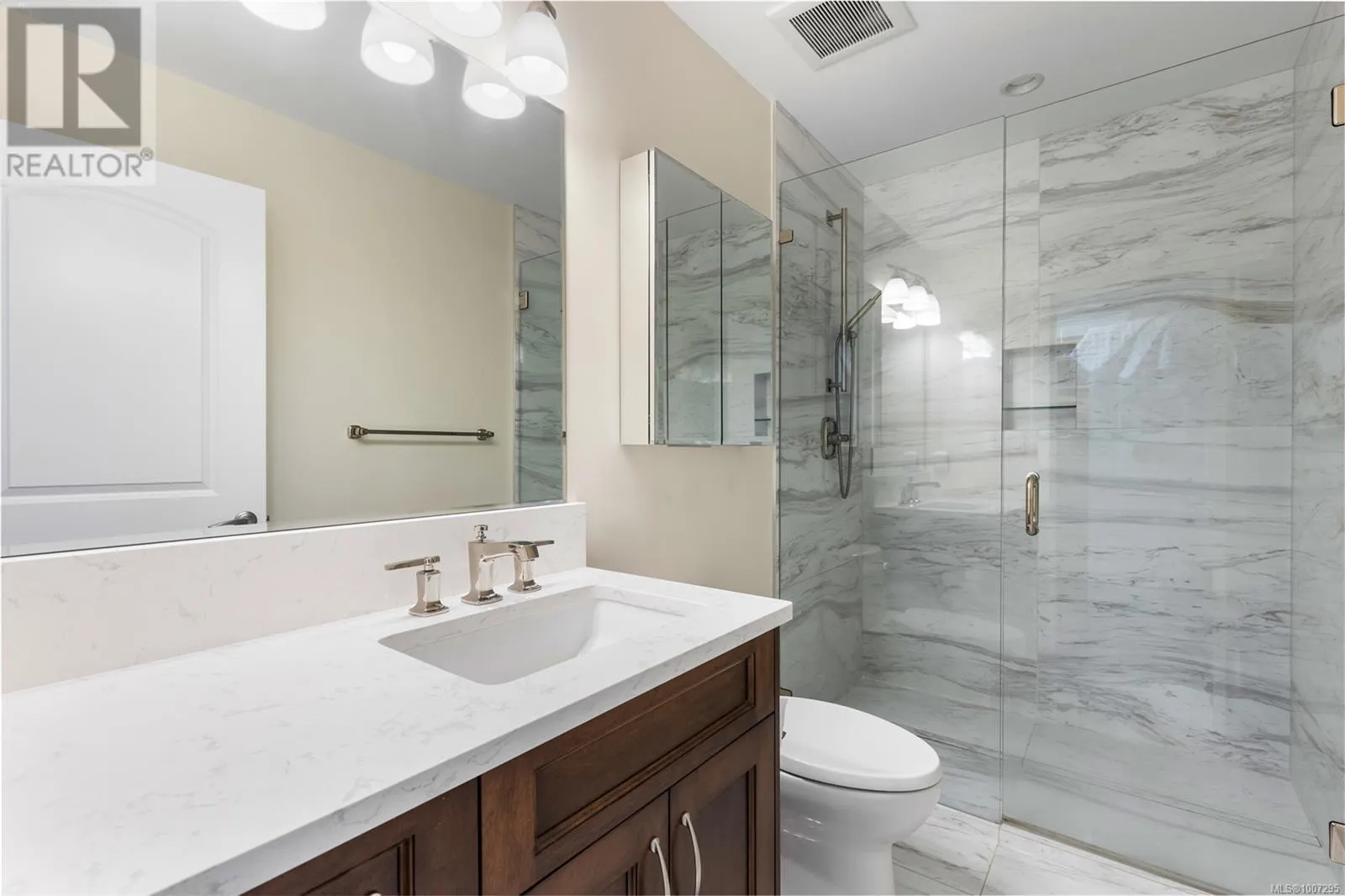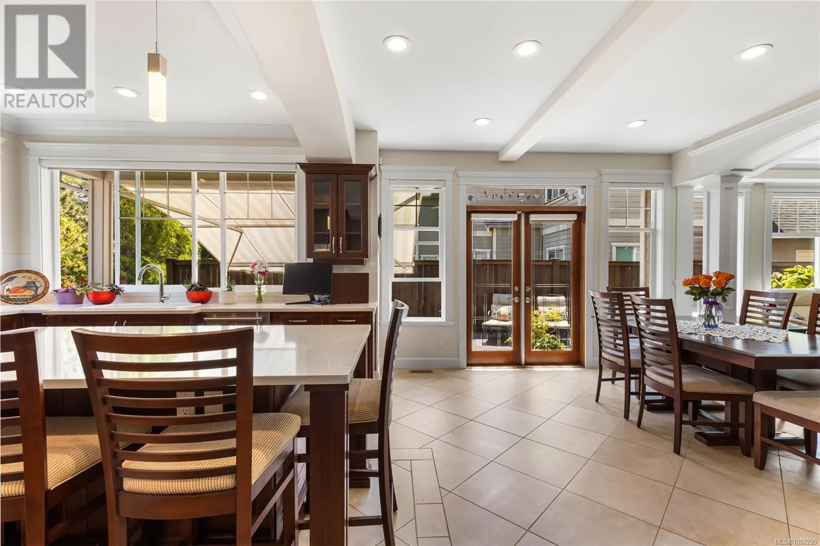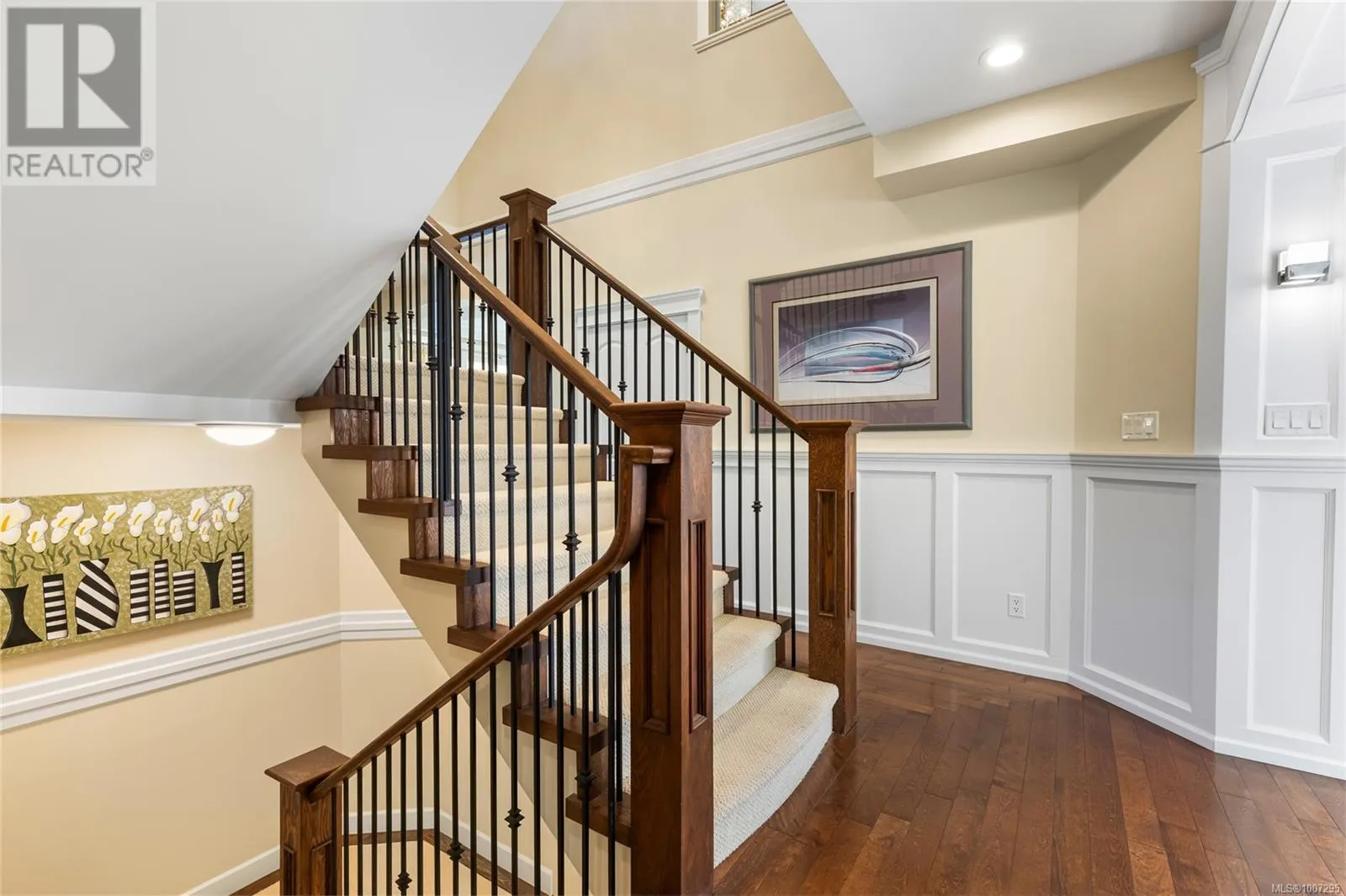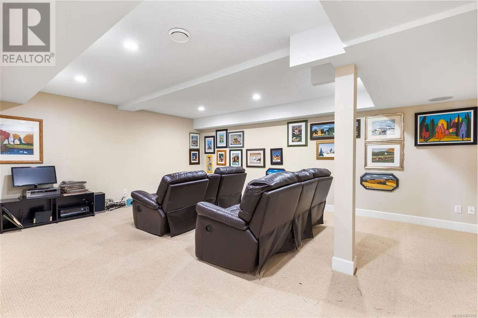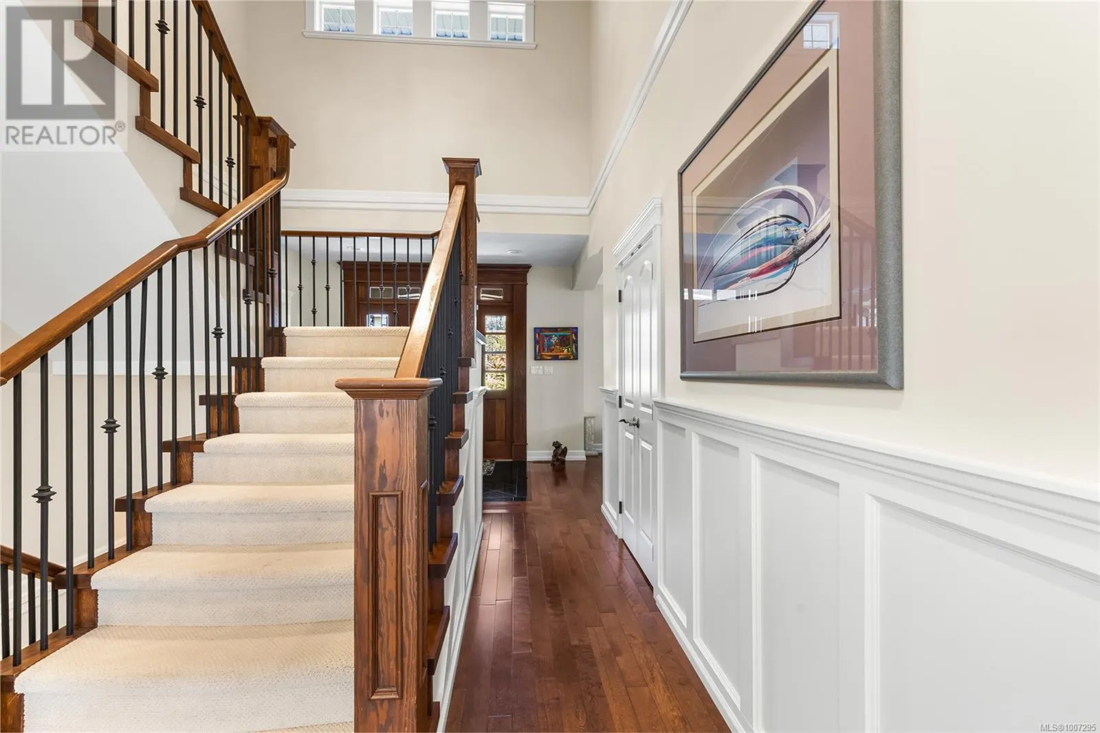 Welcome to 4973 La Quinta Place. This family home sits on a ¼-acre lot on a quiet cul-de-sac in Cordova Bay. Conveniently located within walking distance to Claremont Secondary School. Offering an impressive 5,000+ sq ft of open living space enhanced by high coffered ceilings, Cherrywood flooring, built-ins, marble tile, elegant molding details and more. Step inside to a well appointed interior where no detail has been overlooked. 5 beds, den + office, 6 bathrooms, & 2 self contained suites (1BR above garage and a 1BR + den garden level/Nanny suite) Ideal for multi-generational families or income generator. Thoughtful upgrades incl. coffered ceilings, quartz countertops, porcelain sink, gas cooktop, walk-in pantry, custom wine pantry, LED Light Fixtures, expansive laundry room, triple car garage, ducted heat pump, central vac, and a theatre room downstairs. The etched-glass patio doors lead to a textured concrete patio, covered by an electric awning for those hot summer days. The home is surrounded by a lush mature garden with stunning majestic palm trees and a low maintenance AstroTurf lawn, featuring a putting green for the Golf lover! (id:27476)